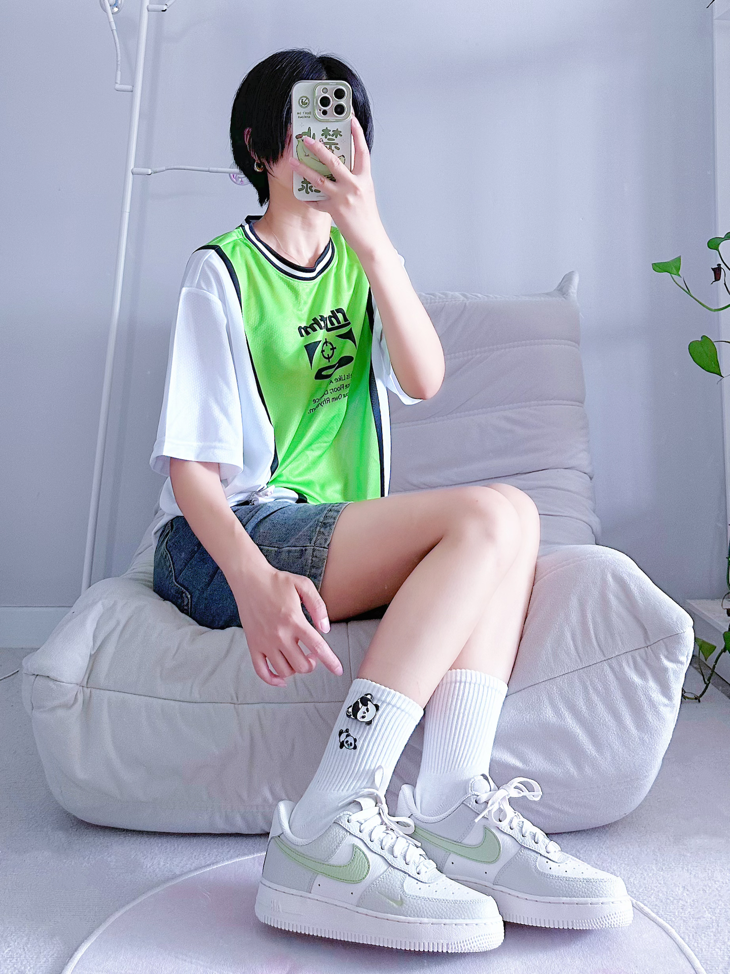 好喜欢我的绿色系穿搭哇💕 给夏日自带冰凉的呼吸感 尤其是我的熊猫袜袜格外吸睛 给整个穿搭赋予了灵魂 上脚透气性好真的好舒服🆒 而且自带竹林的清香感好治愈 有熊猫胸针和礼盒✅ 搭配Nike AF1炒鸡有档次🫡 #特别强推的一款袜子 #高颜值的袜子 #佐印袜子 #给穿搭加点辣 #辣妹的夏日定番