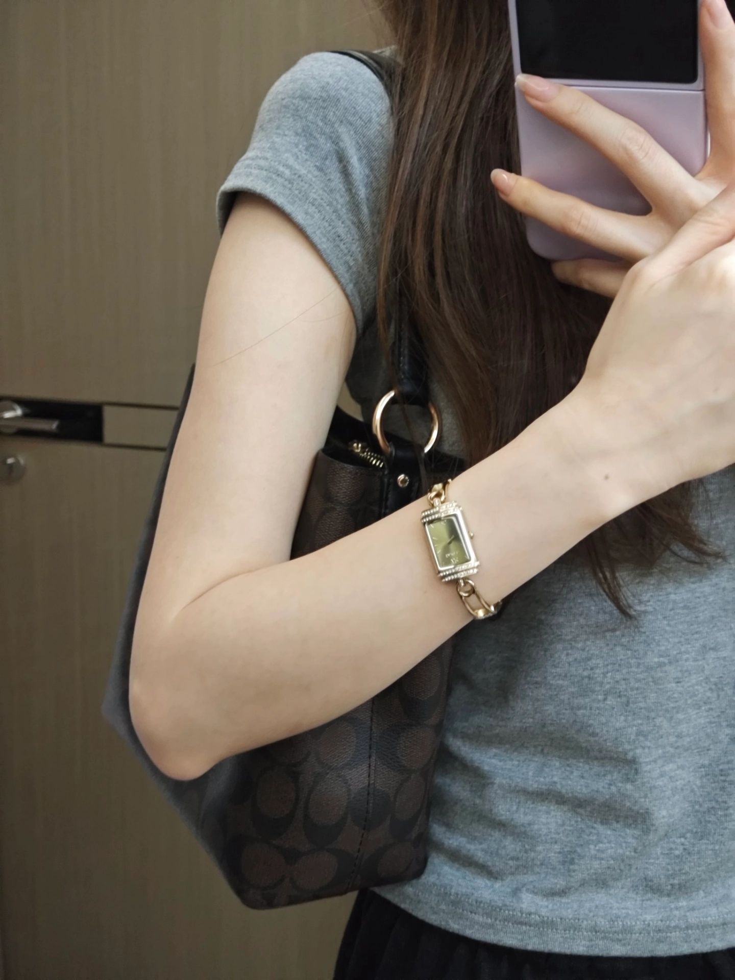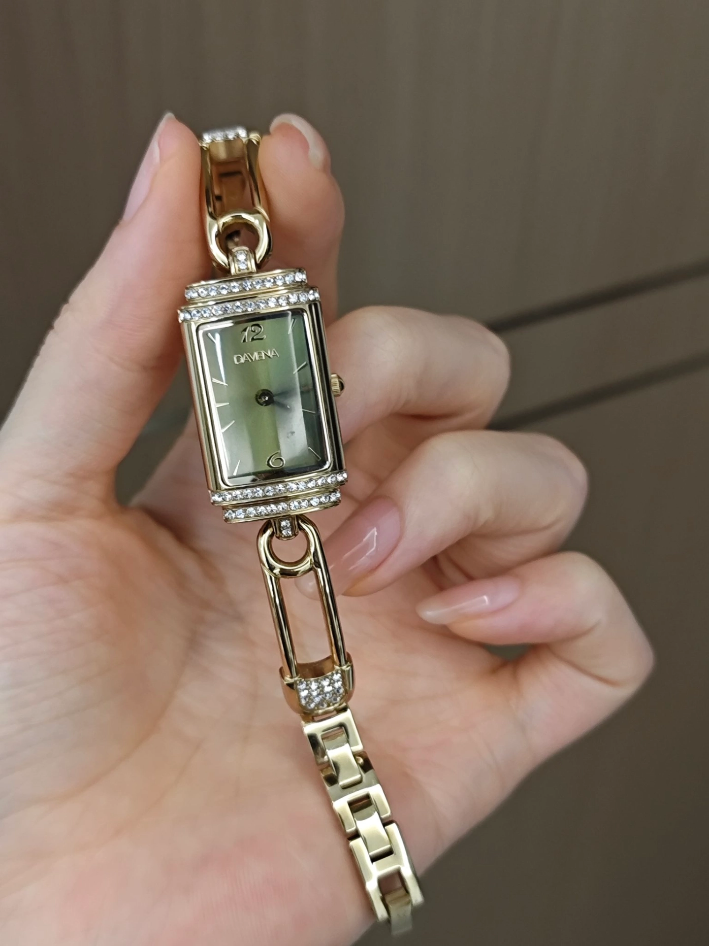介只davena小方表我尊嘟好喜欢啊 带点小复古感,镶钻设计很加分✨ 浅浅的绿色表盘,夏天戴好清凉~ 对不起钱钱了,我上班真的很需要这块表 总体很值得入,上班戴超合适~