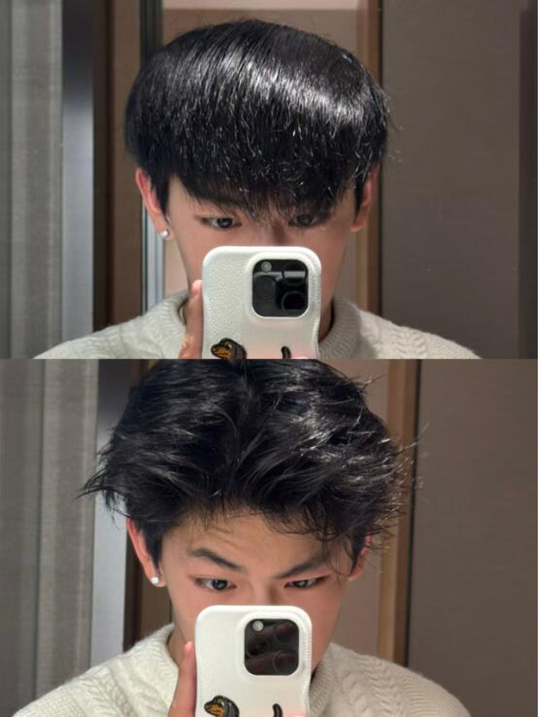 朋友们 教大家一款超级简单的发型 有手就行! 不用烫头不用夹板 没有技术含量! 教程在这欢迎来学 - 第一步:(吹头)一股脑往后吹就行 第二步:(造型)稍微多取一点发泥,不要接触发根,大家尽量选一些成分好点的发泥,在头发丝表面一缕一缕向后翻,接着重复往后撩头发的动作就能做出来,我用这个发泥塑型很快,几下大型差不多定得七七八八了,之后捏出自己最喜欢的纹理感,侧边再根据自己喜好去调整。 第三步:(定型...