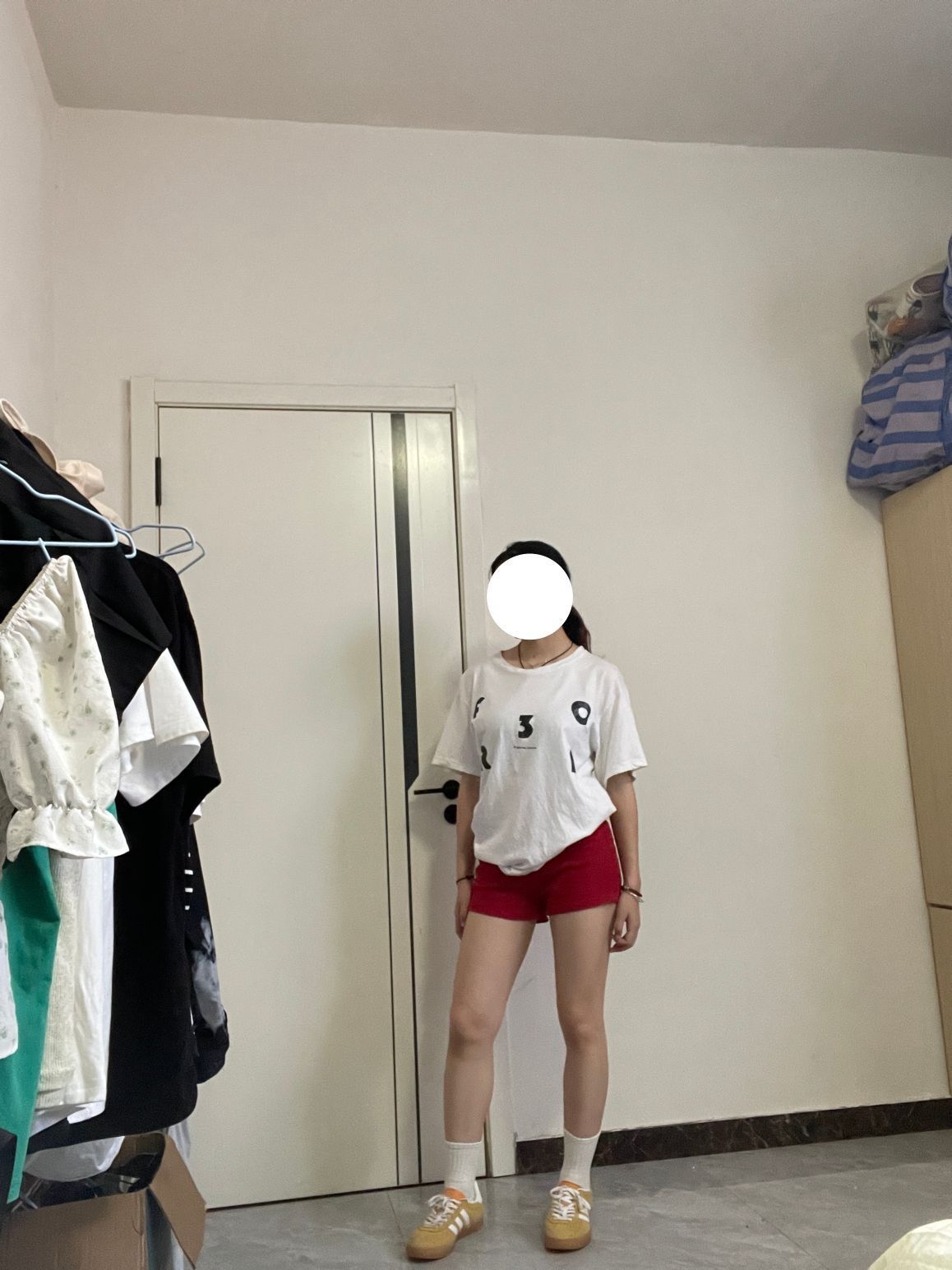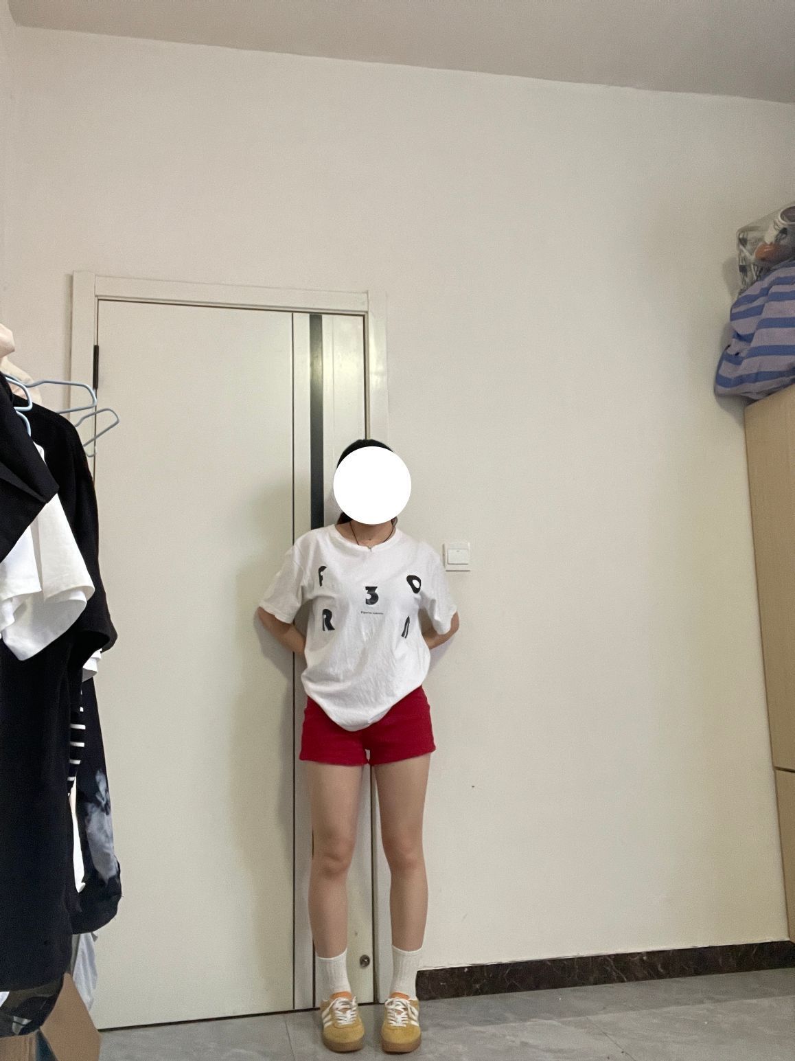 偶尔来点靓丽的颜色吧。红色我好久没有穿了。红色的是比较显白的。但是我拍的时候光线比较暗,所以有点显黄。 随便搭配一个鞋子就很好看,去哪玩也方便,还凉快。 越基础的穿搭就越不会出错哦。