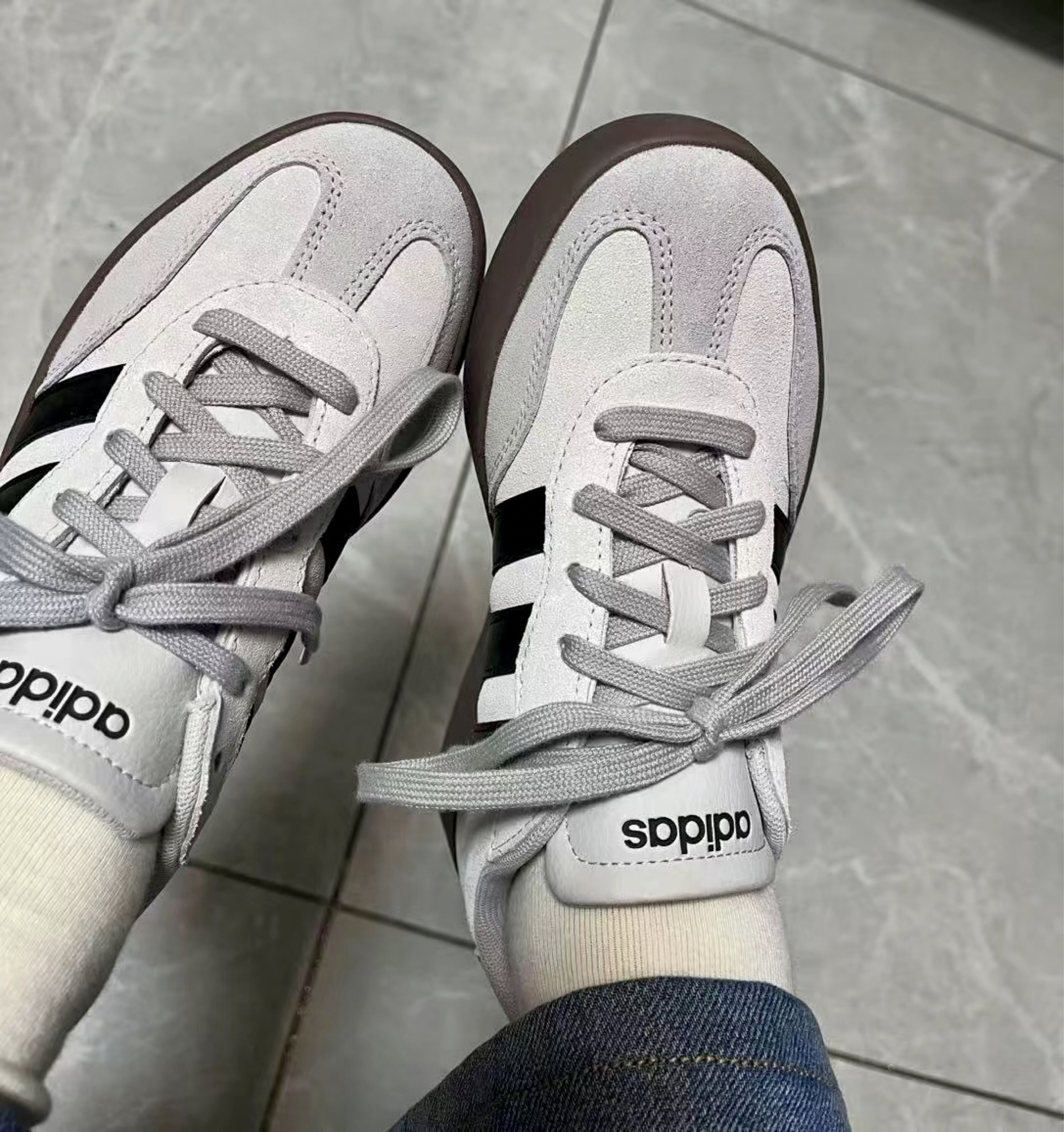 亮光灰高级不挑人,黑色酷盖闭眼搭,树脂黄撞色吸睛!牛剖层革抗造,薄底踩出“显脚小”魔法,解决“穿鞋笨重”老难题~ adidas百年工艺兜底,比网红款耐穿3倍!别再怕买了闲置,这双实穿到四季通杀!冲就对了!