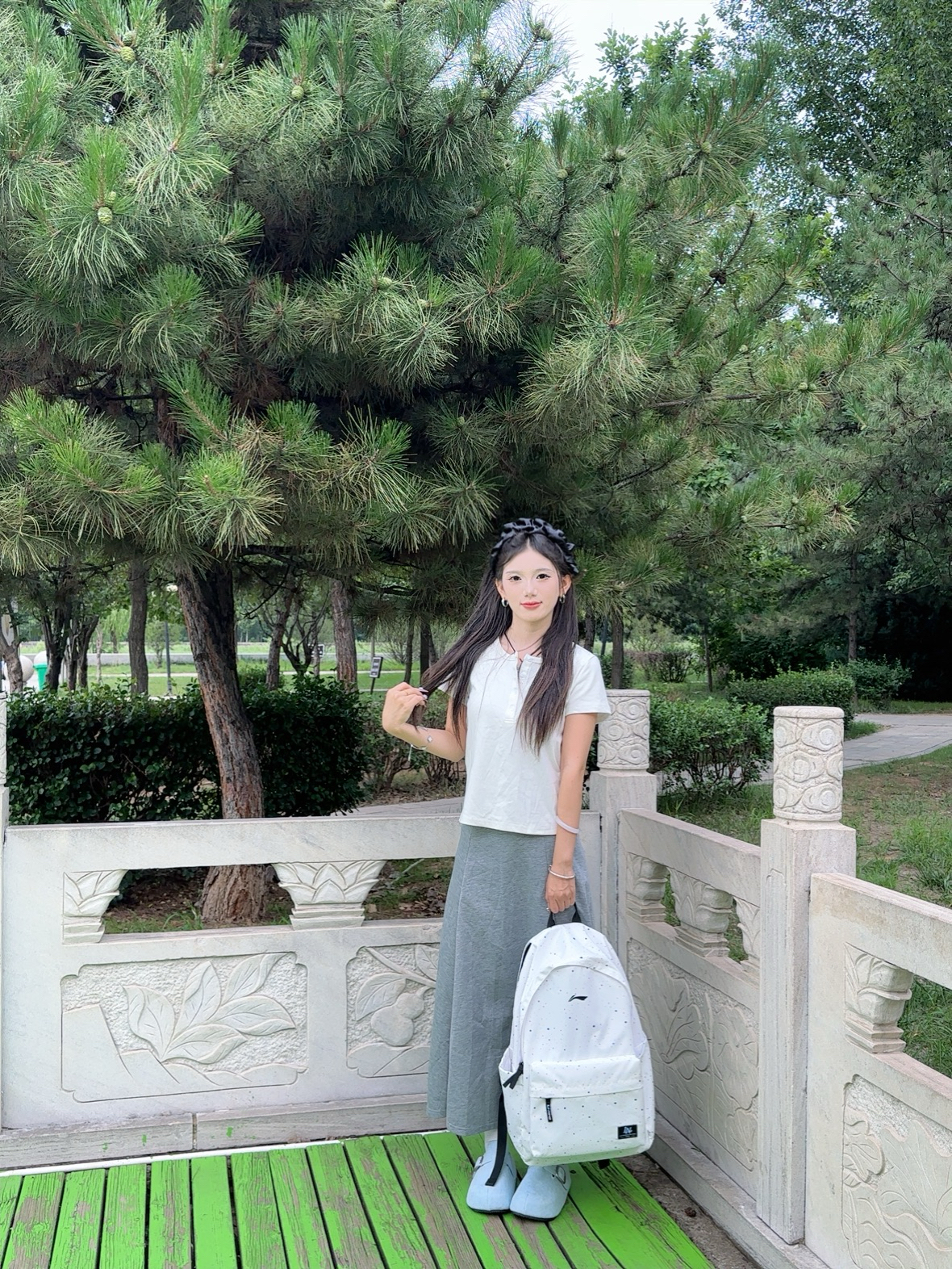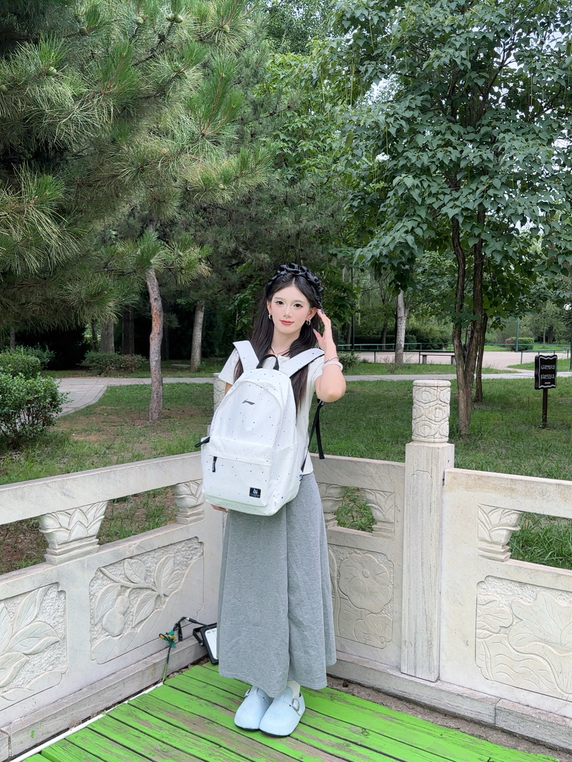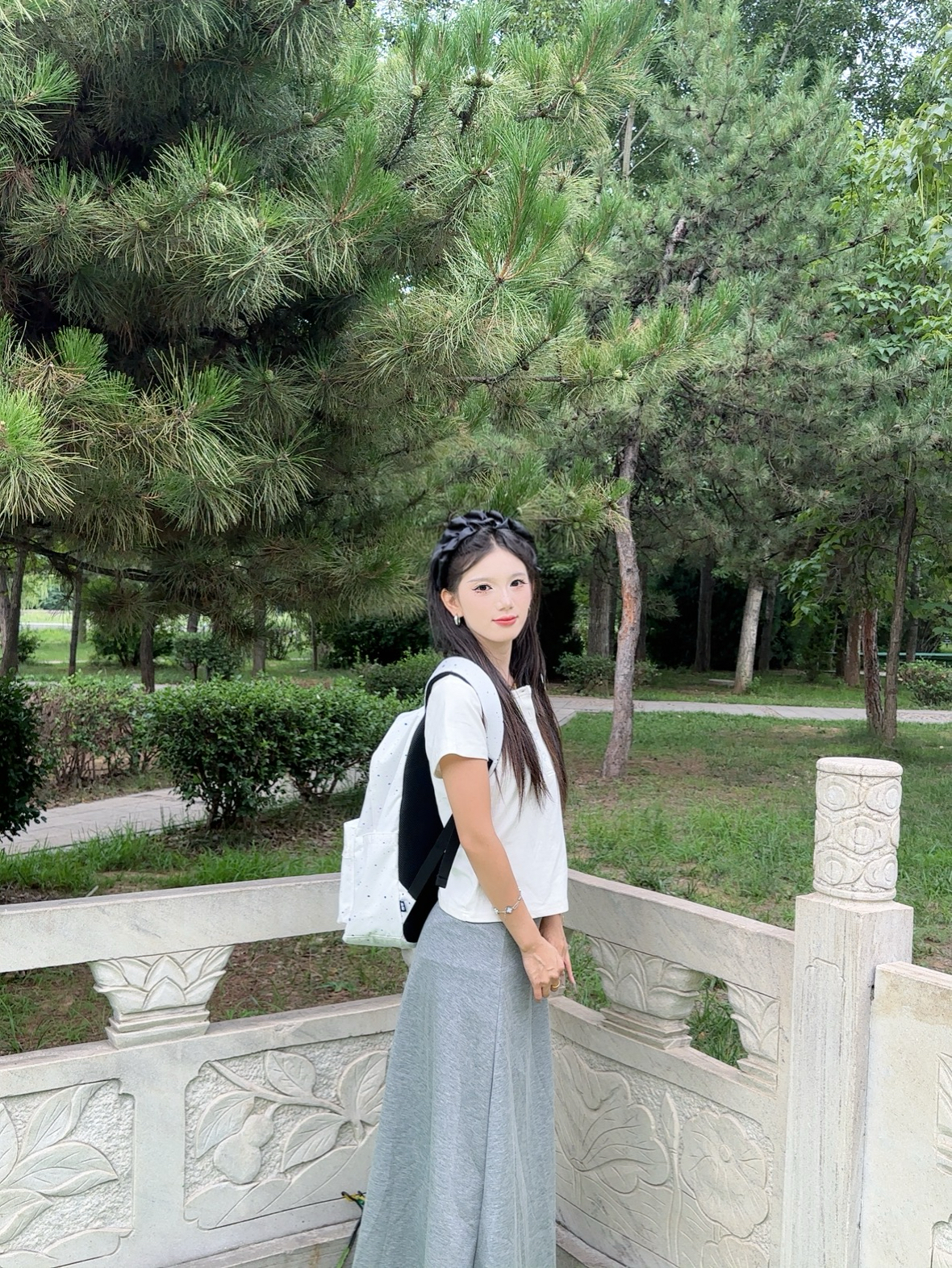 今日哦哦特🉐🉐🉐#女大学生夏季OOTD 白色短袖➕灰色半身裙➕蓝色勃肯鞋➕白色双肩包 简简单单的一套出行穿搭真的好好看呀 简单又好看还很高级的感觉 很显瘦的一身穿搭 遮肉又显瘦 白色的双肩包 🎒颜值很高 很干净容量也挺大的 很耐磨的材质 也挺百搭的 图源网络侵删