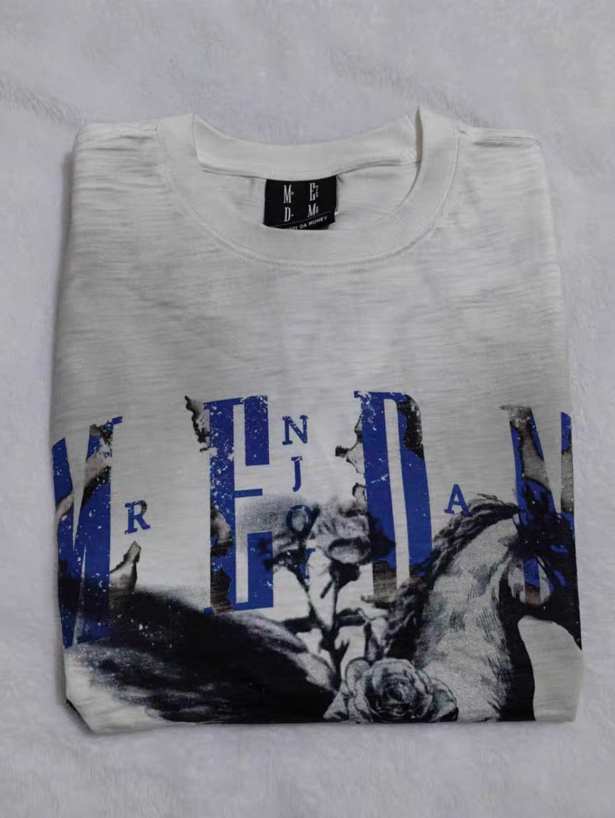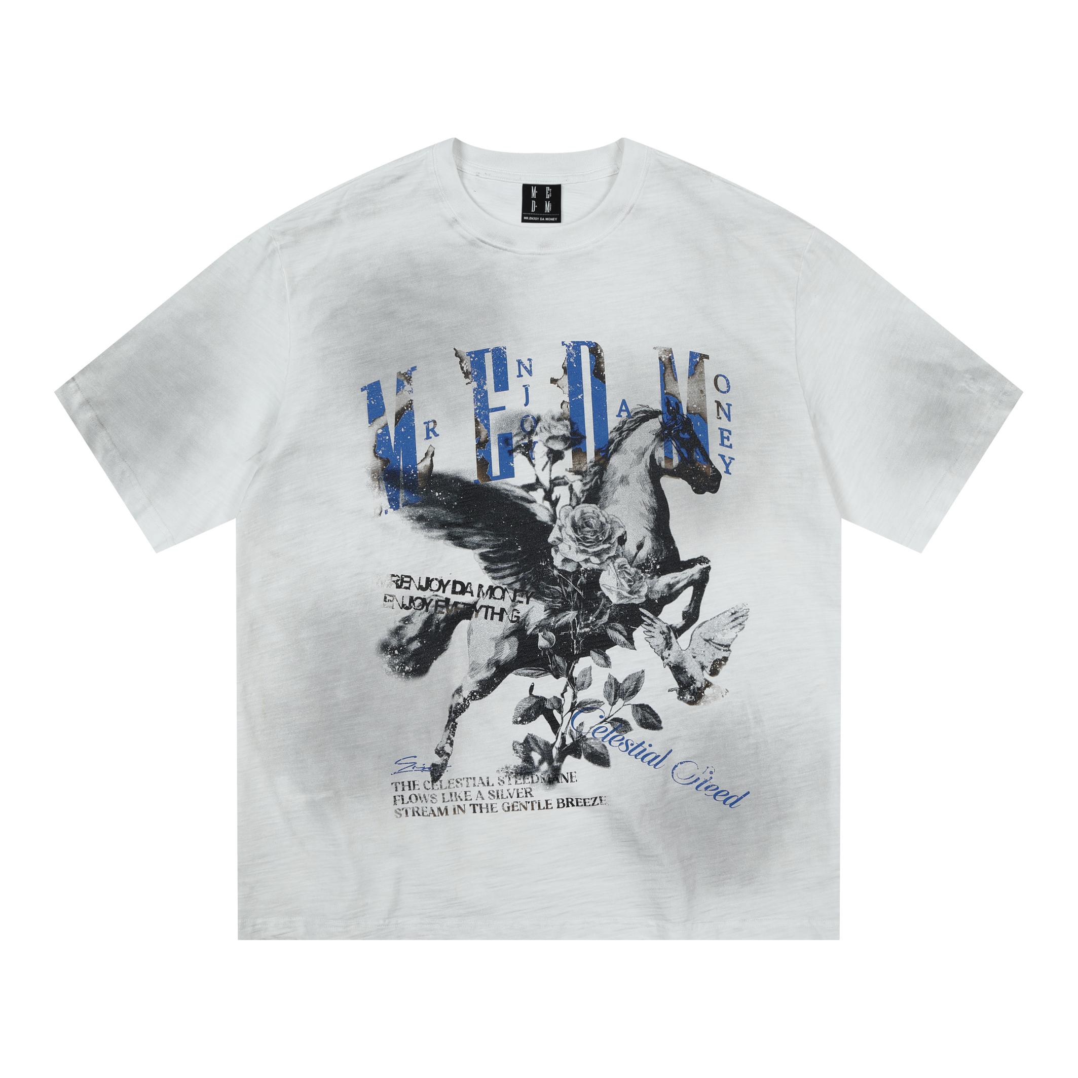 被这件T恤狠狠拿捏🤏 水墨风天马配玫瑰,蓝白撞色超带感,街头感拉满又藏着浪漫 字母做旧设计,细节控狂喜✨ 日常搭裤装、裙装都很绝,穿上直接变身街头酷盖,谁懂这种又野又美的松弛感啊!