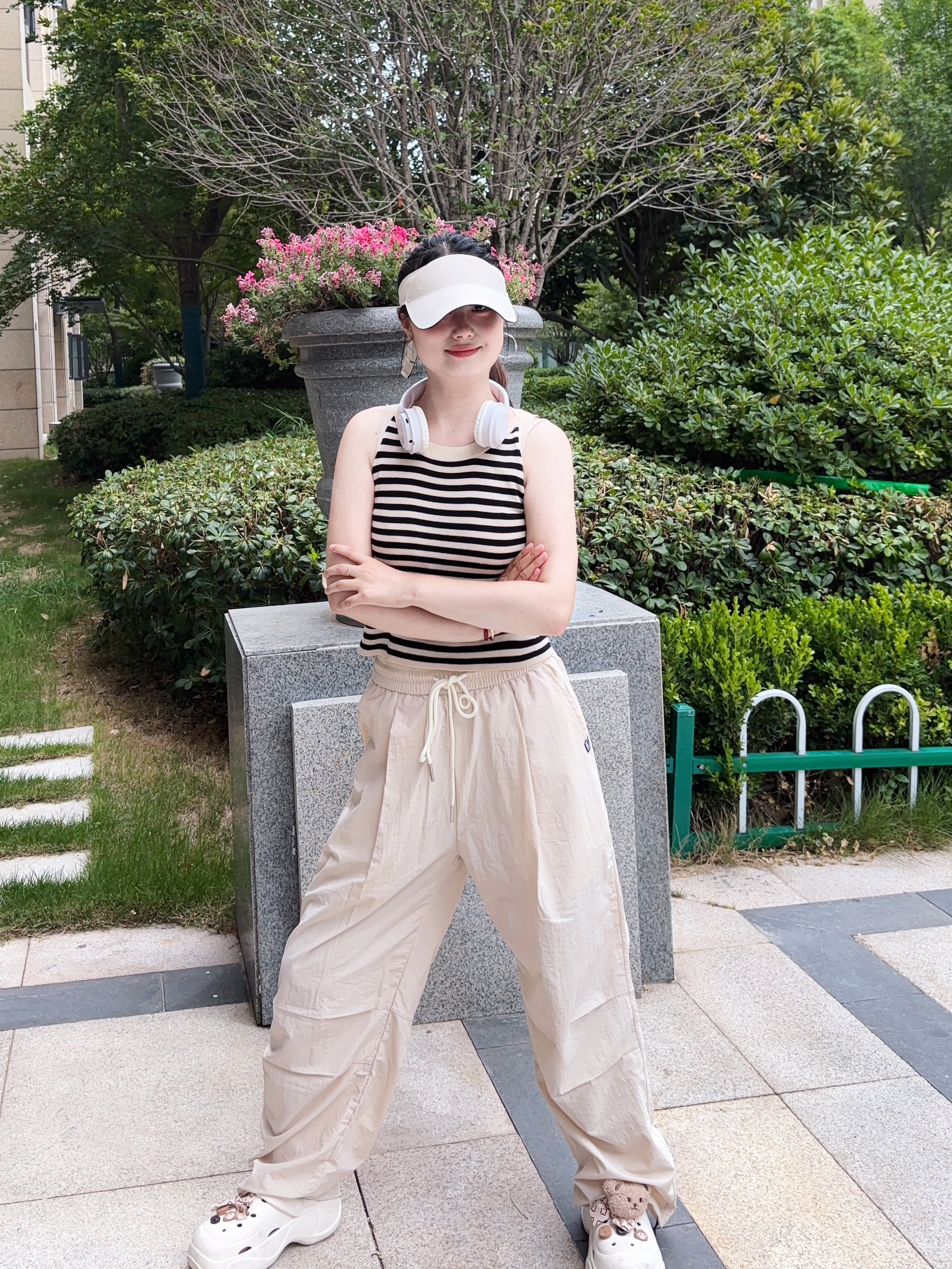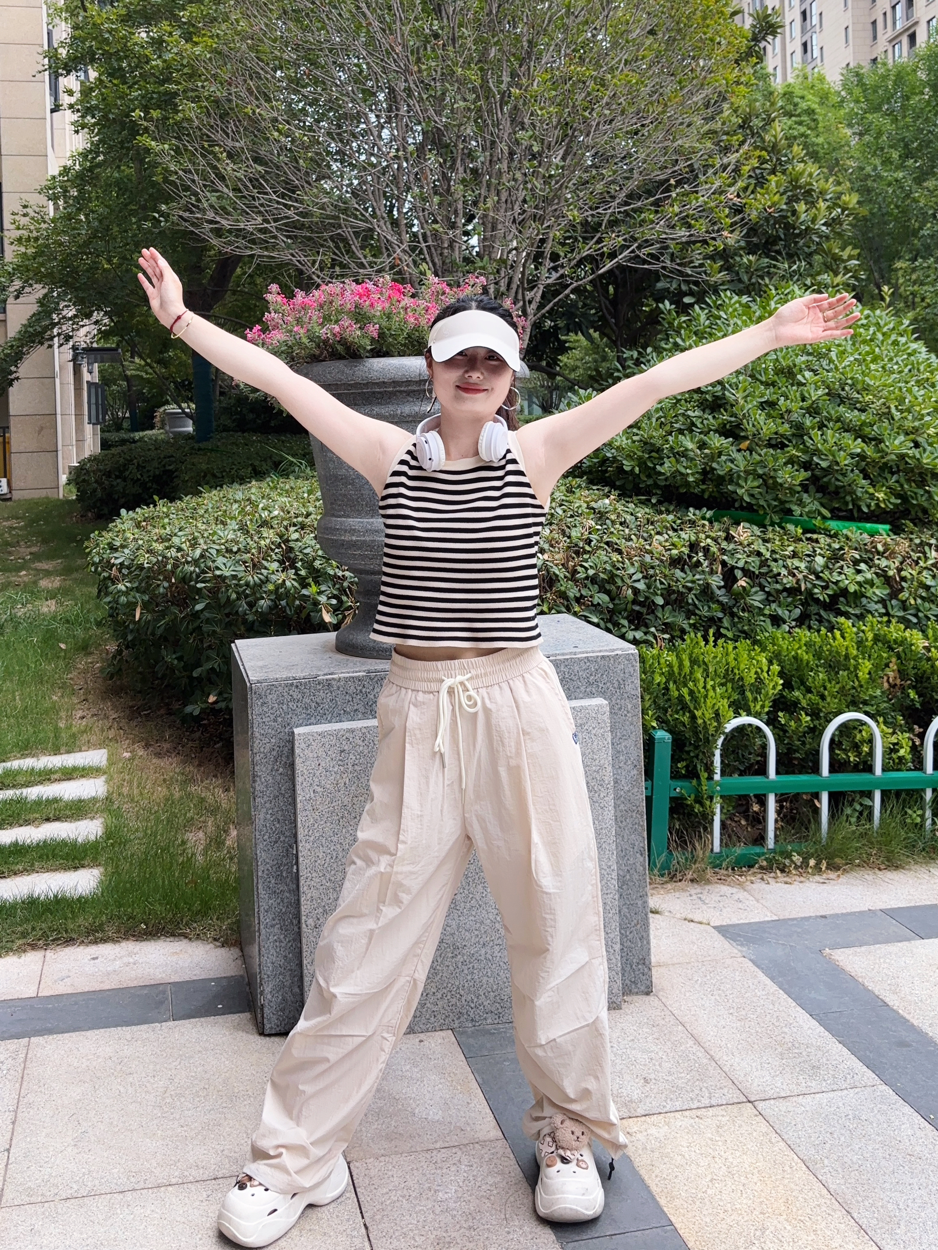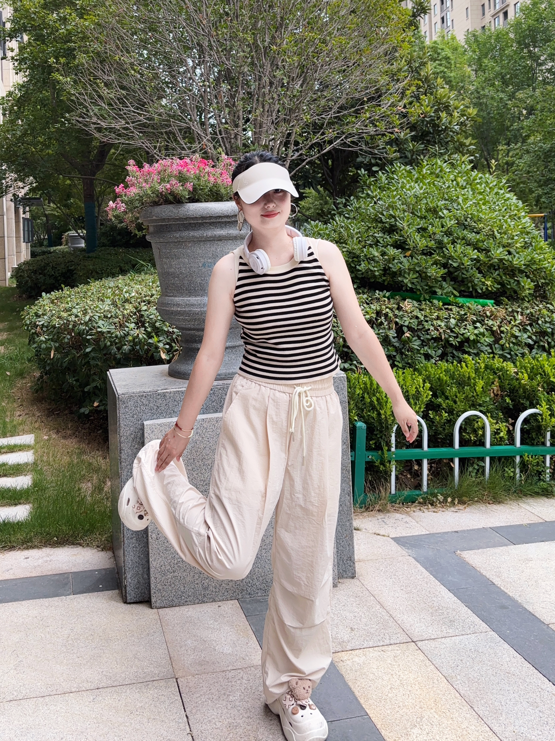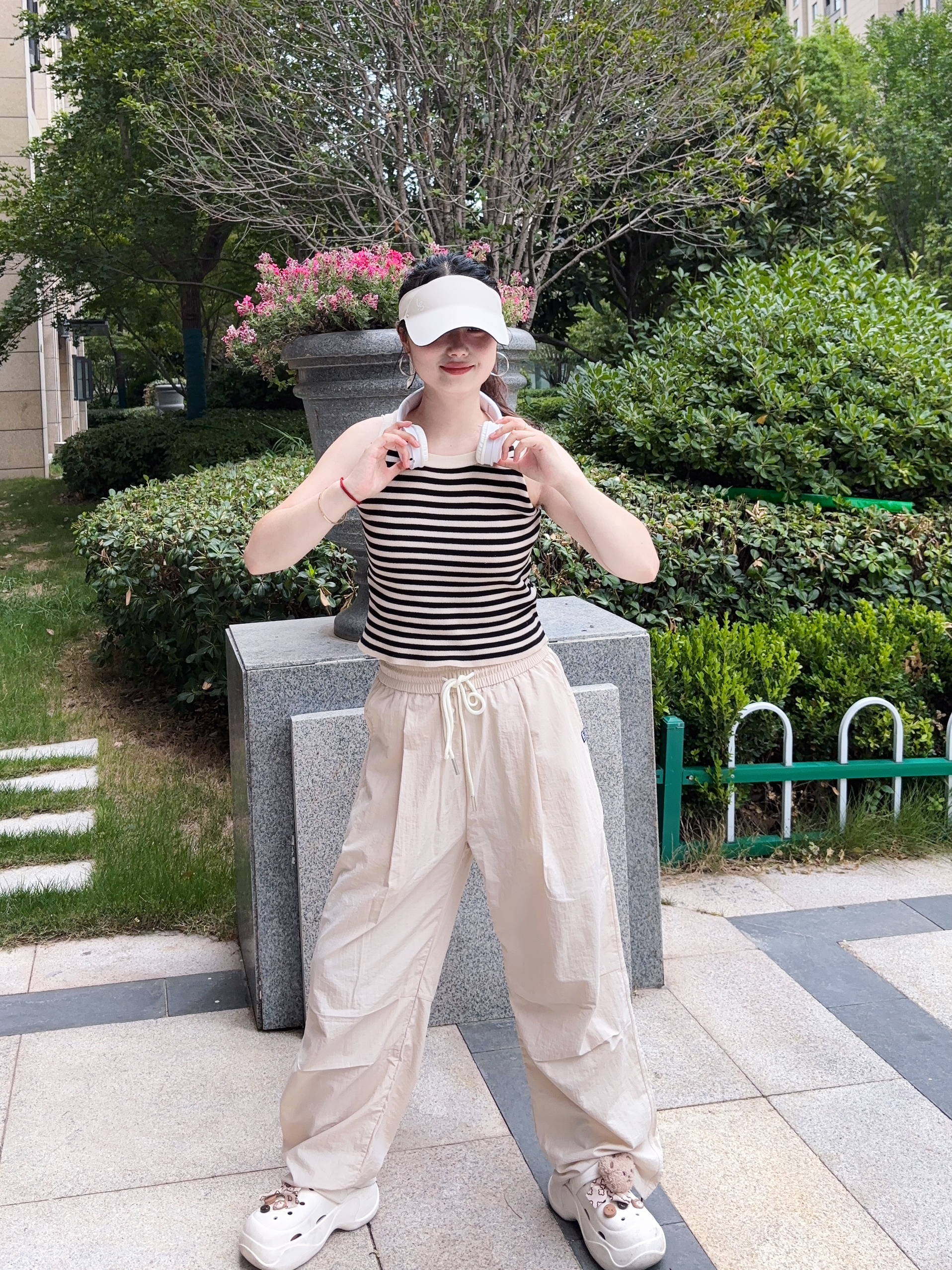 我真的是找到了一条适合夏天的神裤 芝麻街家这款伞兵裤也太好穿了吧 米杏色的颜色也很好看百搭啊 上身穿很轻薄透气,不沾身 真的是一点也不闷热,很舒适感啊 我是160/95 S码长度刚刚好 属于宽松版型的裤子,穿搭上也很省心 日常简单的短袖都很好看耶 侧边有一点堆堆褶皱设计很松弛感拉满啊 性价比高,真的很推荐呀~