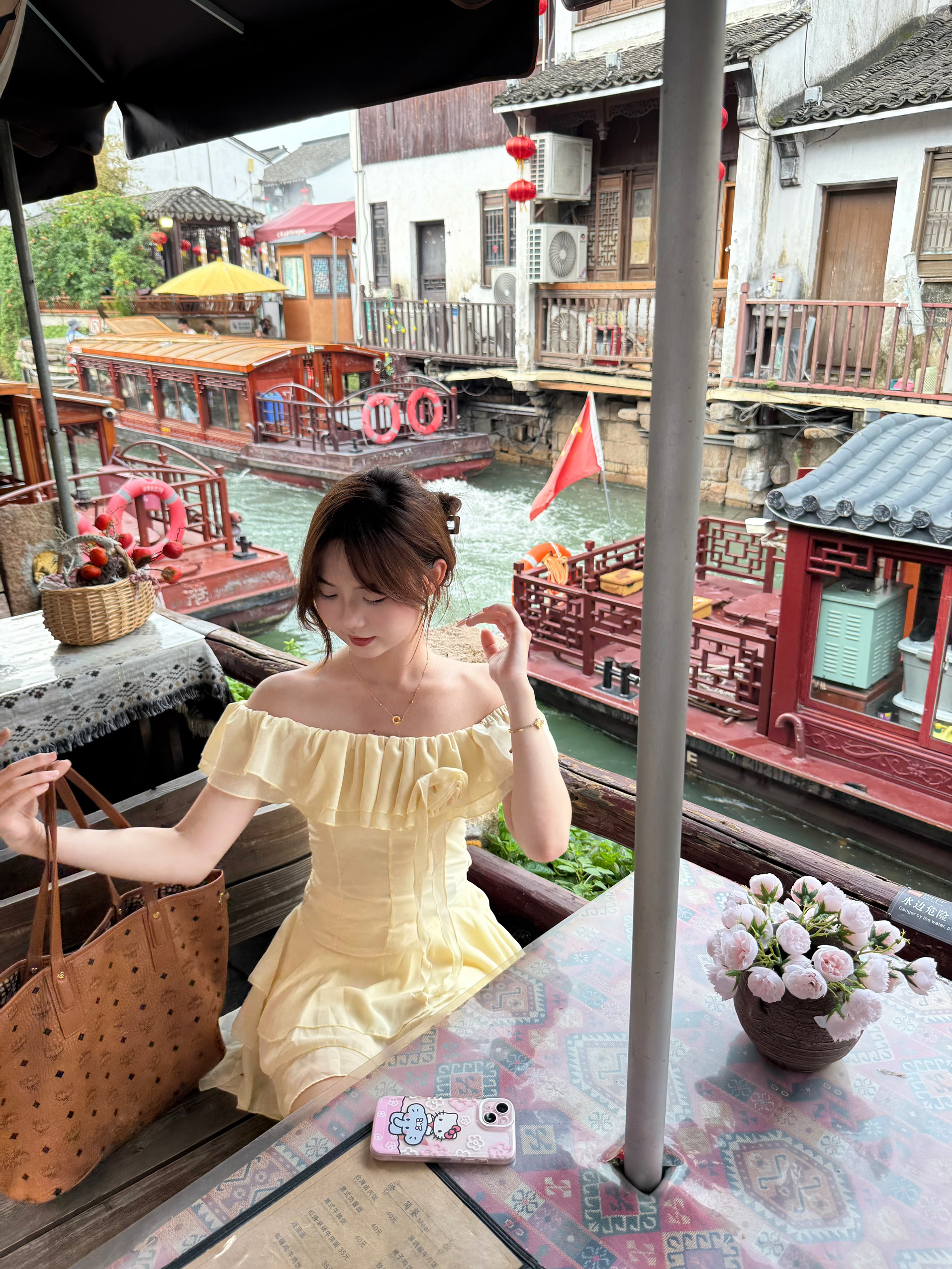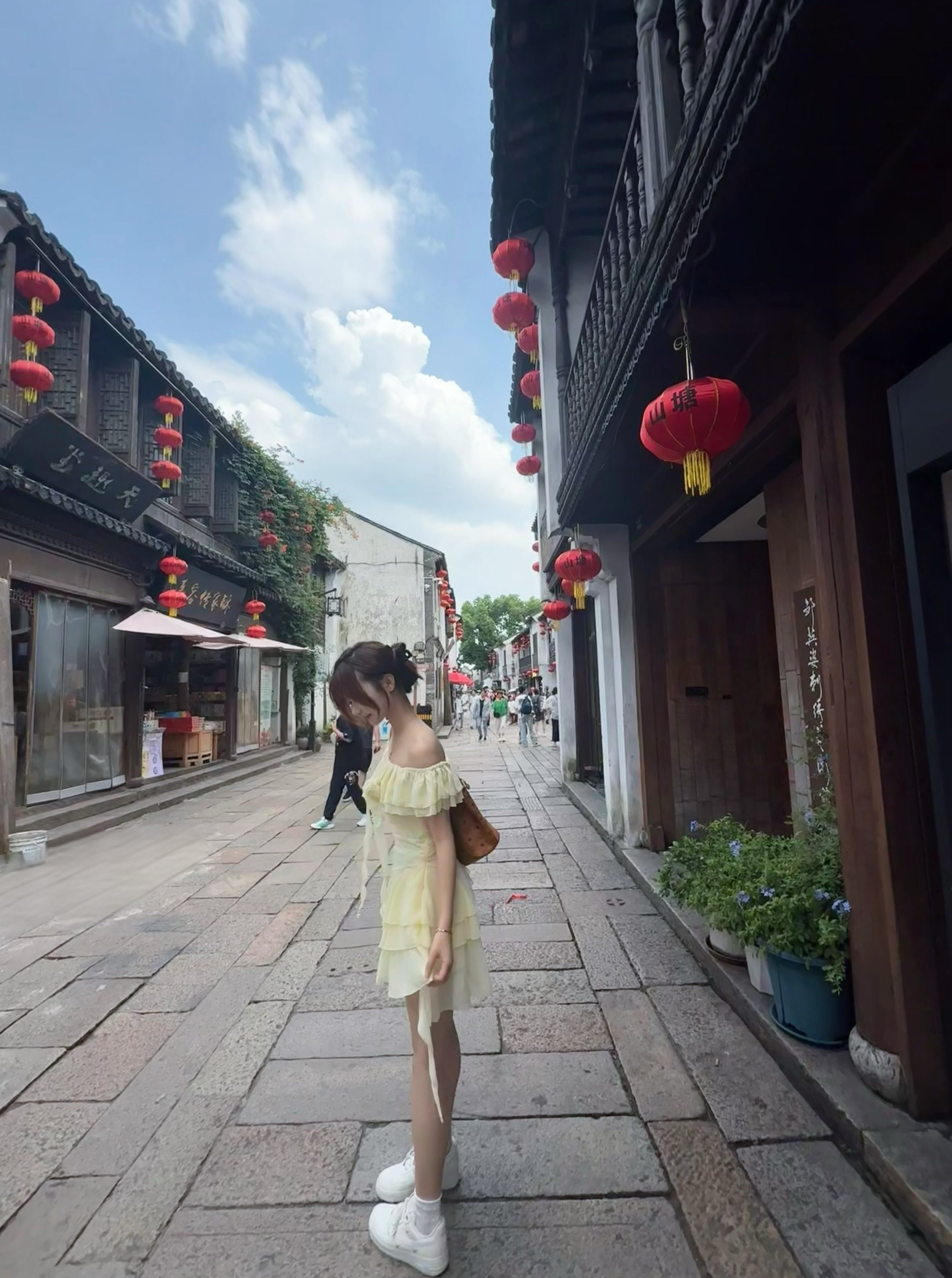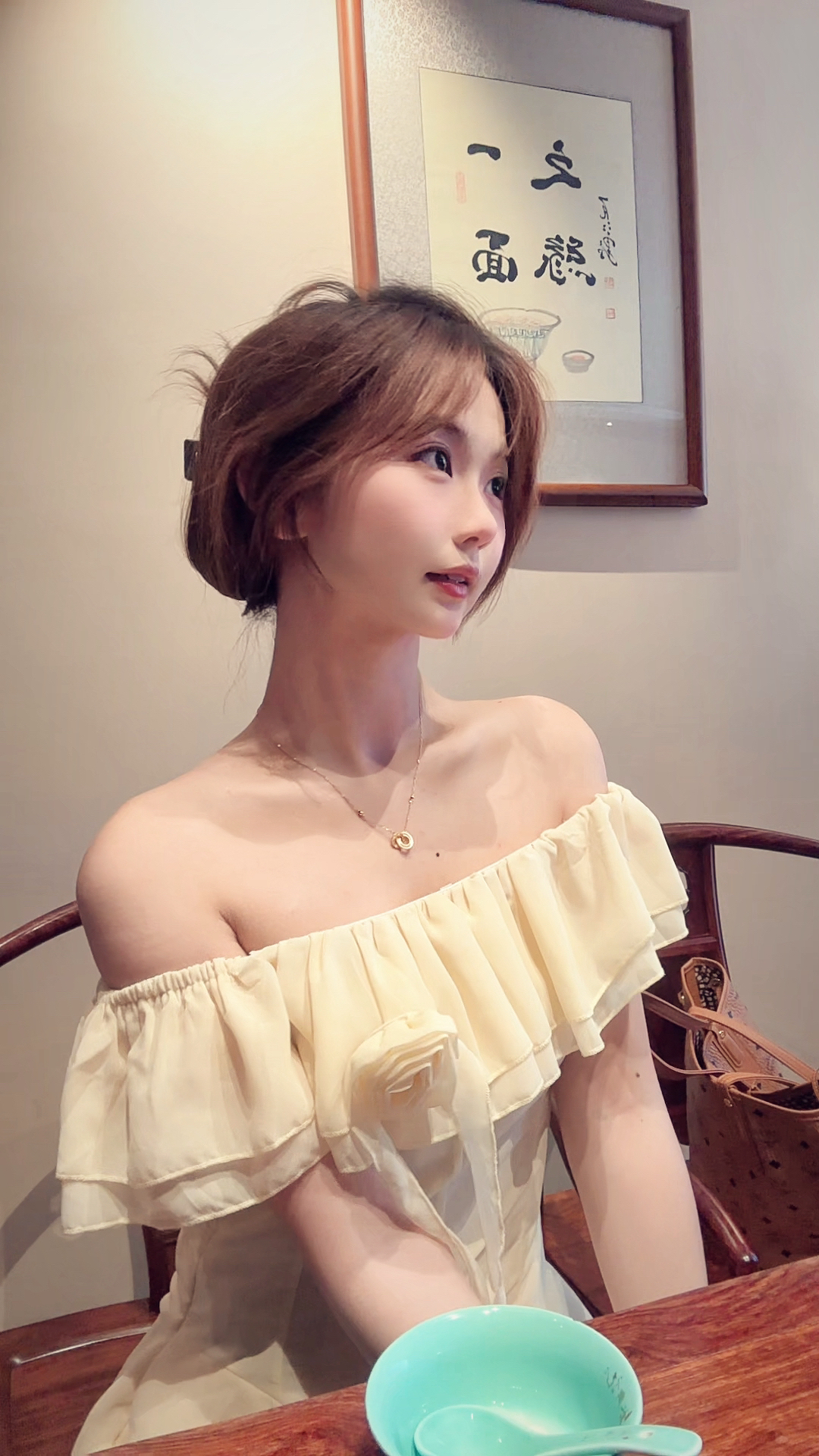 身高|体重:168cm/102 🧍♂️ 穿搭风格:法式 甜妹 温柔 👗:淡黄色不规则一字肩连衣裙 👟 鞋子:空军 🎒配饰:设计感的配饰更加分!