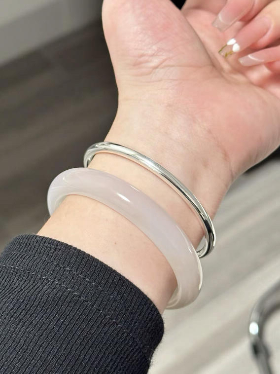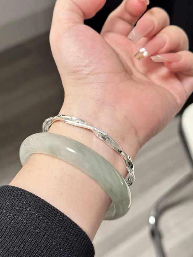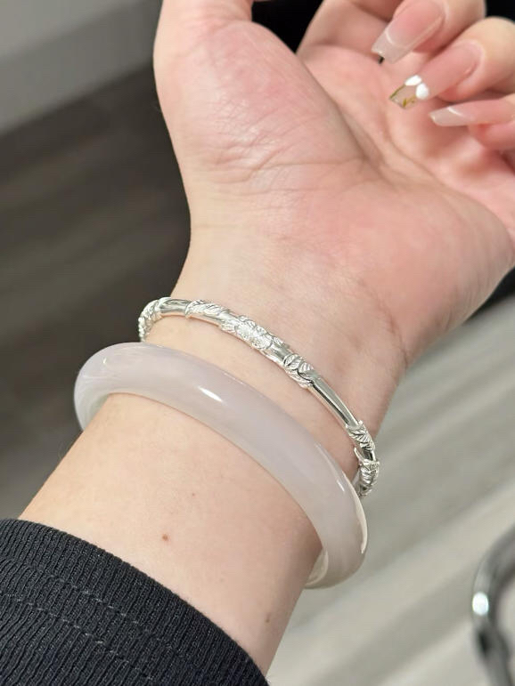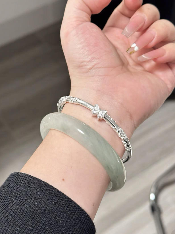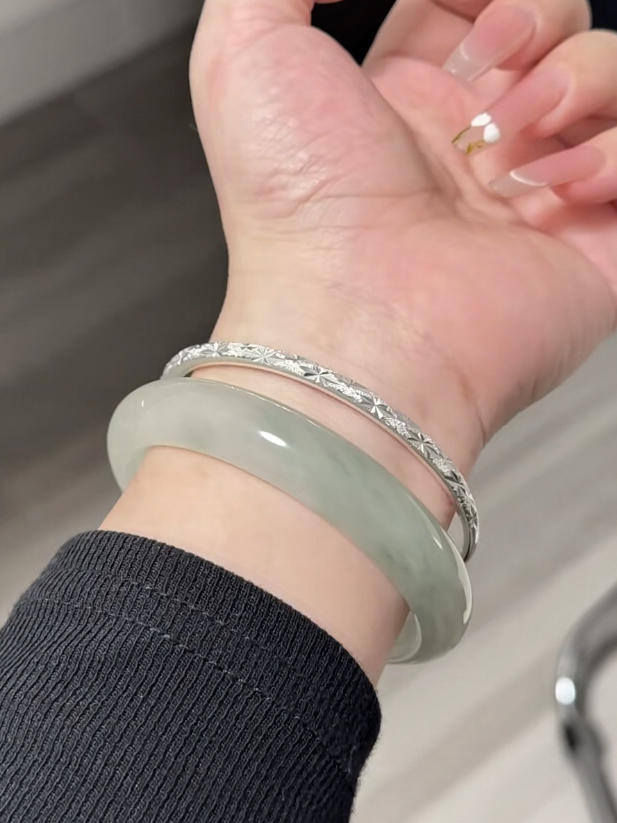 小时候羡慕别人有银手镯 现在靠自己银手镯和玉手镯都拿下啦 叠戴尊嘟是美翻倍了 是女孩子心心念念的清冷氛围感 初秋日常搭配上新中式穿搭 戴上叠戴尊嘟吼看的不是一点点哇~