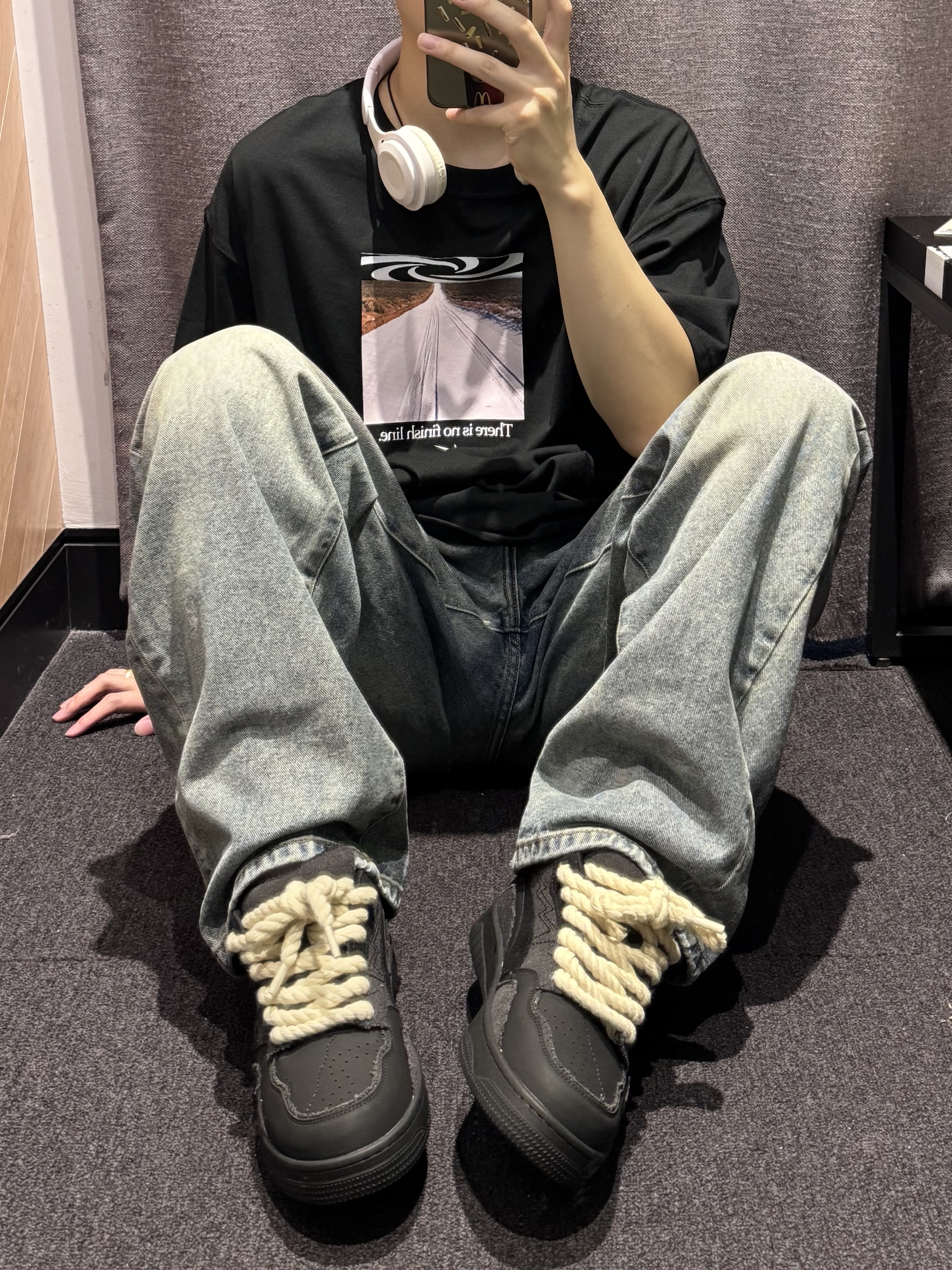 谁懂这双黑武士面包鞋的含金量🥺 纯黑色百搭又很显高级‼️ 米色脏辫鞋带设计 自带层次感~ 上脚增高4cm左右 小个子男生也能轻松get大长腿😉 穿了有一周左右 脚感还挺不错的💯 搭配牛仔裤➕同色系T恤 轻轻松松拿捏清冷帅哥穿搭🎧 #夏天剪吊牌最快的一次 #不靠建模靠穿搭 #夏日gymfit #夏日穿搭主打松弛感 #把这双鞋焊在脚上