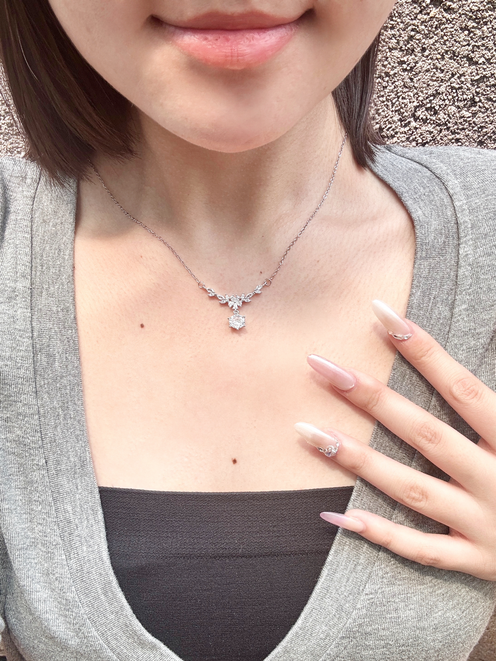 闪到失焦的紫藤花项链真的拯救了我的漂亮裙子 完全加分诶! 闪闪的感觉一下子脖颈间都清透起来了!又仙又很显气质 阳光下下和灯光下都非常耀眼 我这个闪闪脑袋真的沦陷了! 而且日常搭配短袖也很适合有种极简美谁懂!完全是写着夏天名字的一条项链子~