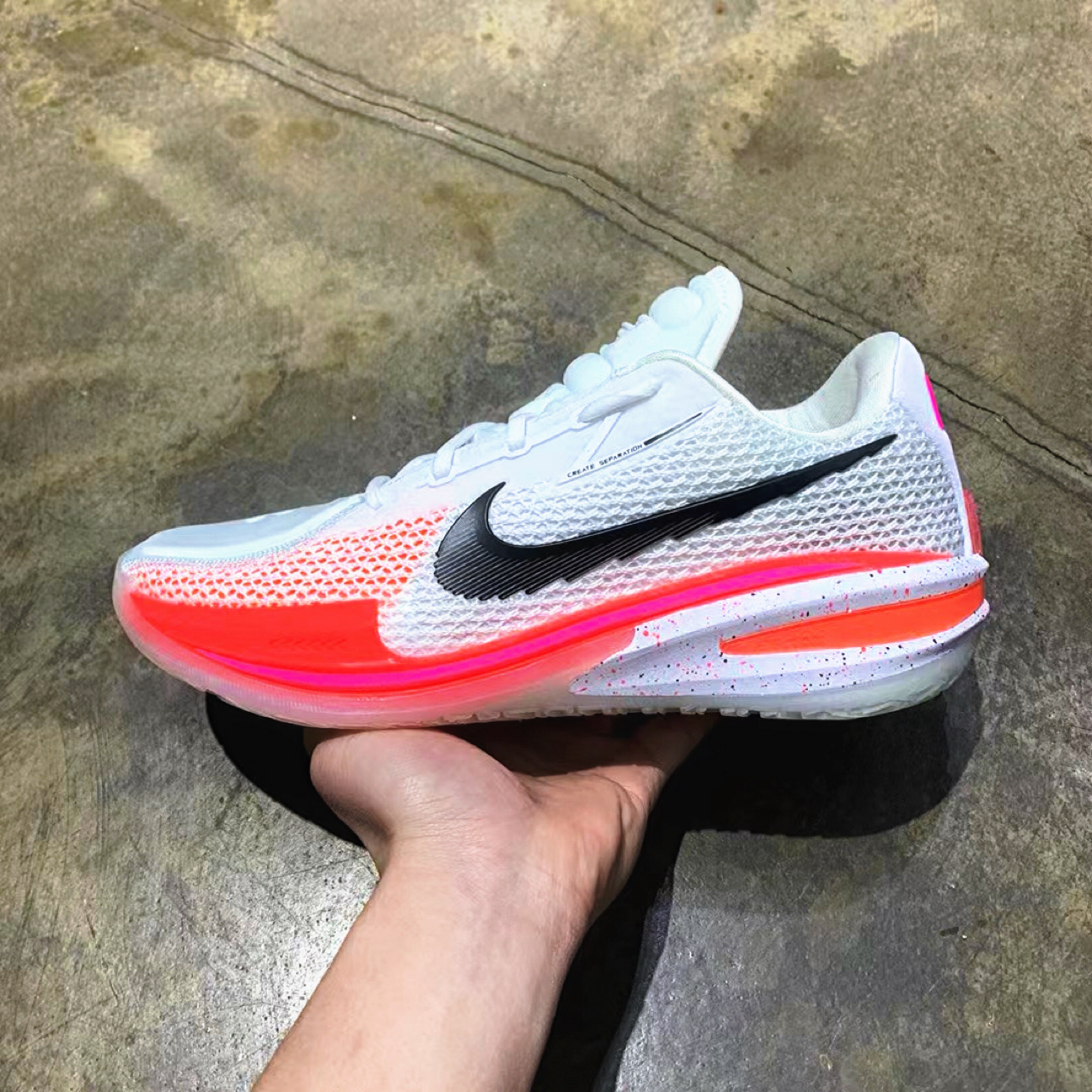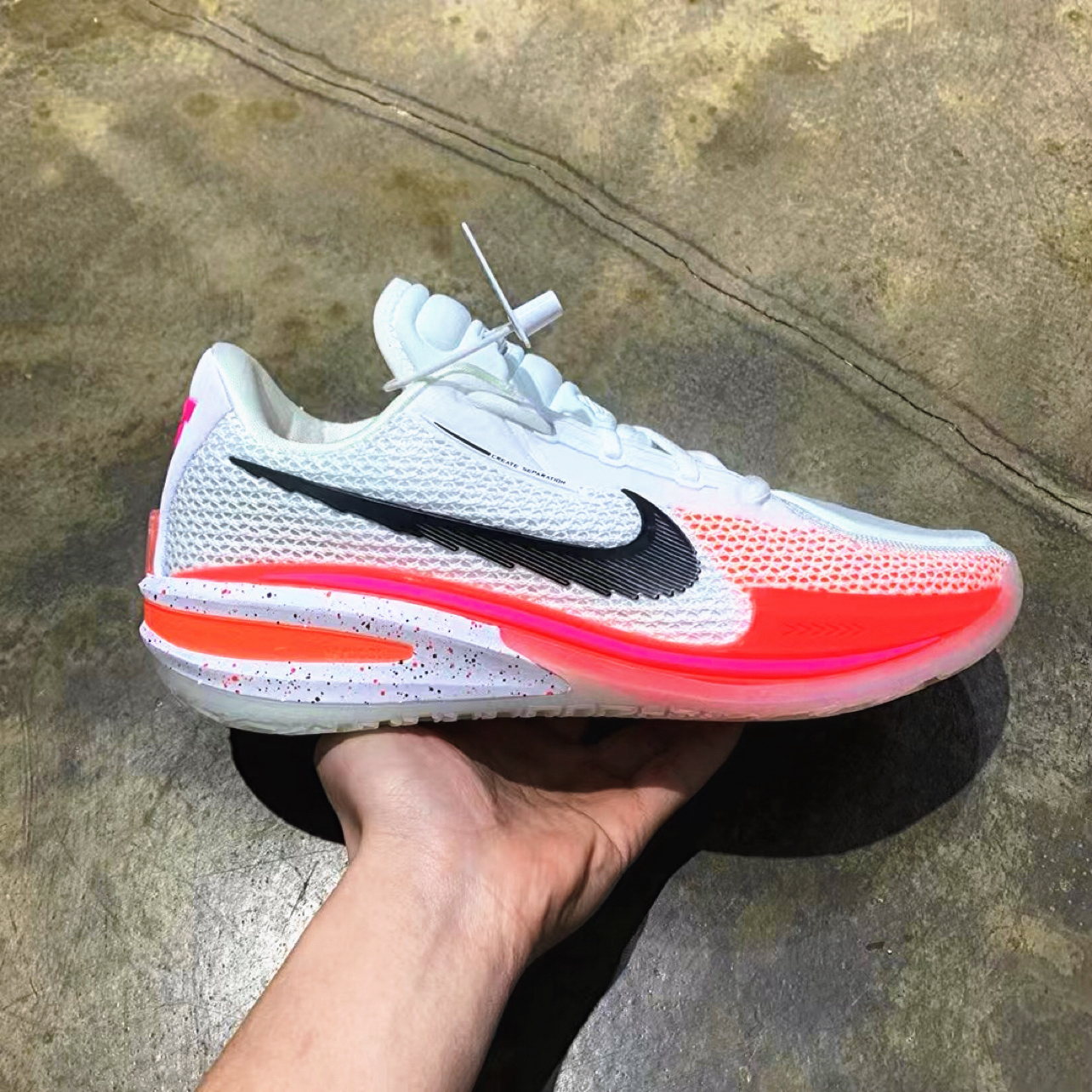 Nike Air Zoom G.T. Cut 1 EP 水蜜桃,这是一双很强的实战球鞋,超级气垫,细节把握,不光是颜值爆表,性能也是嘎嘎棒! 这双鞋的防侧翻、防滑都很不错,外场没打过舍不得,内场没毛病。上脚适应得很快,全掌Zoom气垫+全掌React鞋垫给了充分的缓震,全掌Zoom气垫位置和设计有点像KD12。后高前低的设计启动跑动很顺畅。入手原因最大原因就是网红球员+职业球员上脚率很高,确实狠...