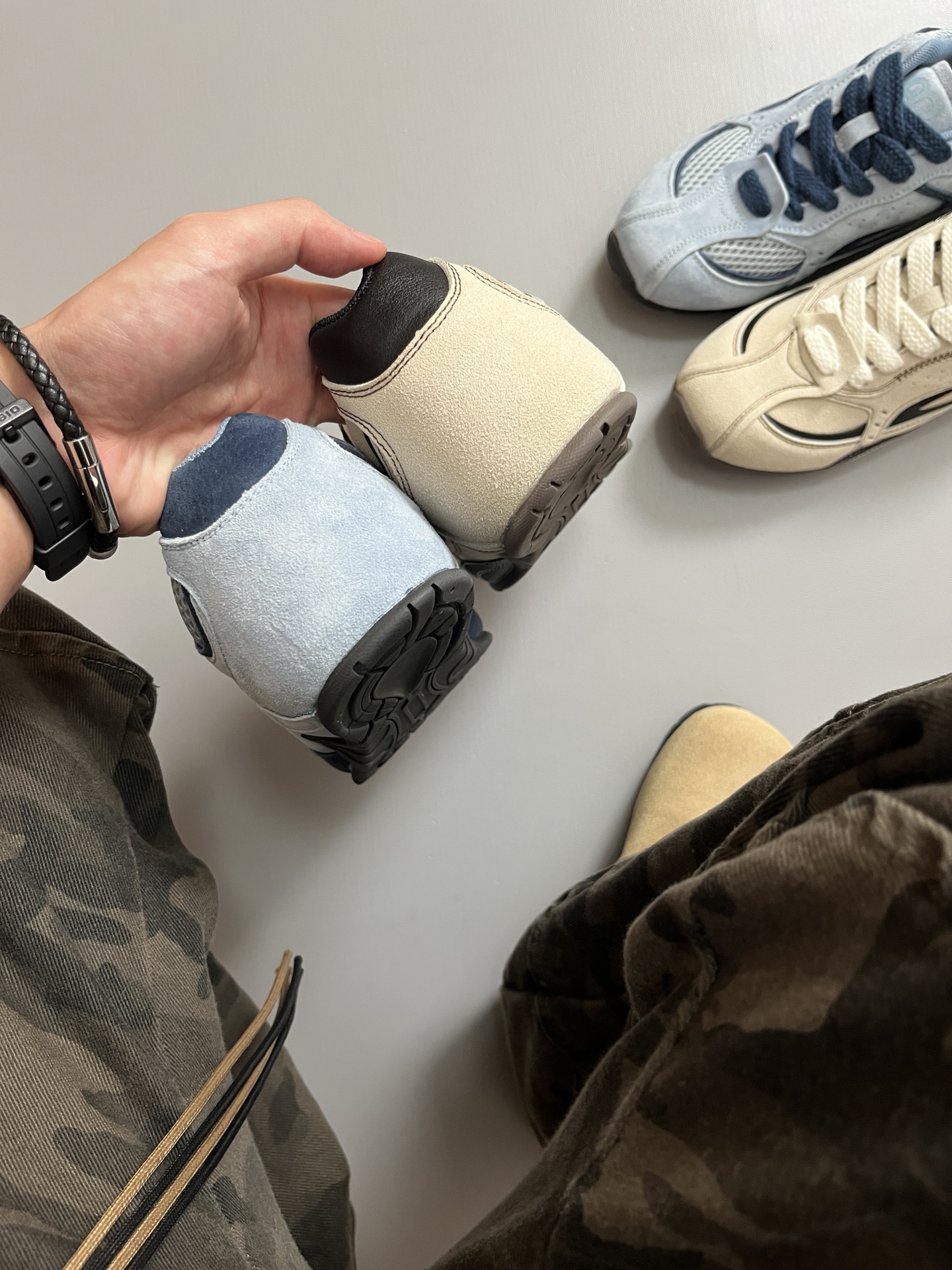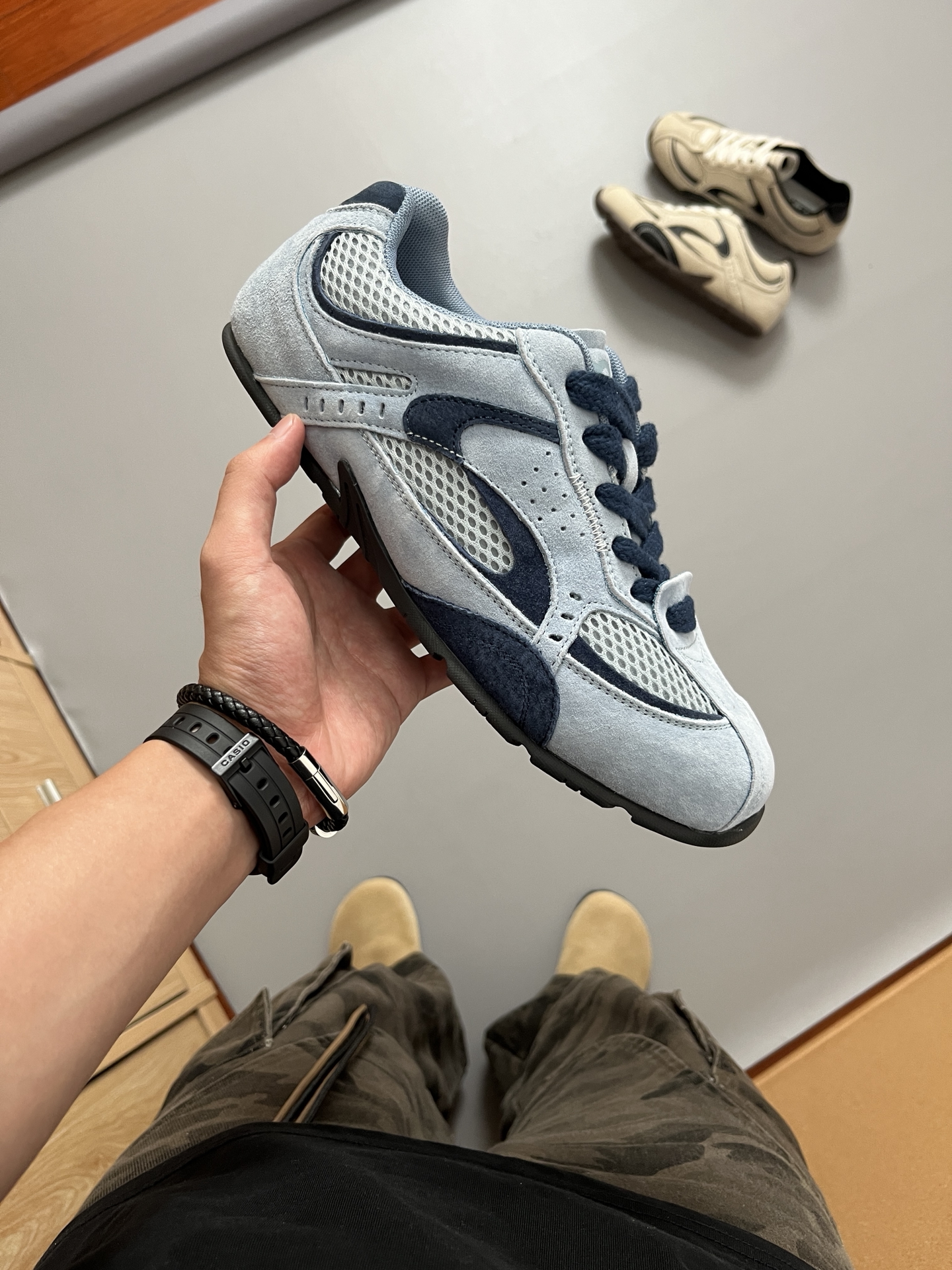 刷到 #MR.A 的赛车鞋时,第一反应是“这些颜色也太治愈了吧”——配牛仔裤是少年感🌱,搭亚麻裙🌸又带点法式松弛。 ➡️鞋面是软布+透气网布拼接,30℃穿不闷脚;上脚走路轻得像踩云,🤔鞋型挺括不塌的,走久了脚也不酸。 ➡️德训鞋的老爹感被它玩明白了,雾霾蓝适合夏季穿,米白色冬季穿也很Chill! ➡️日常通勤、遛弯买菜甚至短途旅行,套上就走,比运动鞋体面,比皮鞋舒服的咧~ ✅尺码参考:170/1...