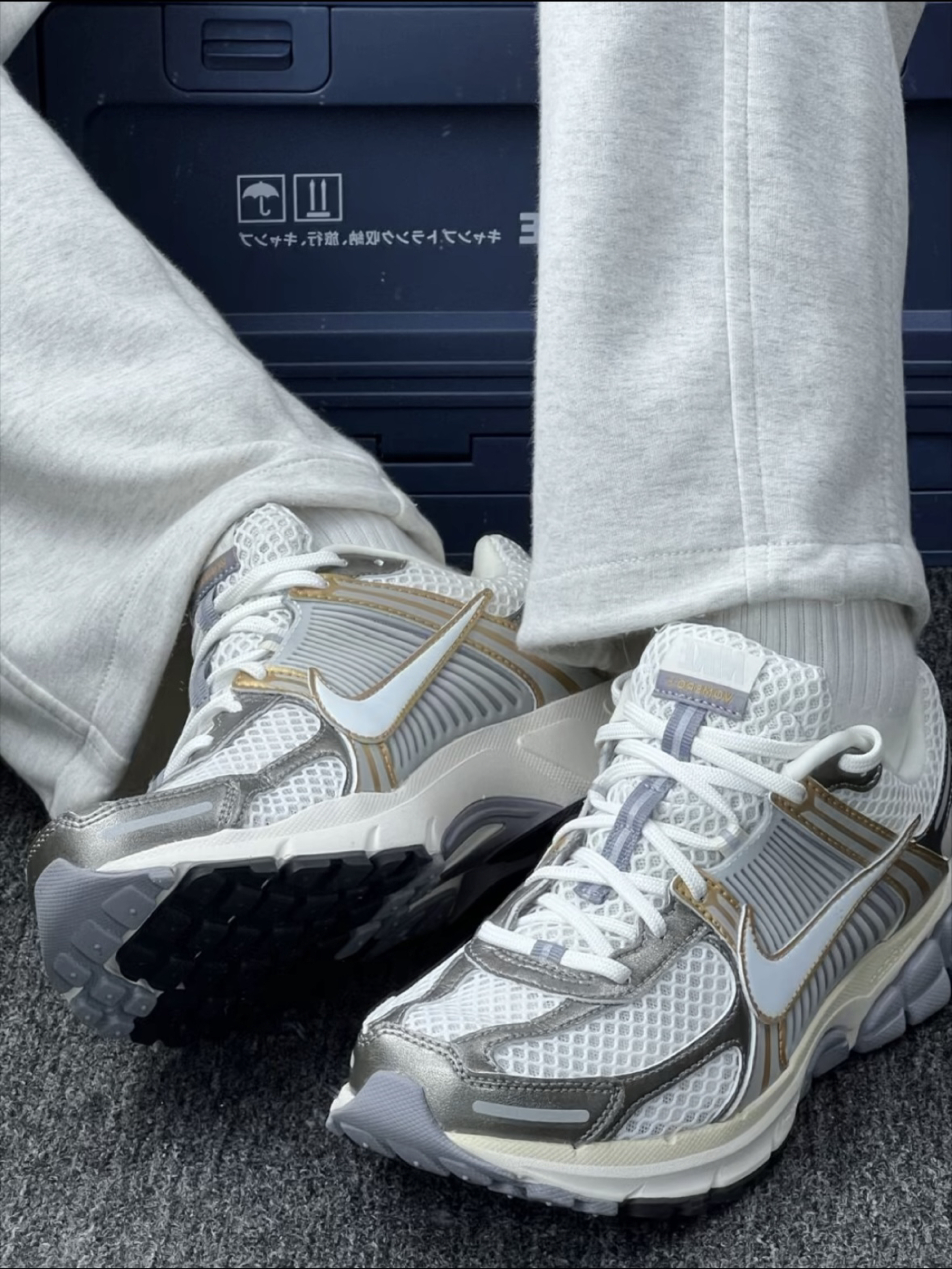 Nike Vomero 5这鞋,我穿了好久了! 鞋面铂金色看着真的很高级的,感觉摸着也蛮有质感的,整体我觉得还蛮特别! 网面还挺透气的,我夏天穿脚都不闷,缓震我感觉还也不错,走路小跑都没什么太大问题! 搭什么衣服都好看,我一般就是搭阔腿牛仔裤配这鞋,一整个休闲风也会搭运动短裤,也还不错看着整体很合我心意,日常穿我很满意!