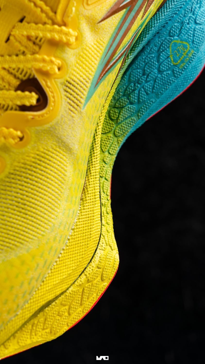 早就见过这双sample, 如今终于迎来大货了。 飞燃4的海绵宝宝要比3代细节更多了一些, 尤其是尾部这个蓝色跳的很好看, 黄金大碳板也是格外显眼。 这代中底厚度增加, 前掌内侧的支撑也来到了一个很好的水平, 当然是在竞速鞋里,叠个buff。 前掌左右两侧做了方便滚动引导的切削。 不管是纵向还是横向,都很自然, 后跟的起翘点有做前移, 加上这块碳板,蹬伸滚动都很流畅有劲, 其实我觉得它的驾驭还是要...