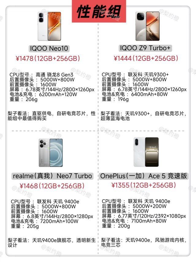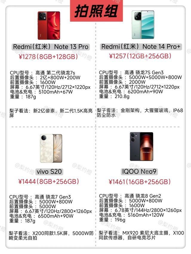 在1000-1500元这个价位段,想要选出高性价比手机,主包从四个关键维度为大家精心筛选了 16 款机型,分为性能、拍照、续航、护眼四组。 _ 1.性能组:搭载高效处理器,具备强大运算能力。无论是运行大型游戏,还是多任务处理,都能轻松应对,让你告别卡顿,畅享流畅操作体验。在这个快节奏时代,高效性能就是手机的核心竞争力。 _ 2.拍照组:它们配备高像素摄像头和先进的影像算法,无论是拍摄风景大片,还是...