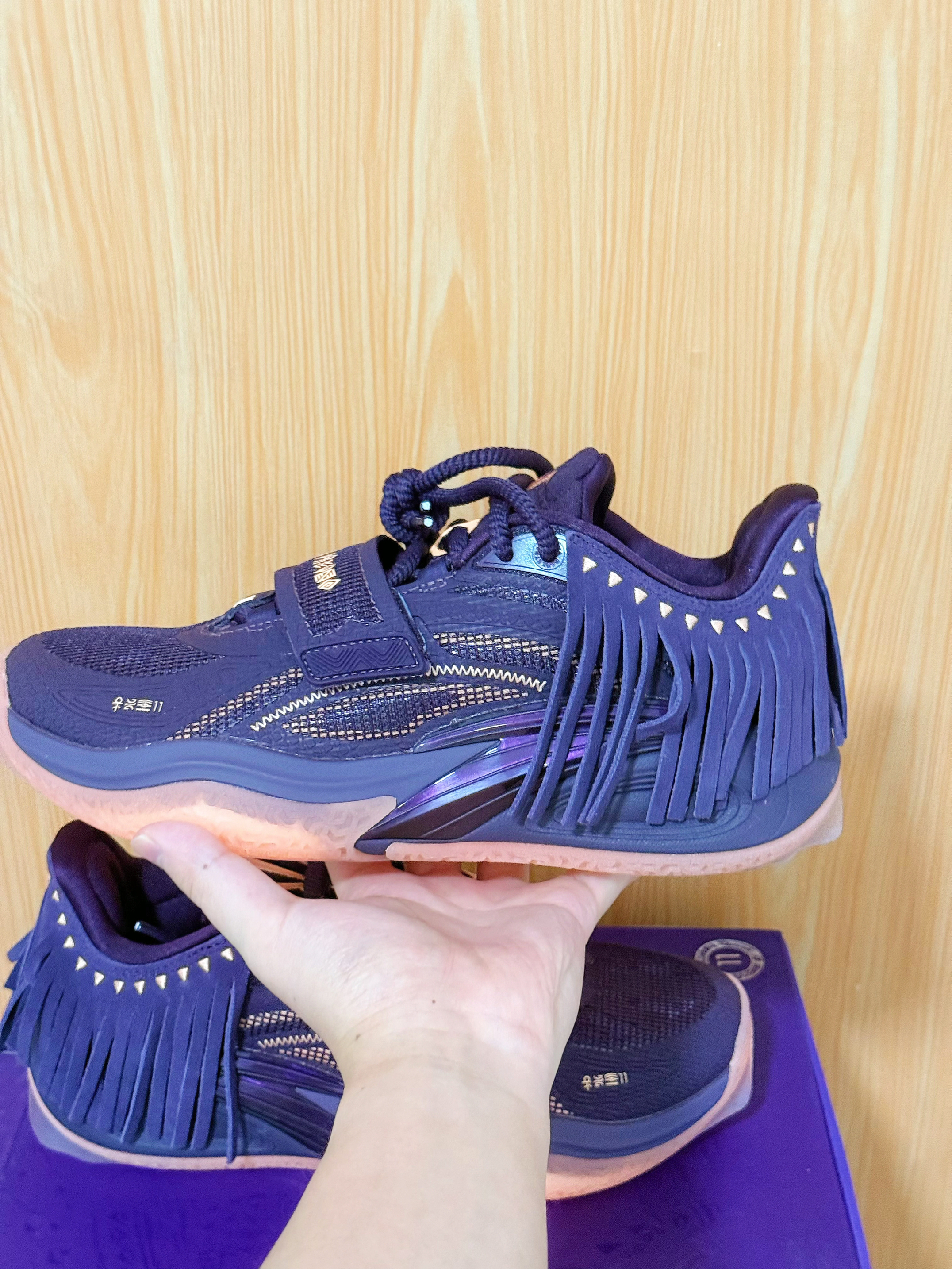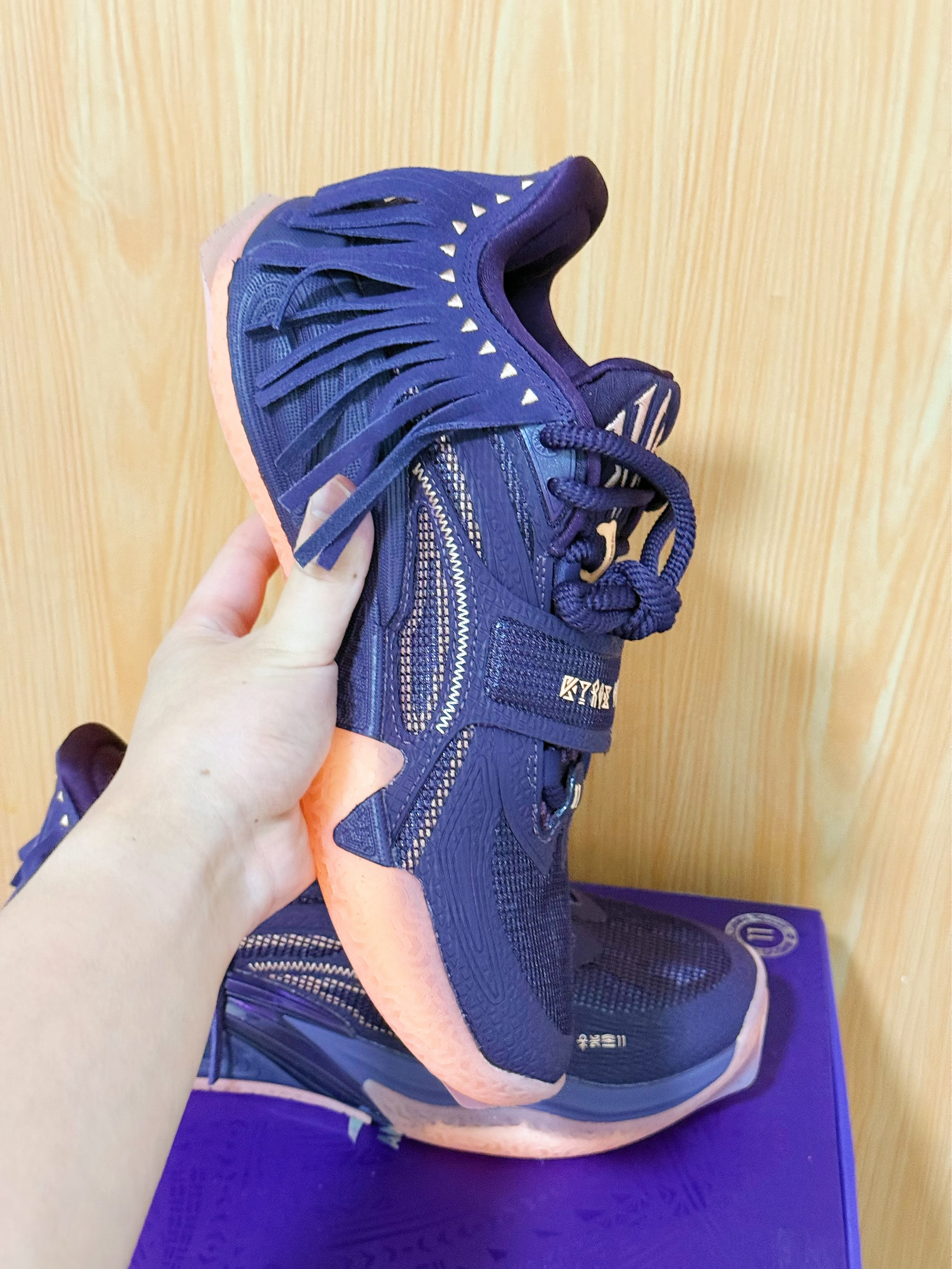 紫色酋长——AnTa 欧文一代还是没有忍住 想不到实物到手 可能想象总是美好的吧❗️ 这双紫色的配色 大面积的紫色 拿到实物后 有一点点差强人意~~~~