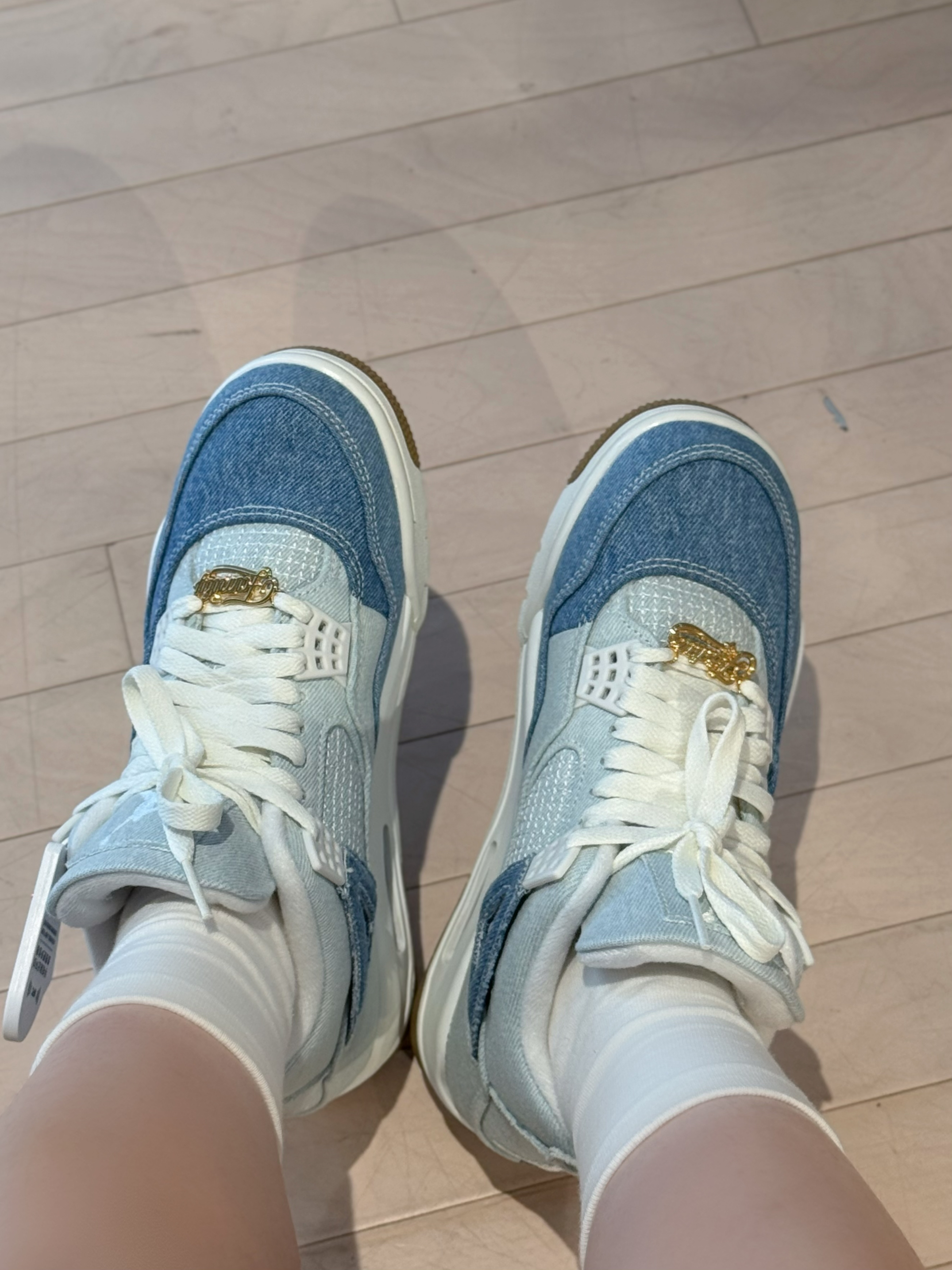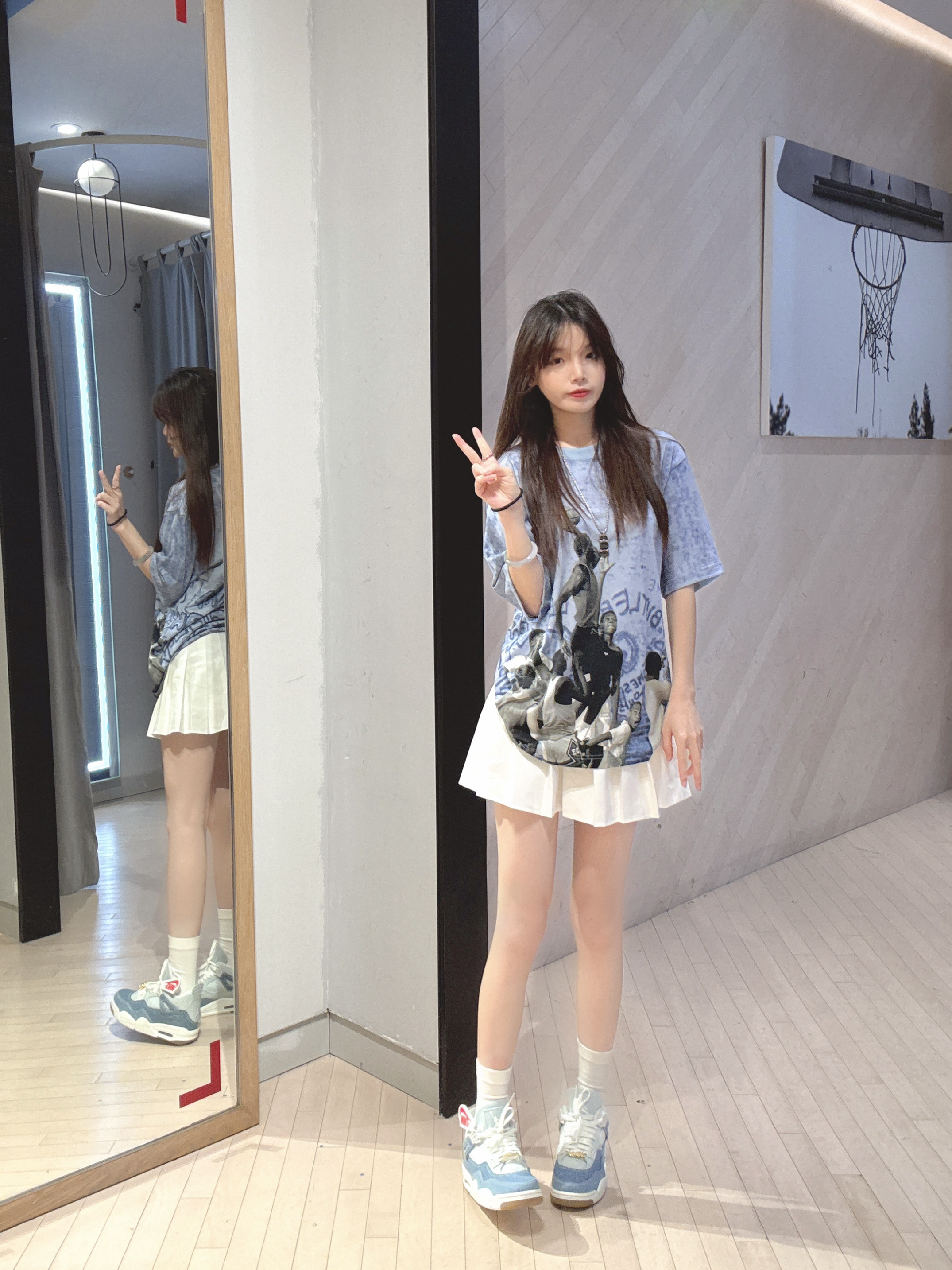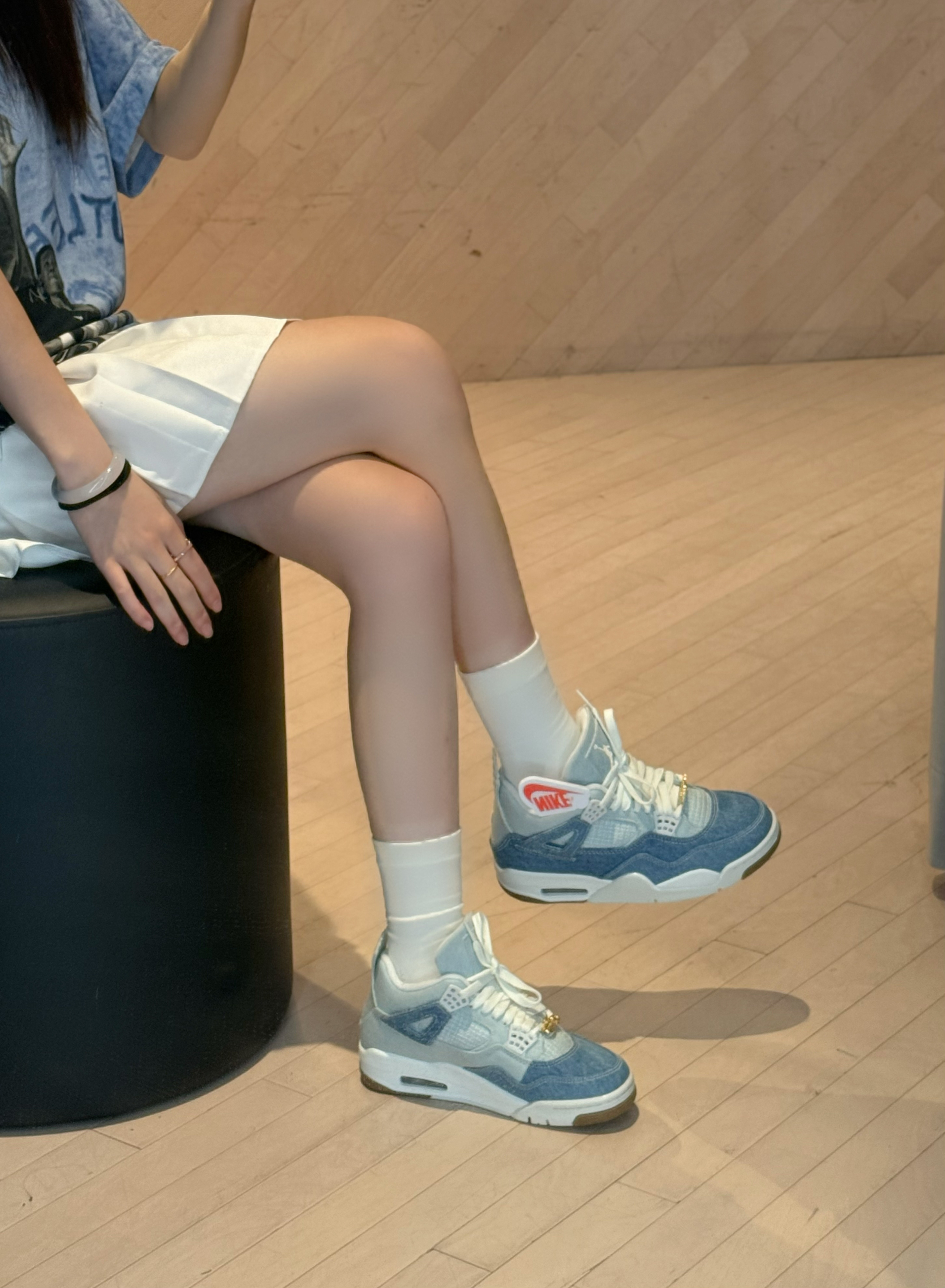 今日穿搭蓝色T➕百褶裙 再加上牛仔aj4👟 这套太清爽啦~ 太喜欢这复古牛仔aj4啦 ~ 日常搭配牛仔裤也超酷😎 质感还是很👌的呢!