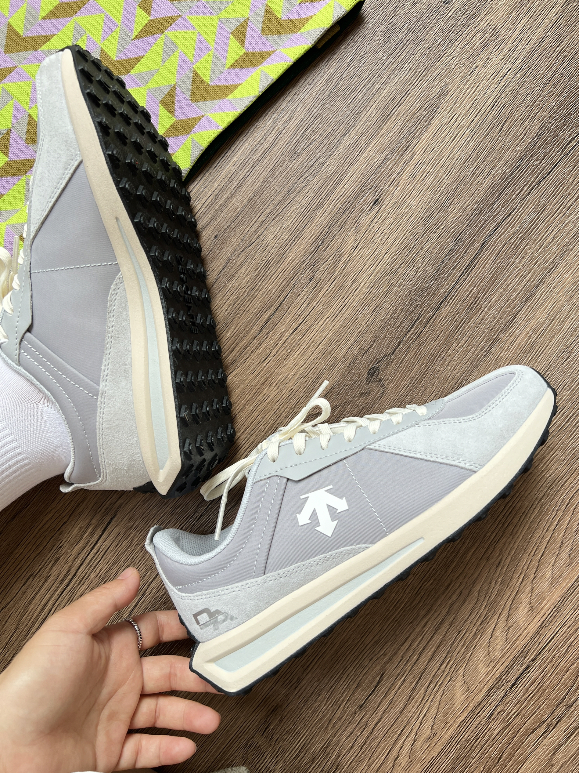 迪桑特我真的无脑喜欢~ 脚感不踩雷,质感没得说。 这双防滑杠杠🉐️扒地扒得紧🐙 他家尺码很足,我日常36.5或者37码,这双36.5码刚好。 整体是皮面➕麂皮➕细腻的织物 缺点就是不太耐脏 PS:如果他的logo再好看点就好了