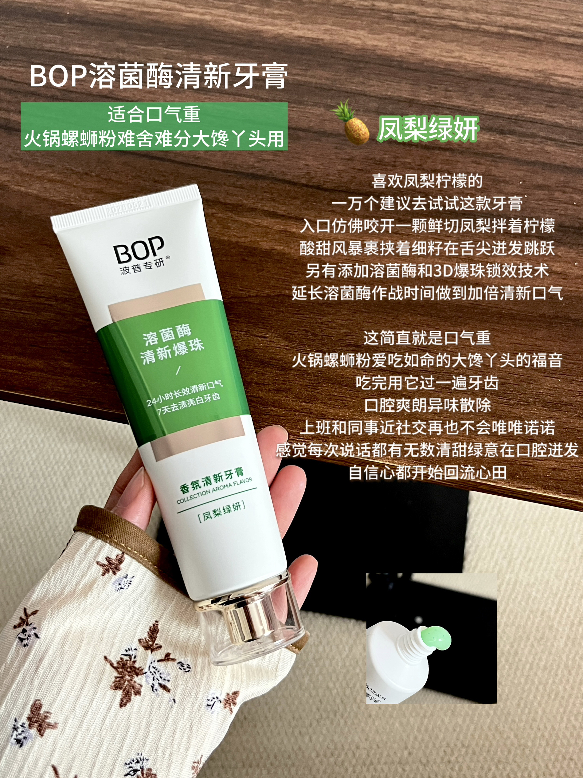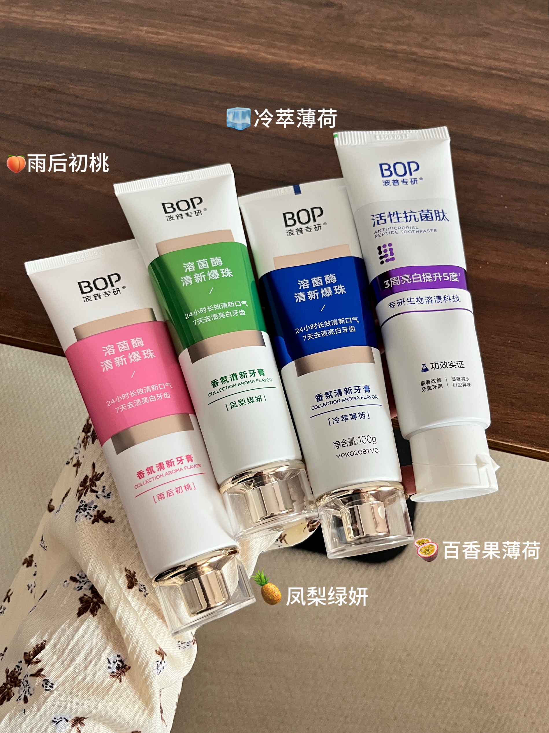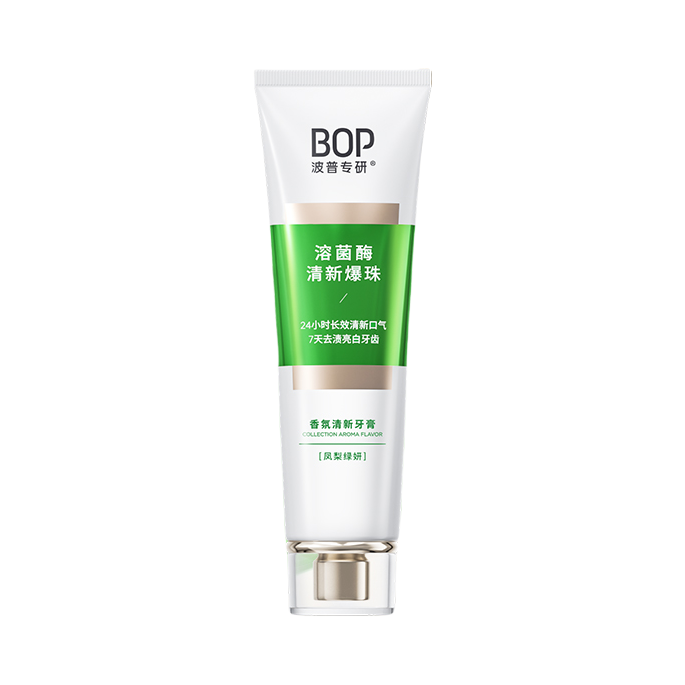 本篇笔记关联了【迪丽热巴同款】bop 美白固齿牙膏 清新口气去黄去渍色修含氟抗牙菌斑紫膏体 生物溶渍亮白、bop 雨后初桃凤梨绿妍香氛牙膏套装 清新口气 凤梨绿妍100g+雨后初桃100g、bop 溶菌酶清新爆珠香氛牙膏 持久留香去黄含氟 凤梨绿妍等商品,为用户提供真实的使用体验和购买参考。