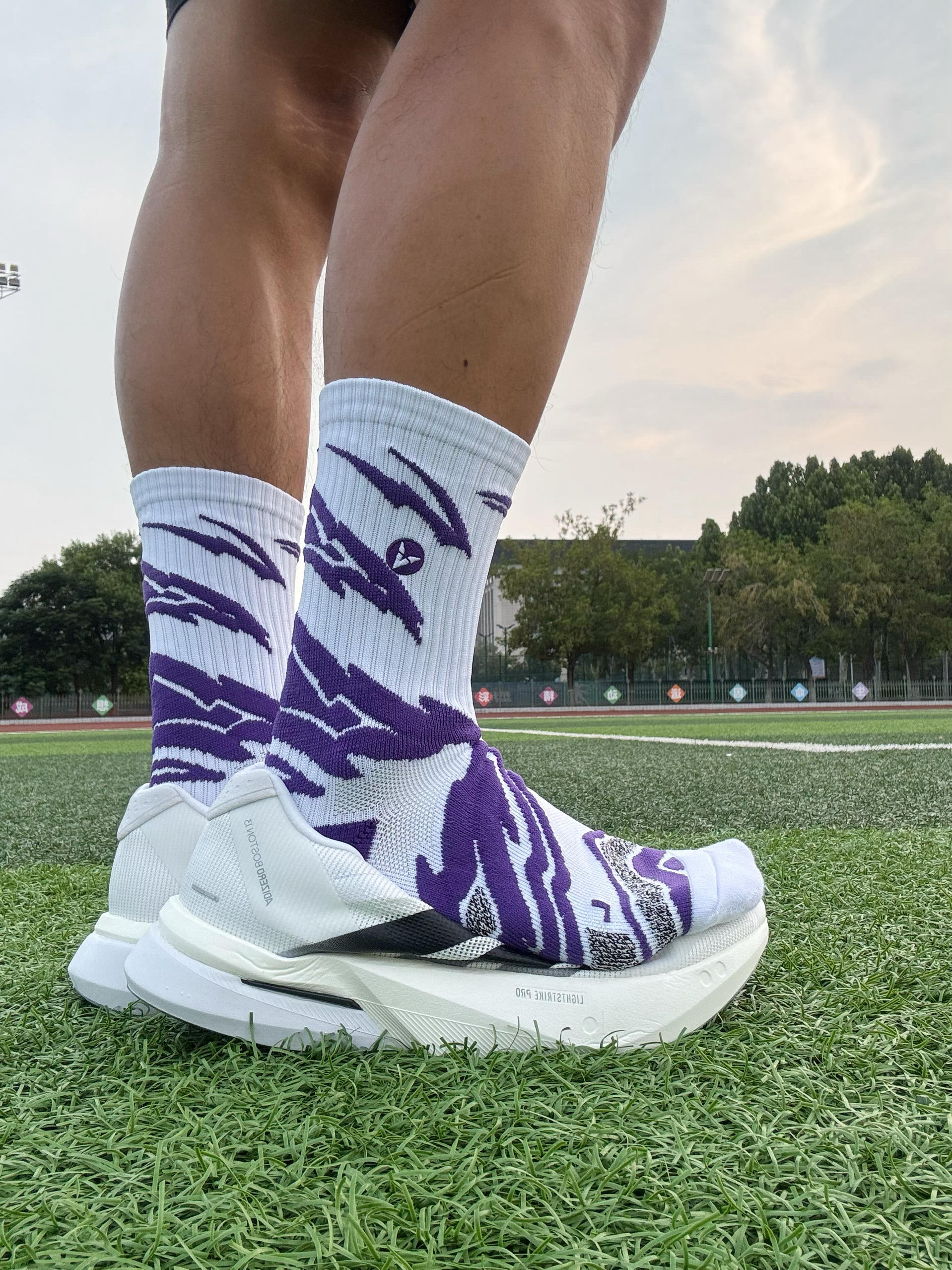 兄弟们,今天穿的是维动家的跨海Pro篮球袜,这款篮球袜真的有点好看诶 这款袜子上有浪花的设计,真的很有特点啊,让整个袜子的颜值都变高了 并且将袜子的防滑纹与结合在一起,设计感满满,还能起到防打滑的作用 袜子的包裹性也很好,紧紧的包裹住我们的脚踝 袜子是中厚款,更适合春秋冬穿,现在已经秋天了哦