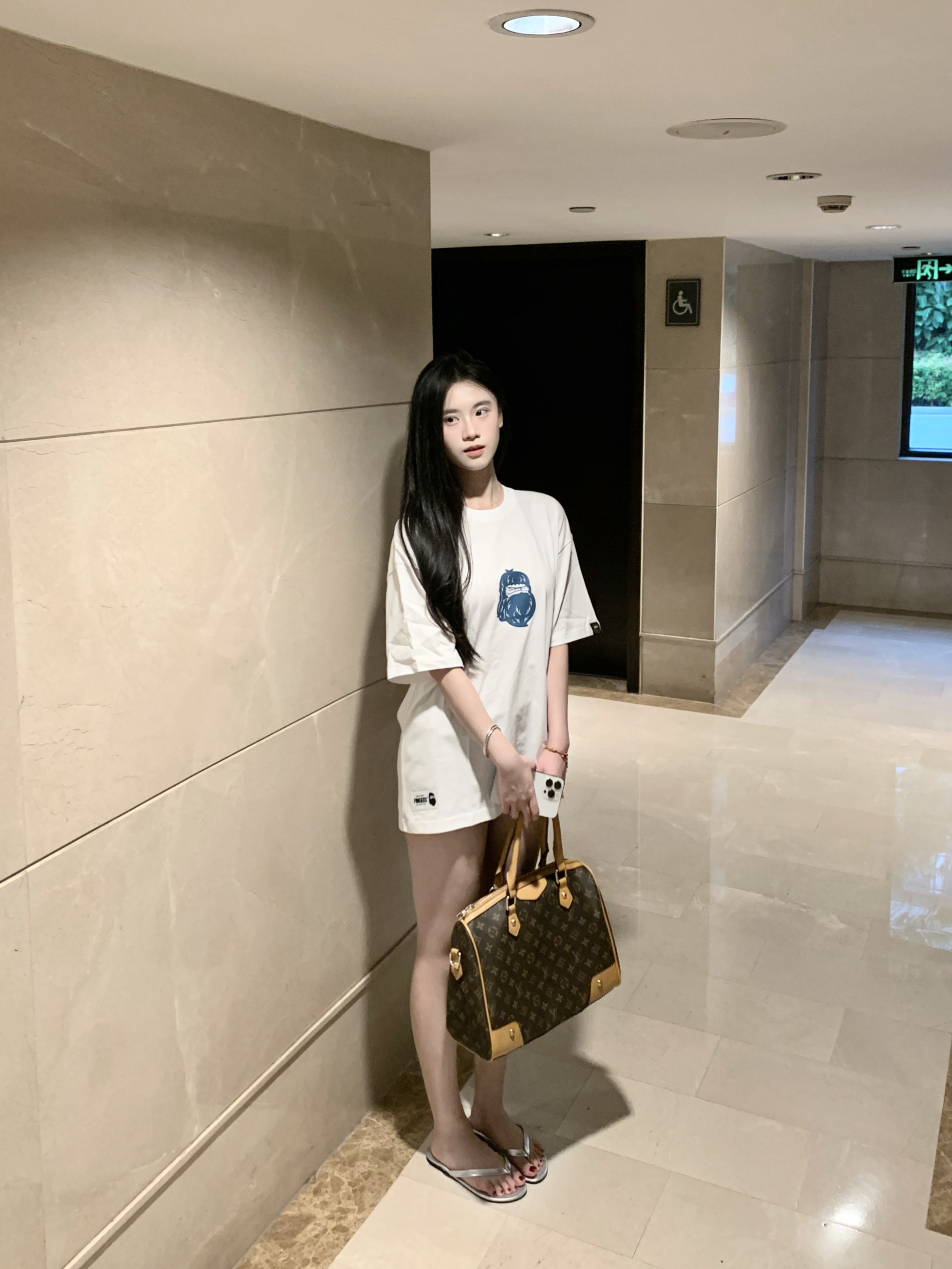 Fingercroxx白色t恤十牛仔短裤+人字拖 整套穿搭简直就是慵懒休闲拉满!赶紧抓住夏天最后的尾巴穿!这一整套就是我的百搭穿搭公式!短袖的面料材质很舒服,尺码对我来说也很合适,有男友风的感觉!