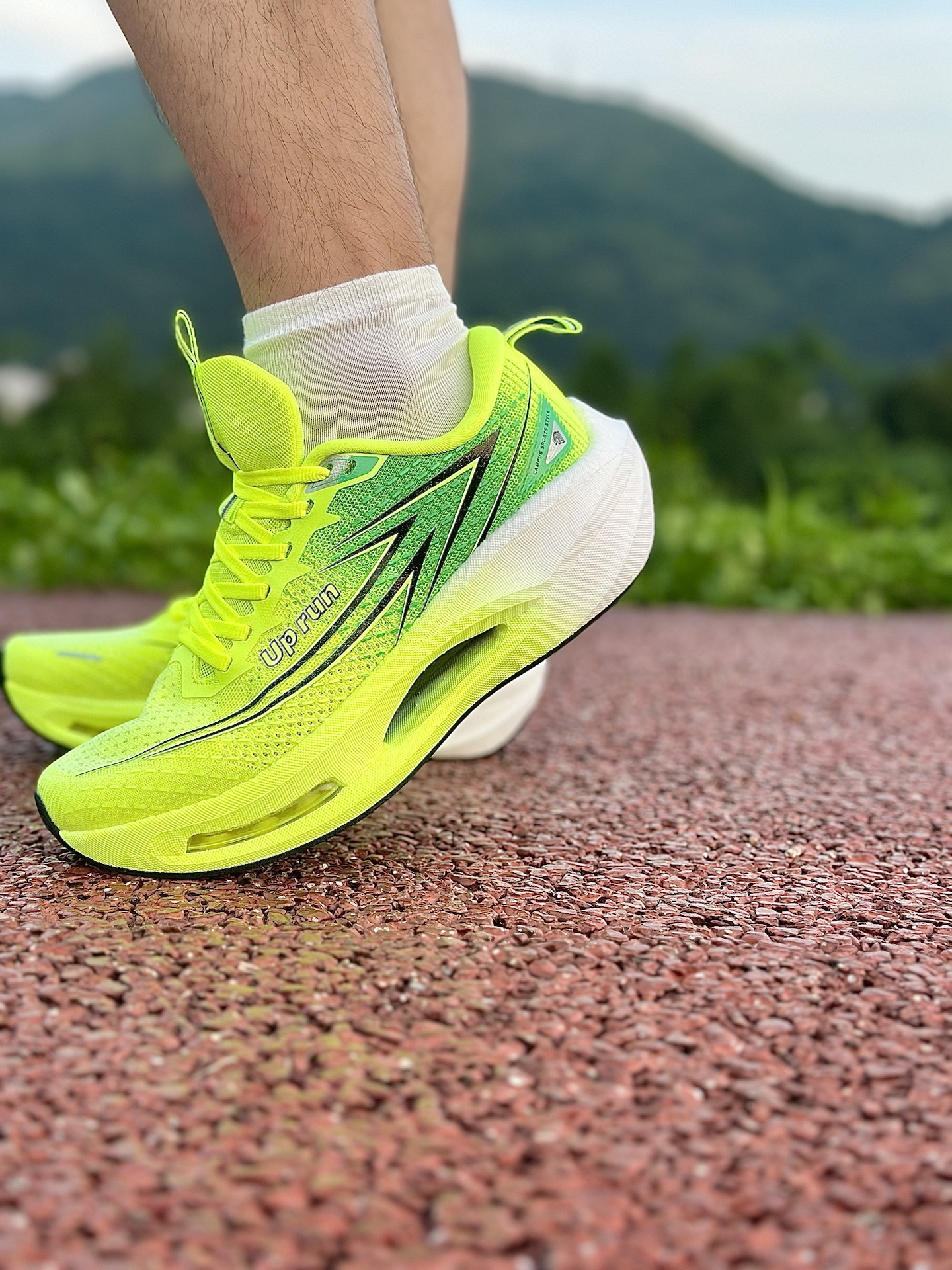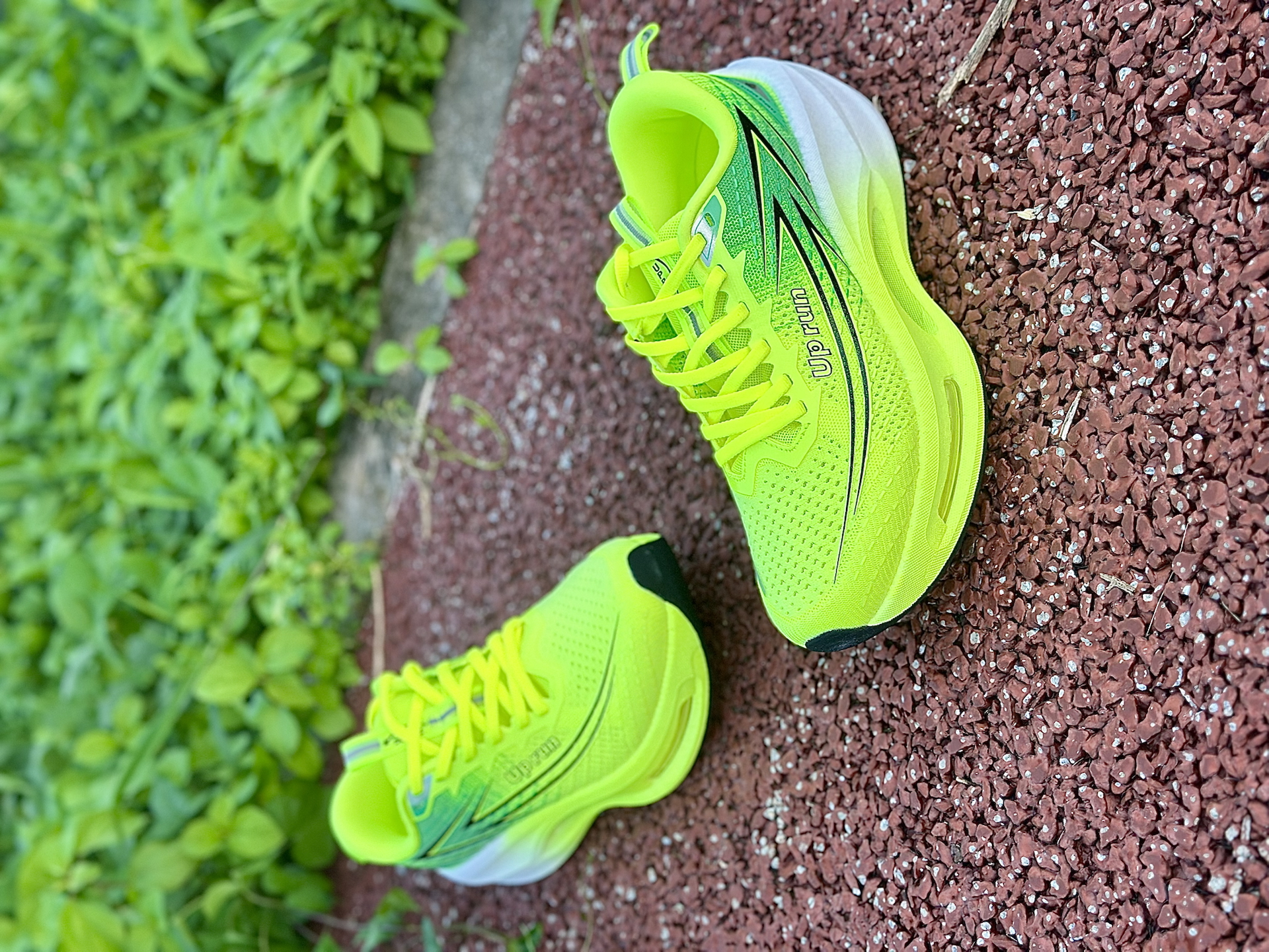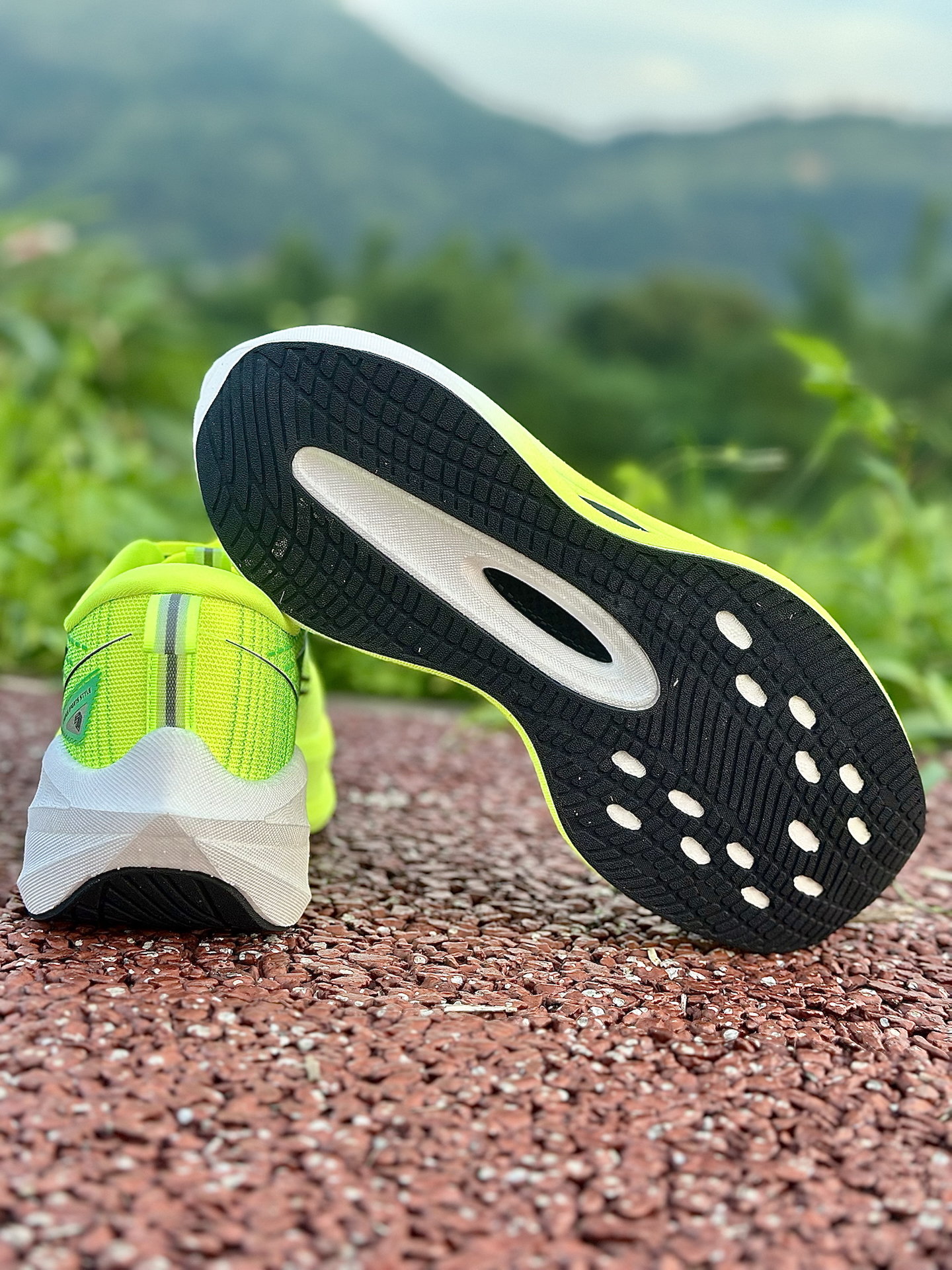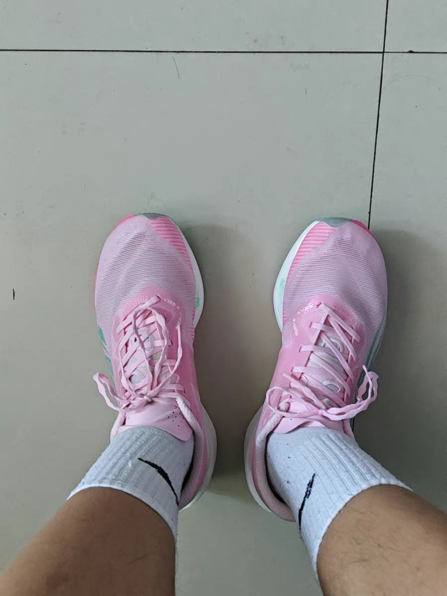 分享下这双鞋的真实上脚体验,跑了几次唠唠: 飞织鞋面透气性真没话说,晨跑半小时,鞋内干爽,脚趾能感受到空气流动,对比有些跑鞋跑完袜子湿黏的情况,这双清爽太多。 前掌气垫反馈明显,起步蹬地时软弹感直接从脚底往上涌,搭配后跟 TPU 结构,落地时脚跟稳稳当当,对膝盖的压力确实有缓解,跑起来更安心。 全掌加宽鞋底太适合我这种“爱晃脚”的人,跑快时脚微微侧歪,鞋底稳稳兜住,重心稳如老狗。橡胶大底抓地力也在...