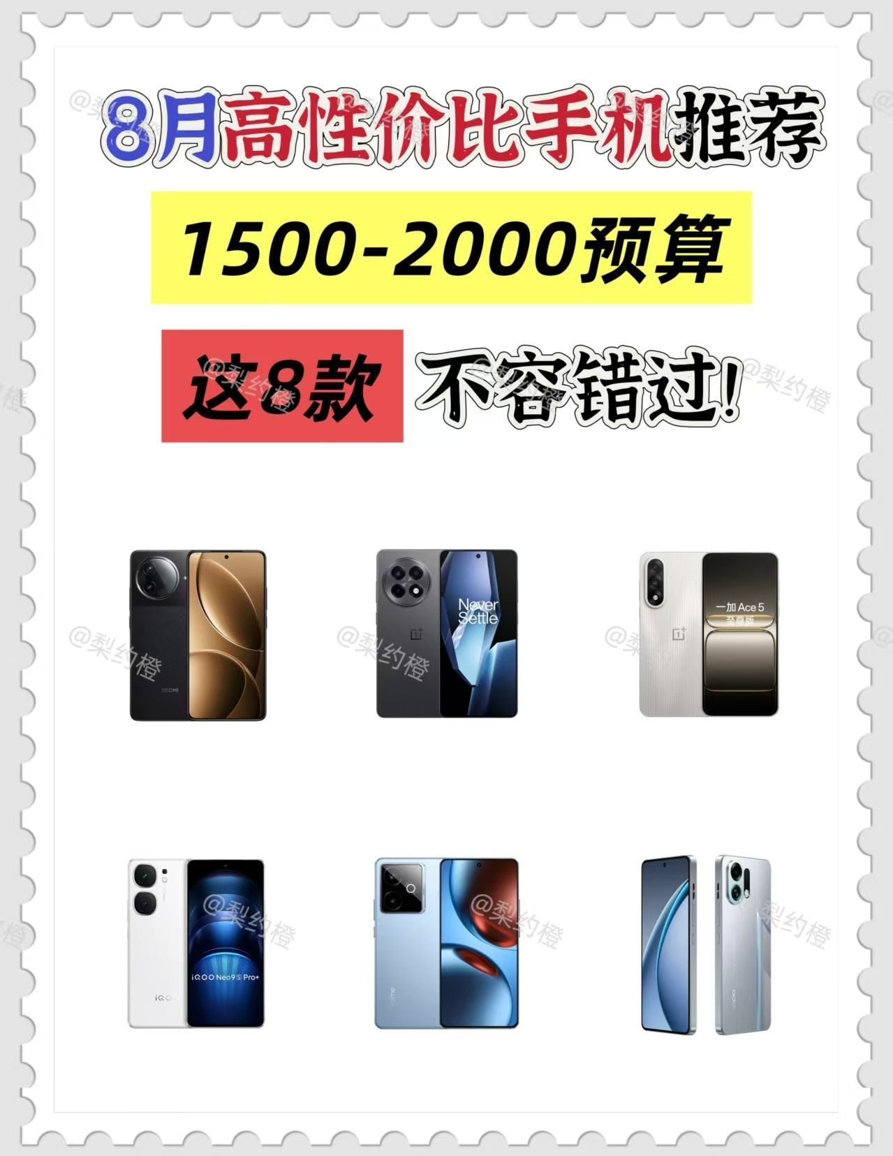 在 1500 - 2000 元预算区间,这八款手机能满足不同使用场景。 _ 游戏组:红米 K80、一加 Ace 5 至尊版、IQOO Neo9s Pro+ _ 红米 K80 搭载高性能处理器,散热系统出色,能长时间稳定运行大型游戏,帧率波动小。一加 Ace 5 至尊版拥有高刷新率屏幕,响应速度快,操作流畅,能让玩家在游戏中抢占先机。IQOO Neo9s Pro+ 具备电竞级的网络优化,减少延迟,确...