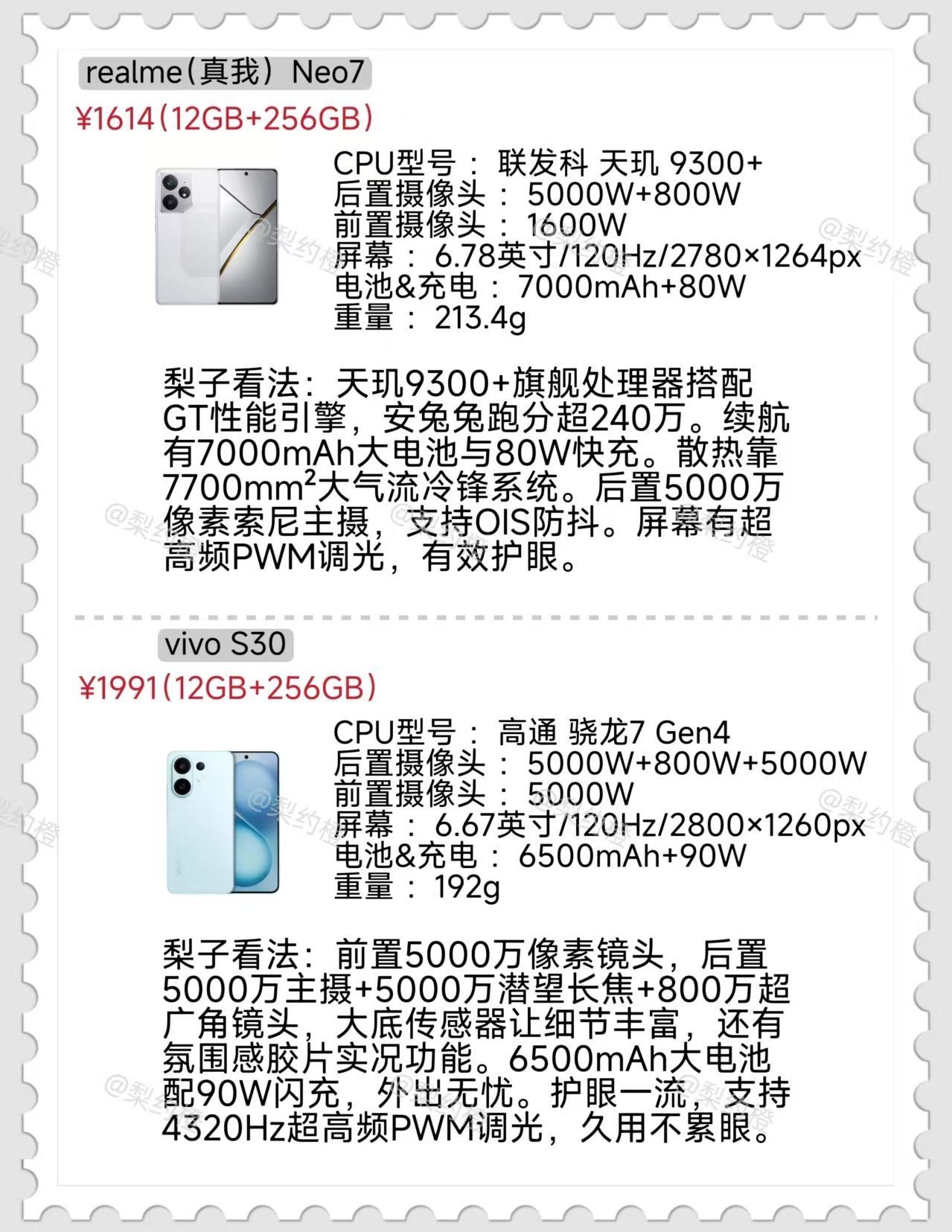 本篇笔记关联了realme/真我 Neo7 5G 手机 天玑9300+ 支持LivePhoto 防水IP68+IP69 科技潮流设计 越级性能 直屏 旗舰芯 护眼 拍照 长续航 高刷 星舰版、OnePlus/一加 Ace5 5G 手机 游戏性能 东方屏 骁龙8Gen3 风驰游戏内核 6400mAh 冰川电池 全速黑、vivo S30 5G 手机 多彩小直屏 超级潜望长焦 全网通 长续航 标配版 闪充 旗舰芯片 备用 大电池 双卡 大内存 高刷 柠檬黄等商品,为用户提供真实的使用体验和购买参考。