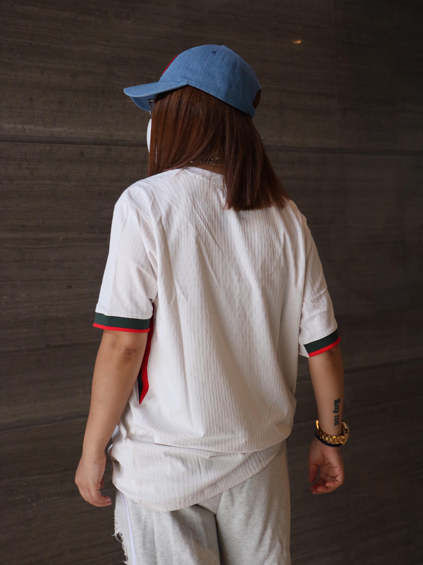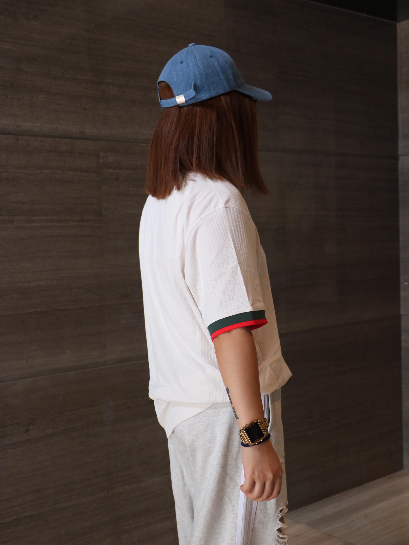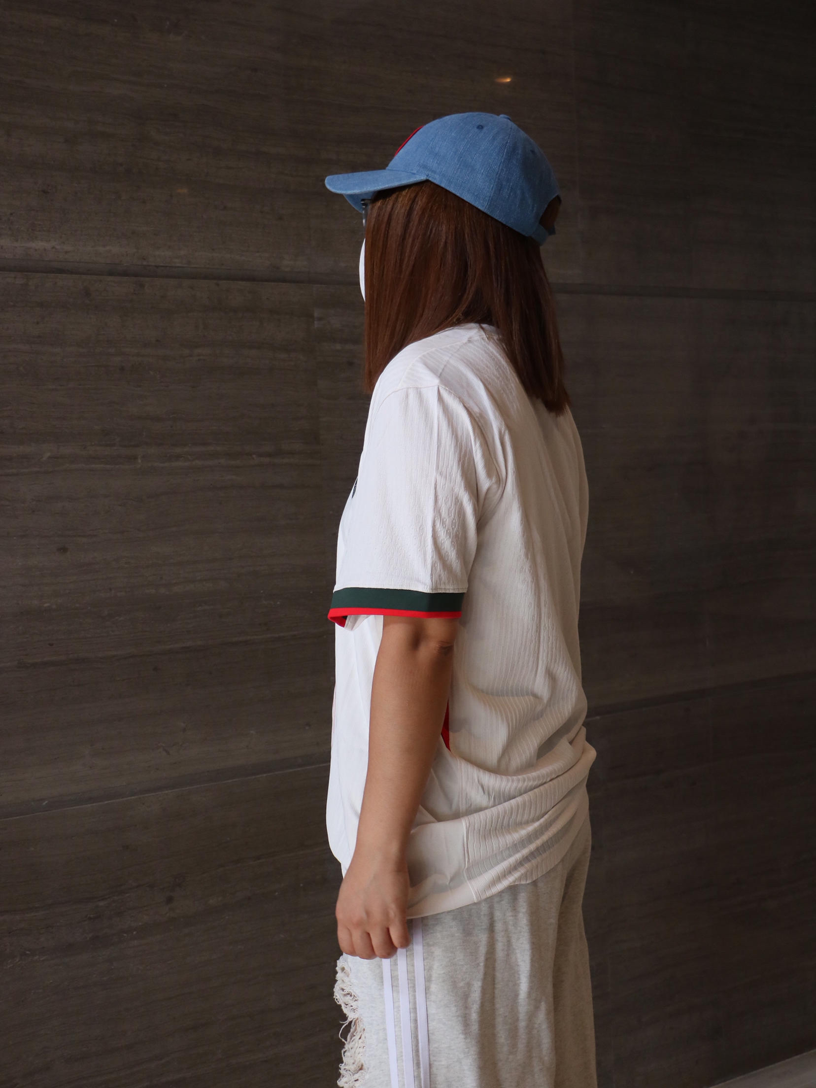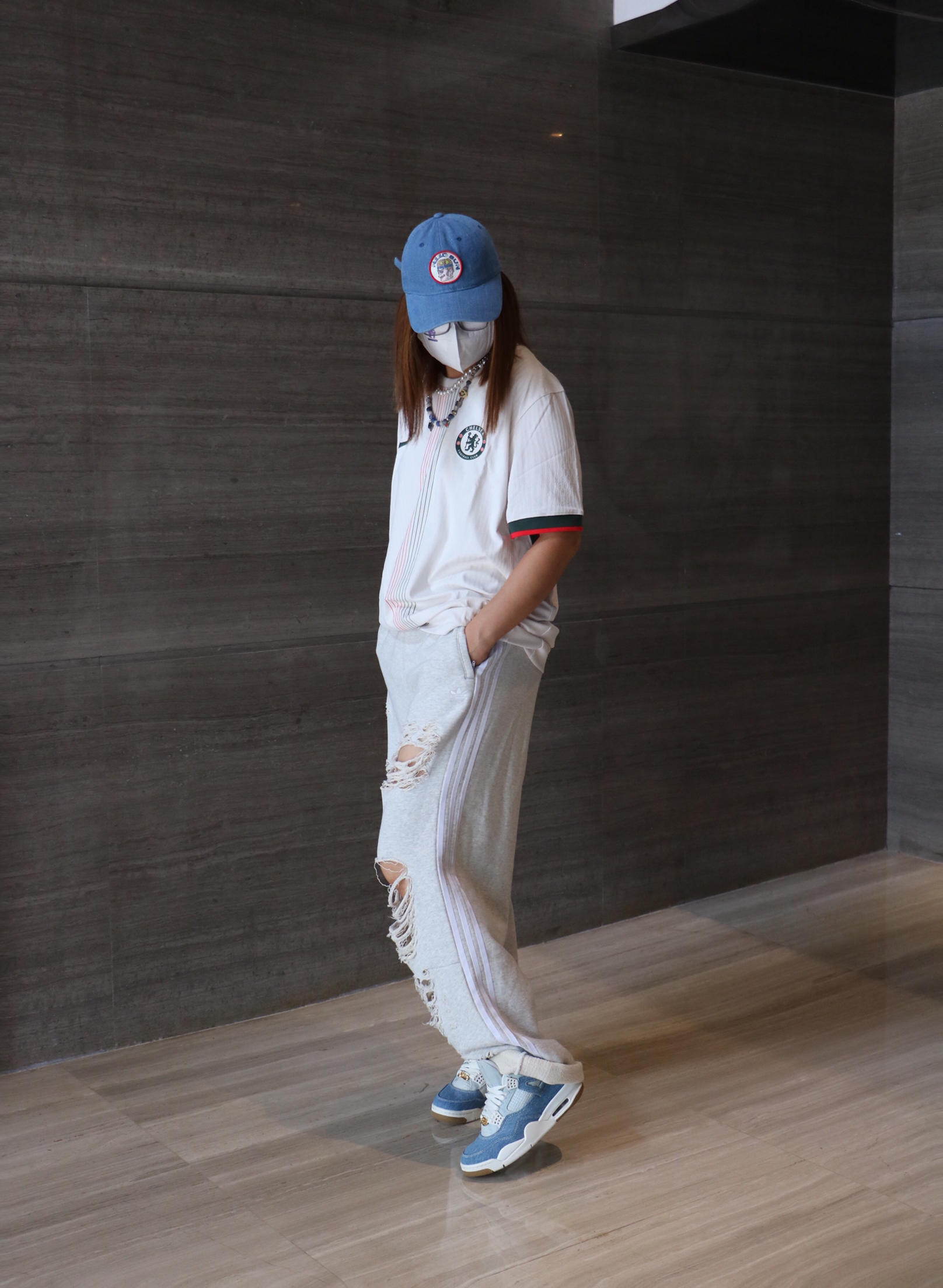 夏日时髦精休闲出游穿搭分享 上衣: nike 细条纹 足球风 字母logo 短袖T恤 下装:阿迪达斯 街头风破洞休闲裤 鞋子:air jordan 4 洗水牛仔