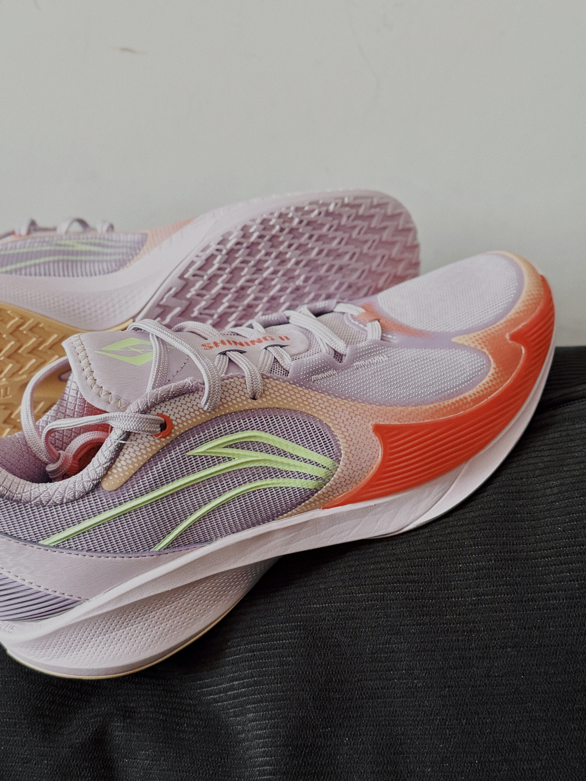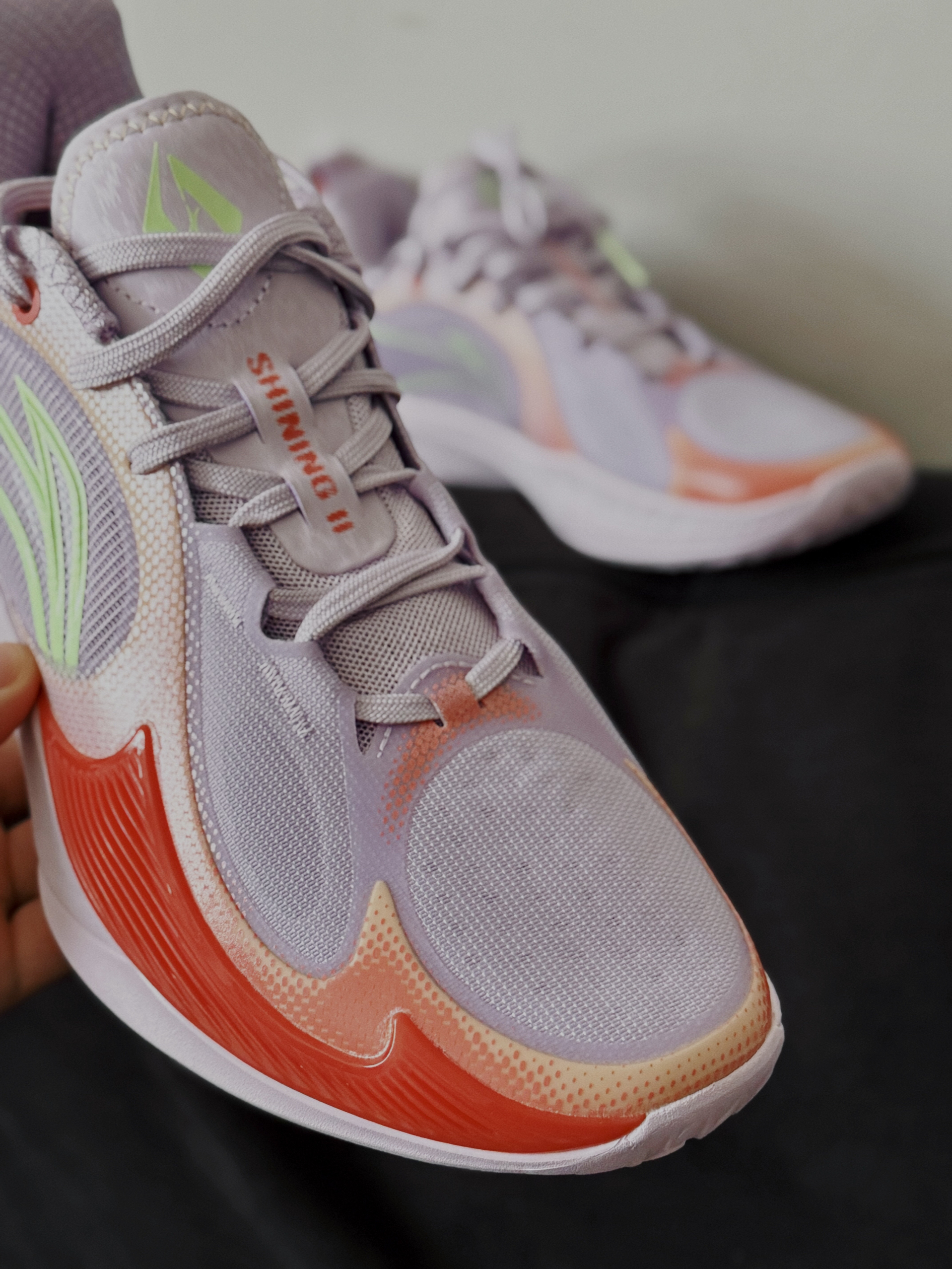 李宁闪凌2v2 这个配色我愿称之为小丑配色 很轻第一感觉就是速度型偏瘦脚 可太适合我了