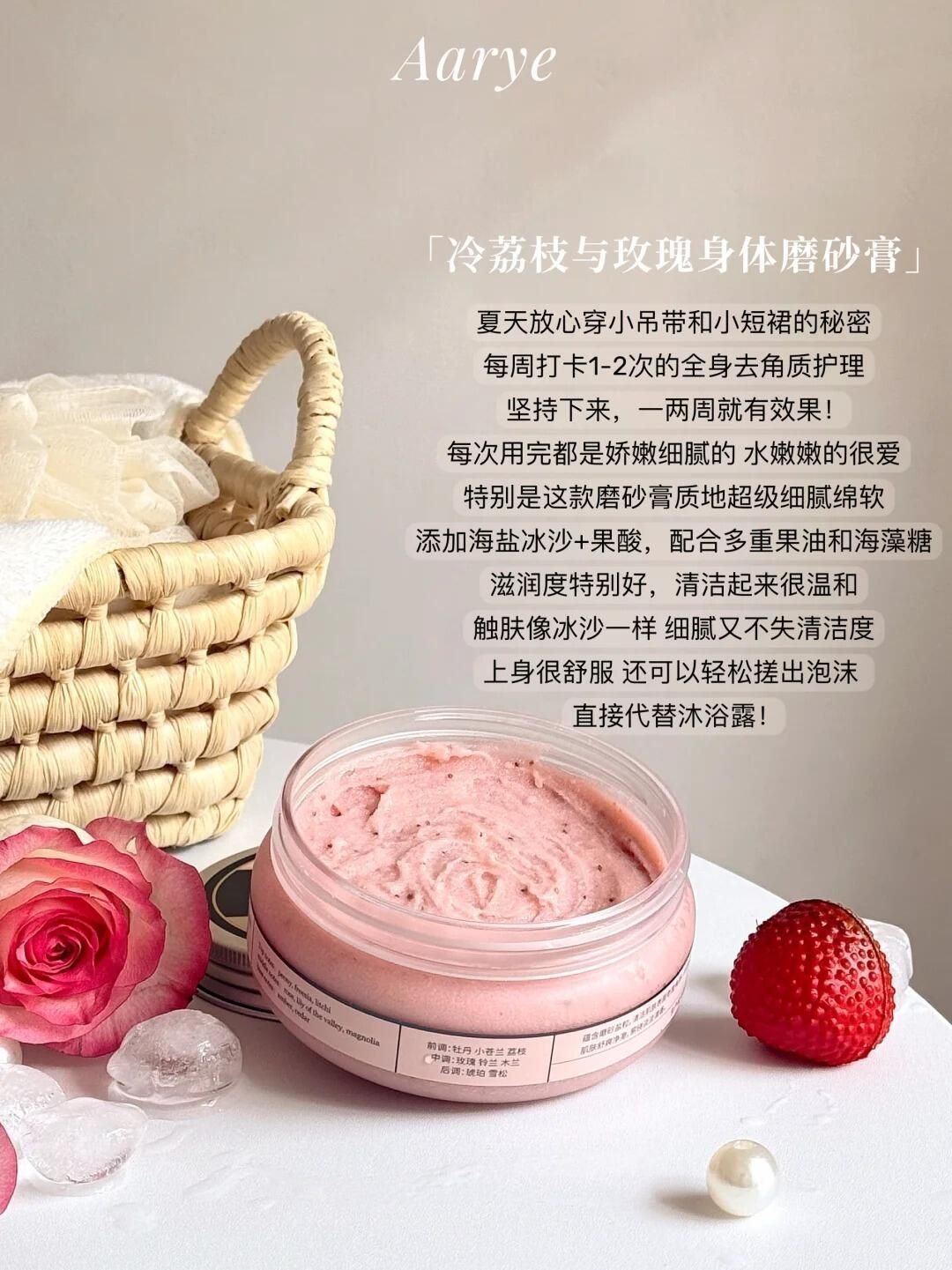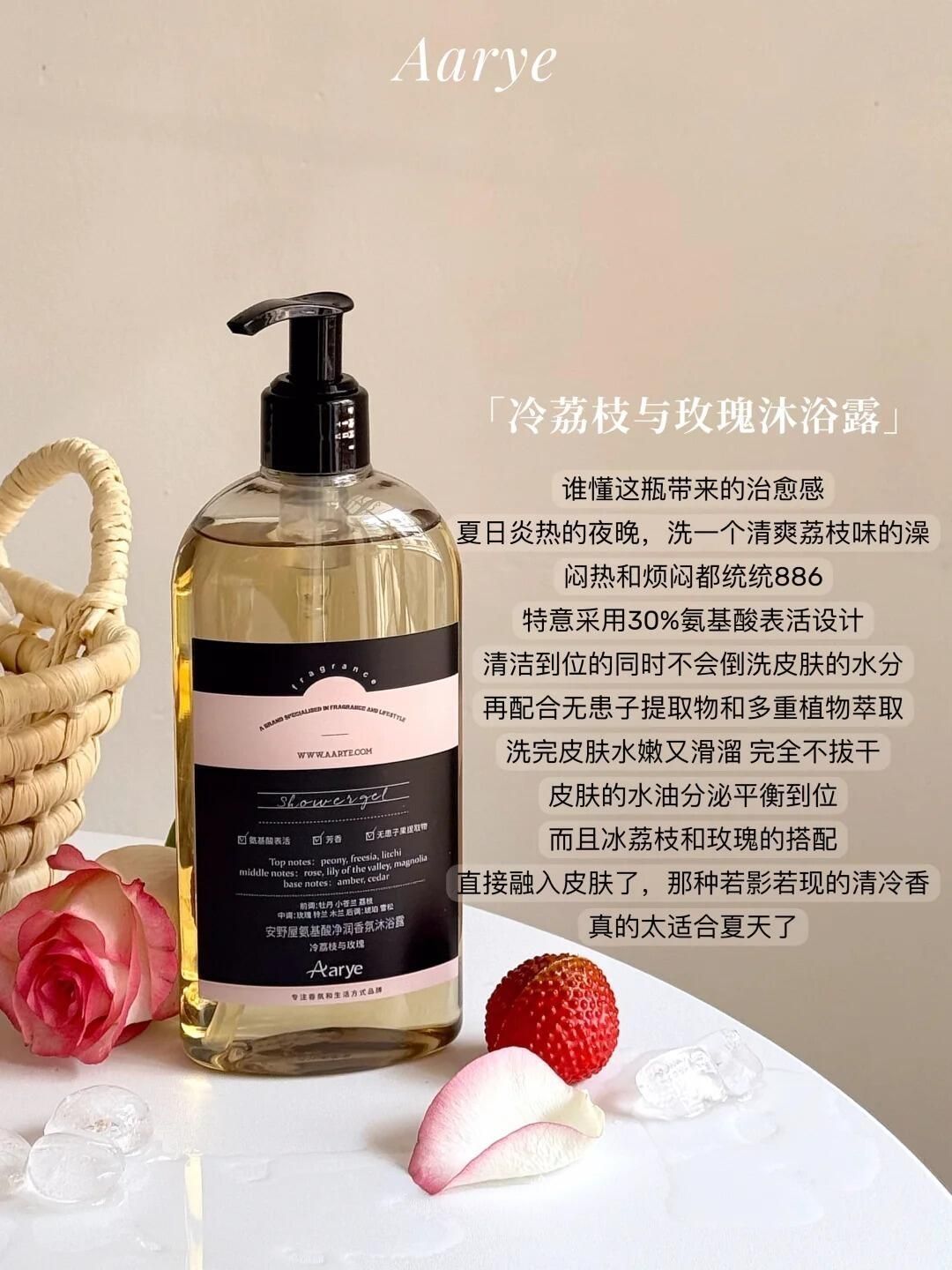 本篇笔记关联了Aarye/安野屋 氨基酸沐浴露 持久留香水润清爽 冷荔枝与玫瑰、Aarye/安野屋 修护干枯免蒸发膜 280ml防断发 【花香果香调】冷荔枝与玫瑰、安野屋 净柔沐浴香氛去角质磨砂膏 温和 二合一 冷荔枝与玫瑰等商品,为用户提供真实的使用体验和购买参考。
