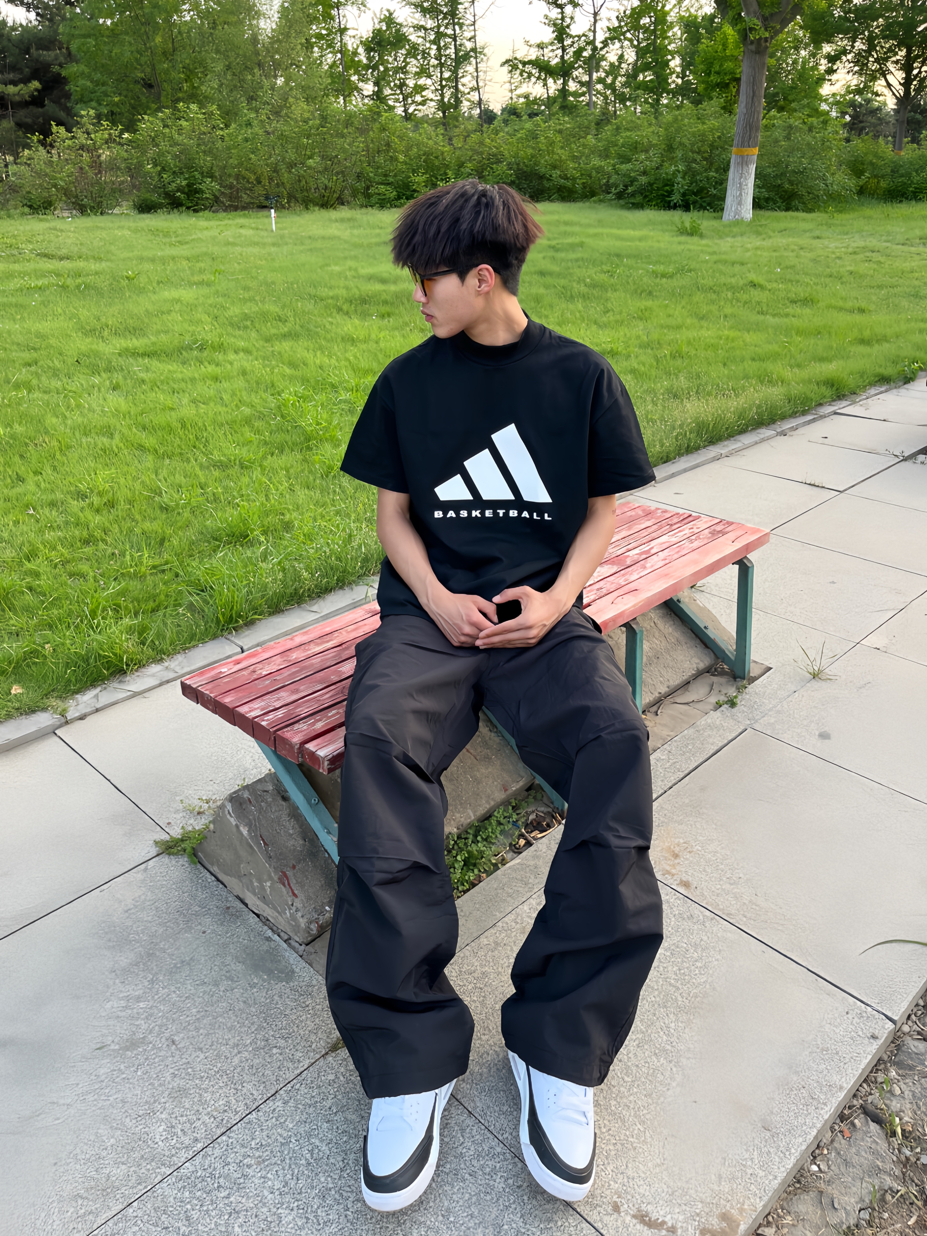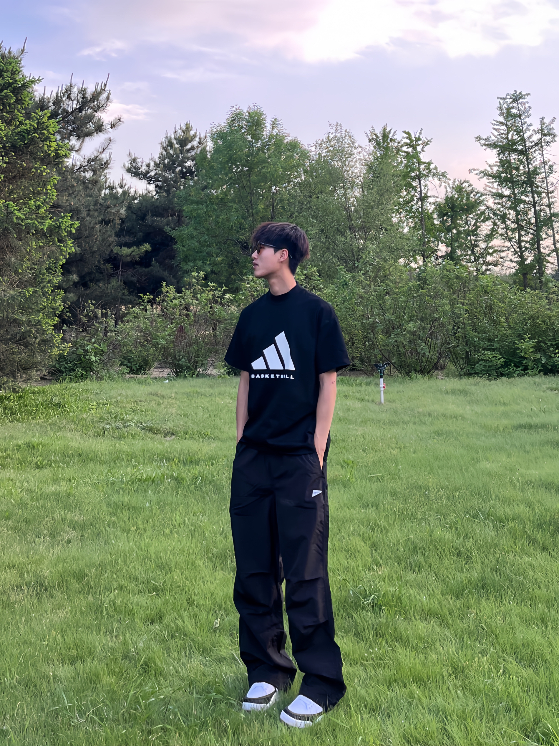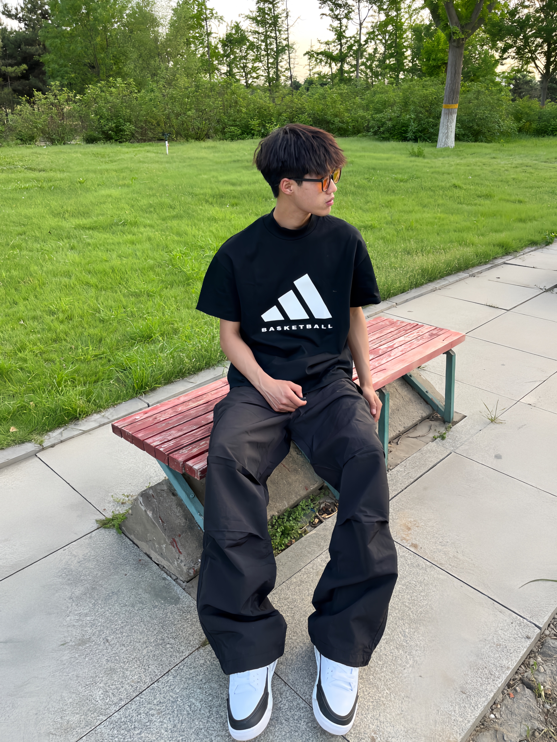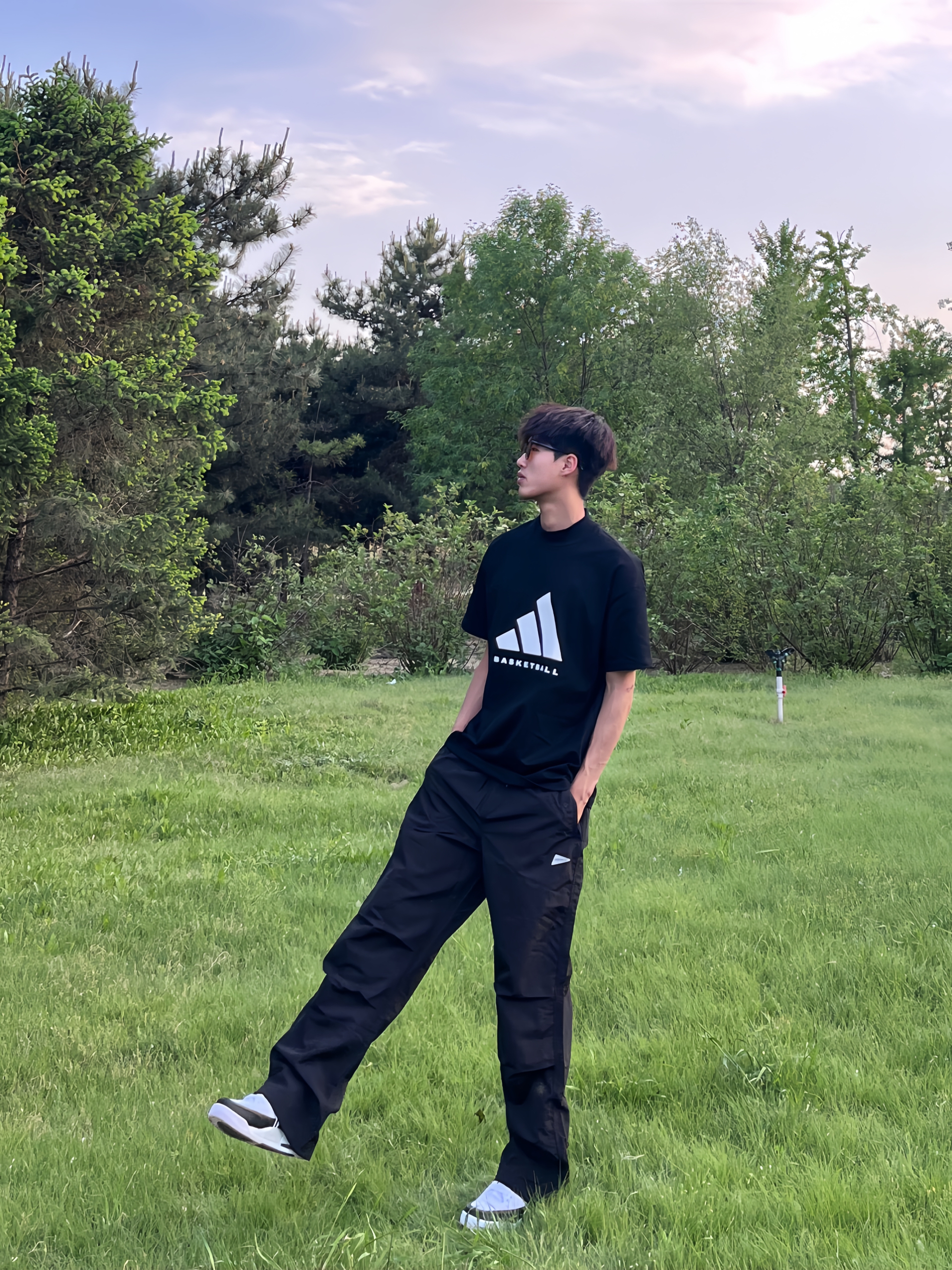 哈喽 大家好 今日份穿搭分享来了 上衣是一款阿迪短袖 搭配一条登山裤 再来一双藤原浩联名鞋子 真的很帅啊