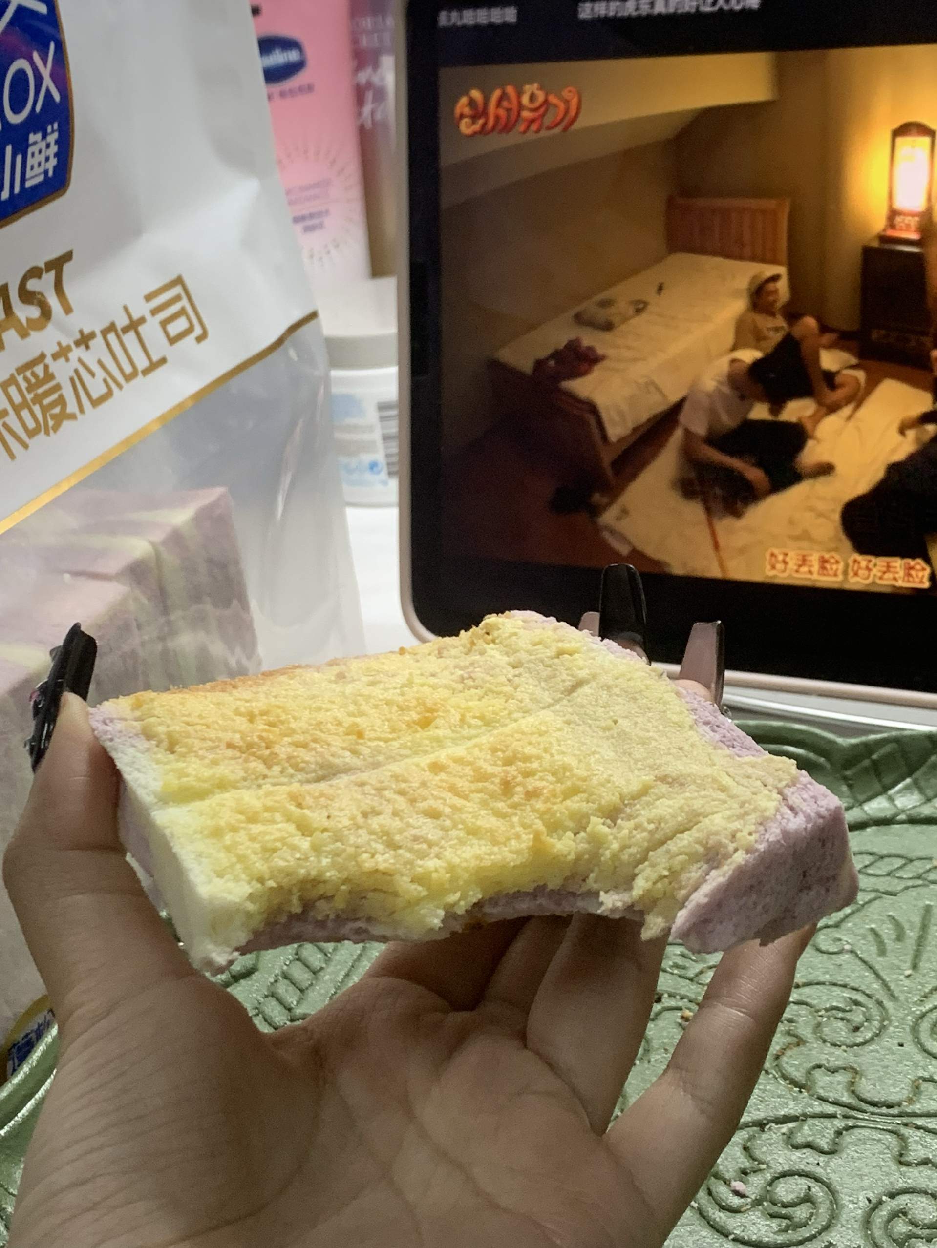 甘小鲜吐司(香芋味)➕福汎椰香奶酥 面包机烤两分钟,吃着吃着晕了一个人都不会有人发现 时光说 东北麻辣烫,一个人吃正正好,而且便宜便宜适合学生党在宿舍犯懒解馋 #宝藏早餐面包分享 #宿舍零食分享 #黏糊麻辣烫