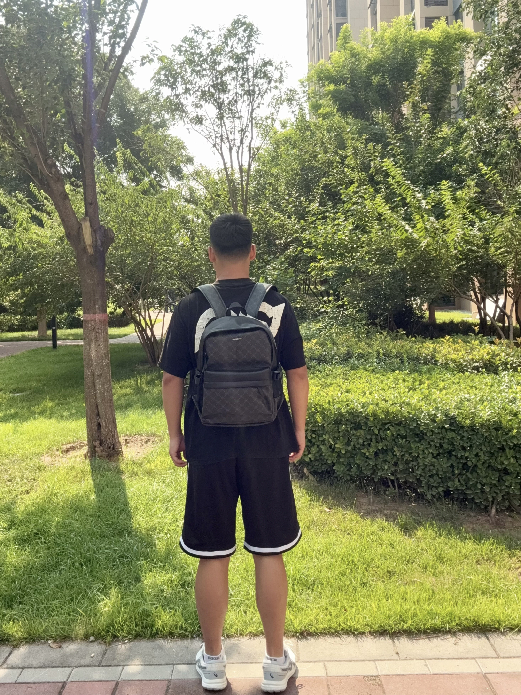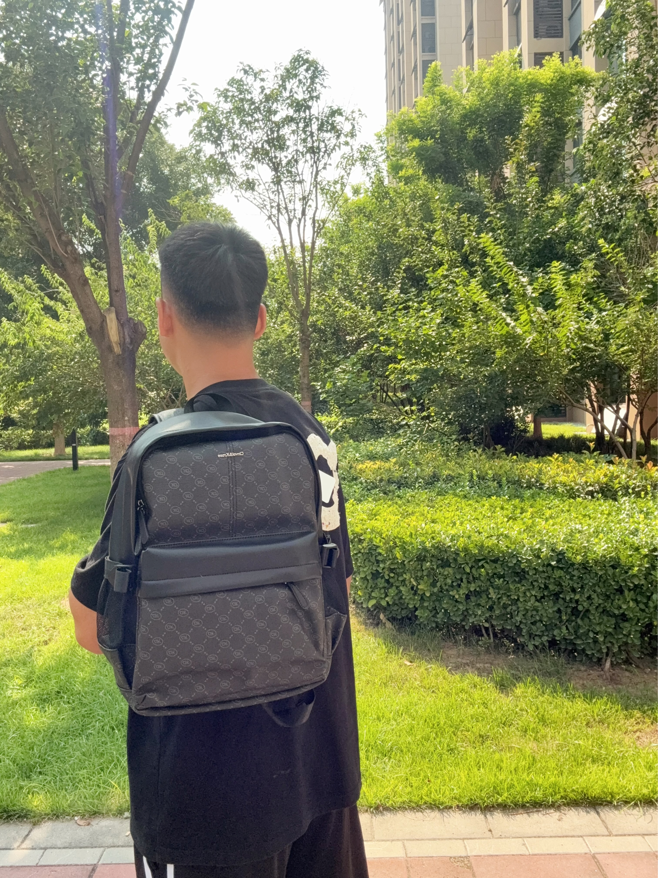 谁懂啊!新入的这款书包 简直长在我的审美点上✨ 经典老花图案 低调又有质感 容量超大 课本、电脑、杂物一股脑全塞下,通勤上学无压力💼 背带设计合理,背着不累肩,舒适度拉满~ 无论是搭配休闲装 还是稍微正式点的穿搭,都很适配,实用性与颜值双在线👏