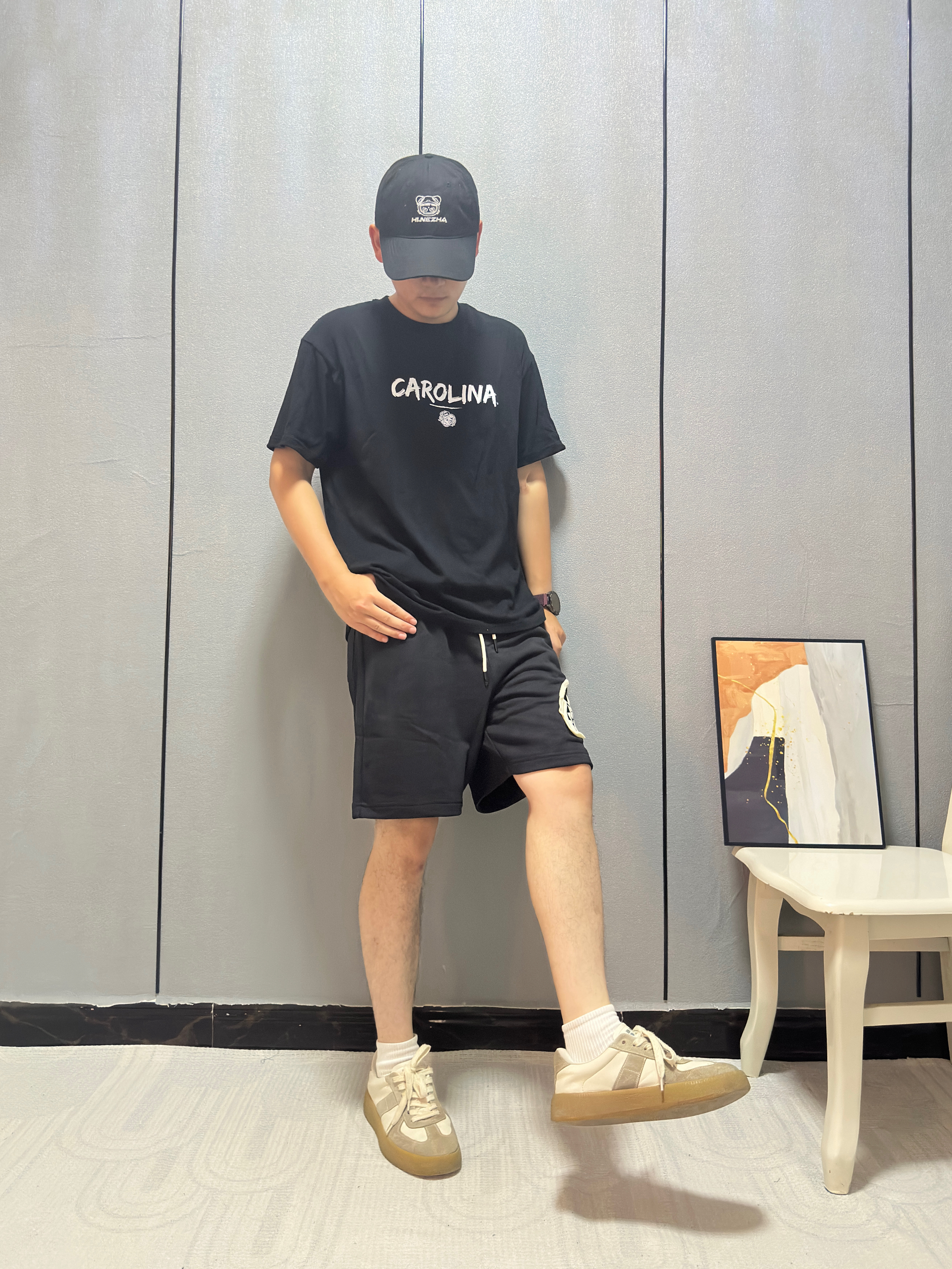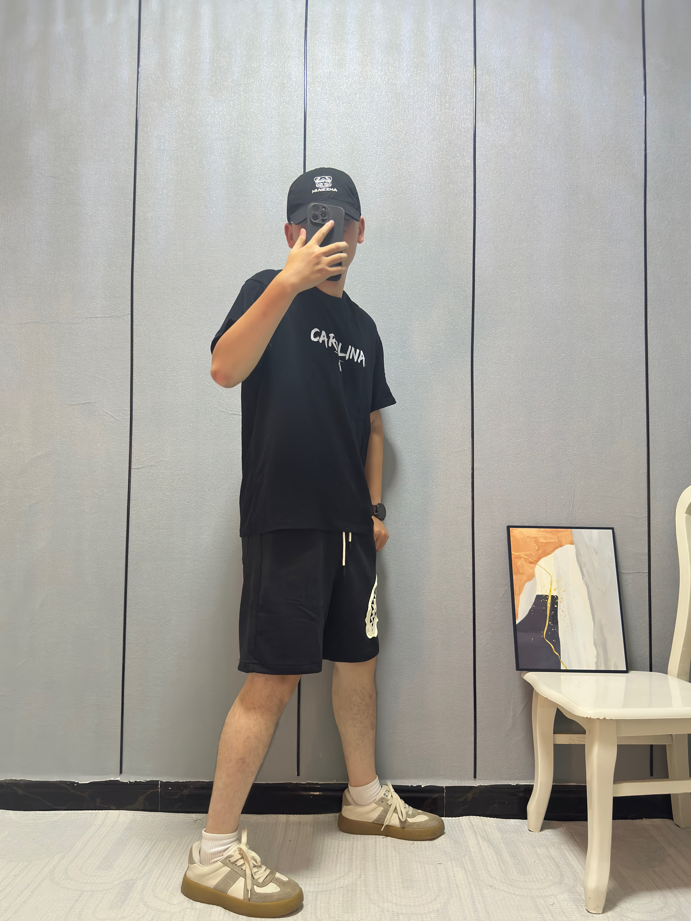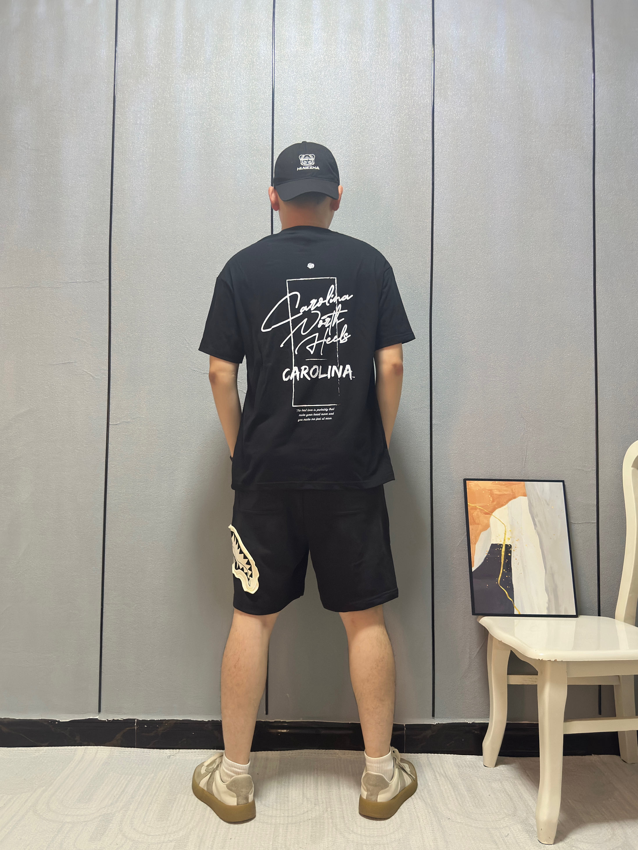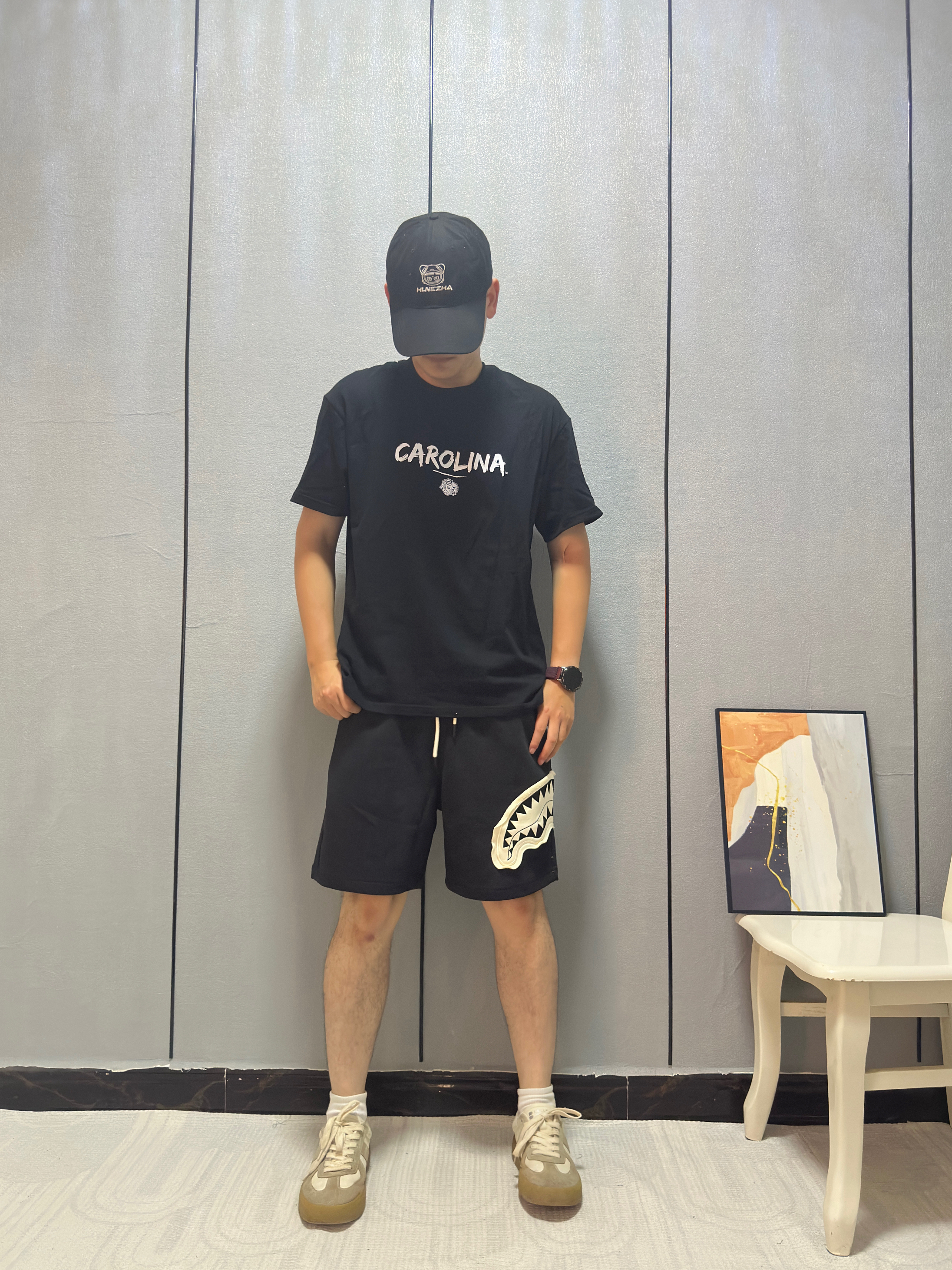 今天胸口鲨鱼🦈logo直接破局! 短裤挑了大面积贴布+撕边破坏设计 毛边啃得够野 🩳: SPRAYGROUND 搭配心机↓ ⚫️黑白对撞:logo白牙咬破沉闷 视觉瞬间跳出来 👟 踩双厚底黑拖鞋,增高不说 暗戳戳接住上衣底色 高温天这么穿——布料少但细节炸 #SPRAYGROUND