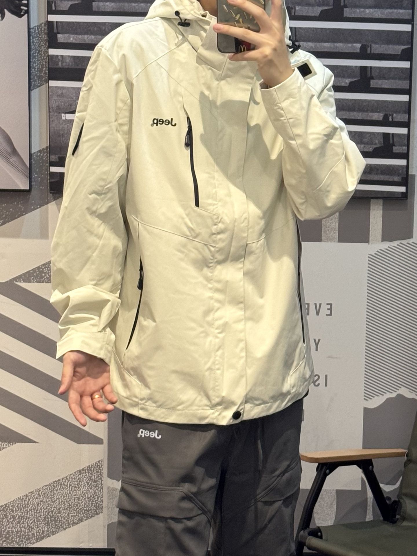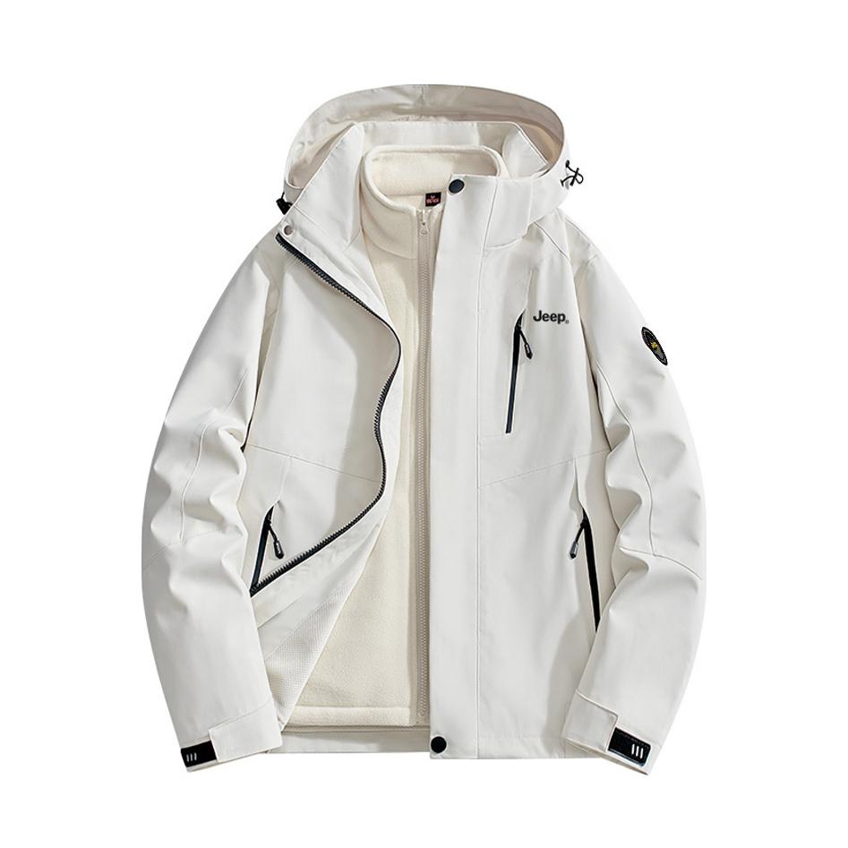 本篇笔记关联了Jeep/吉普 三合一摇粒绒可拆卸抓绒内胆防寒防风防泼水拼接连帽加绒风壳冲锋衣 P843MWJ2082 象牙白等商品,为用户提供真实的使用体验和购买参考。