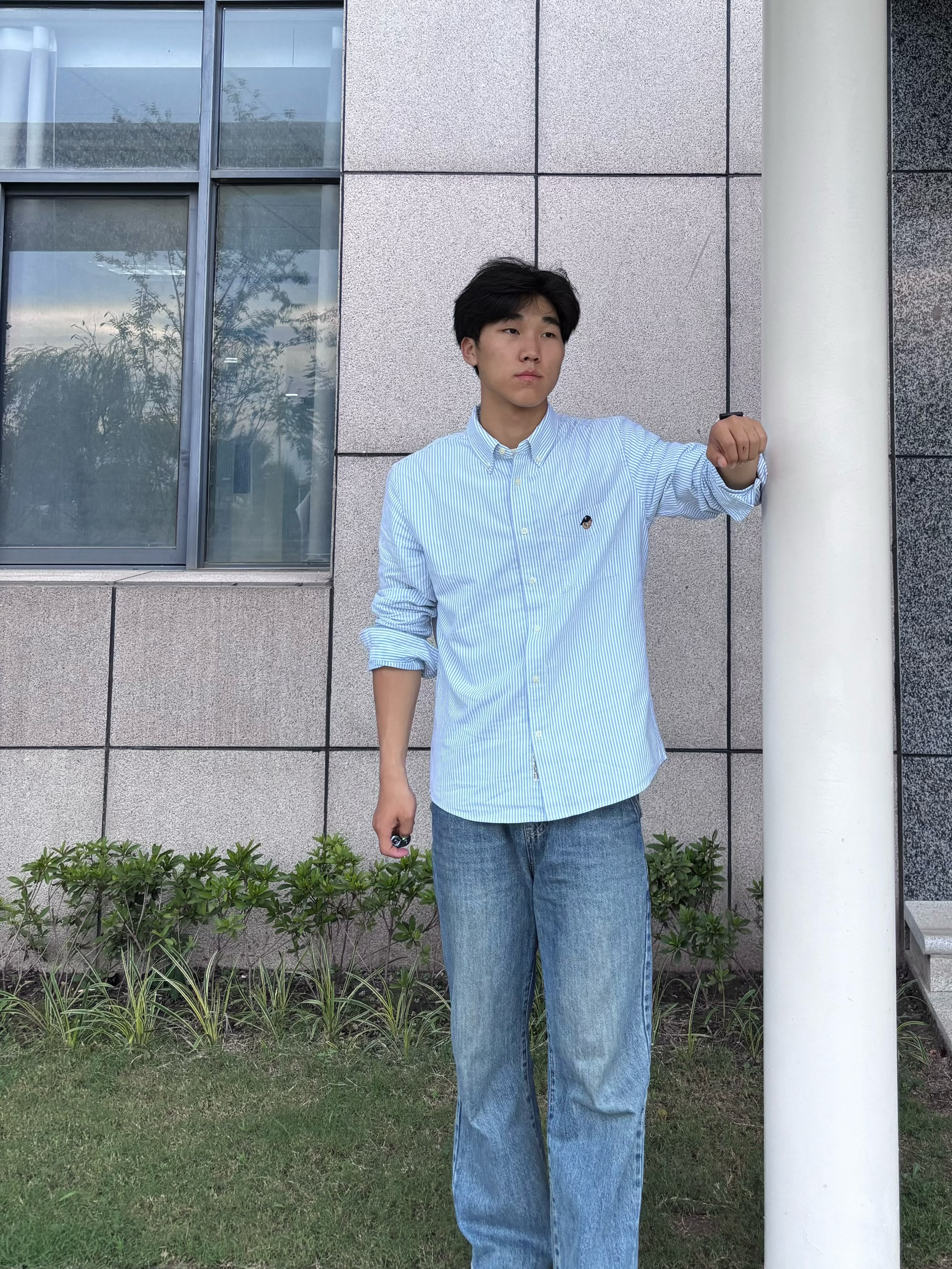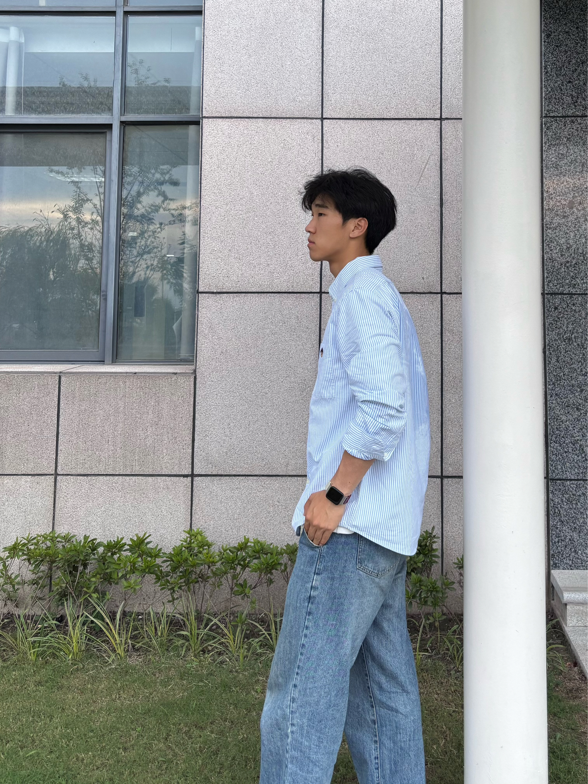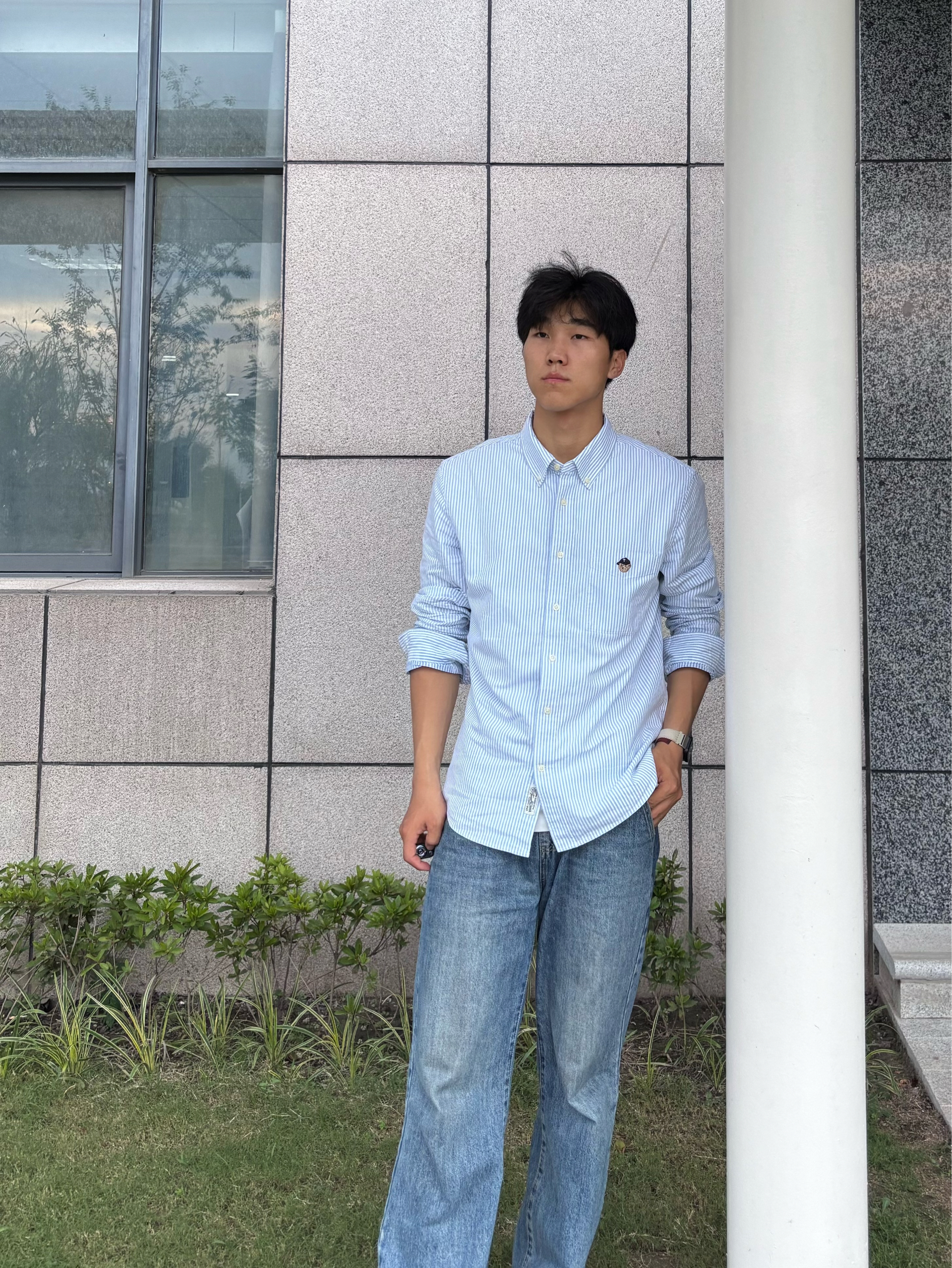浅蓝白条纹清爽又治愈 面料是透气棉感 夏天穿不闷汗,春秋当内搭也很绝 胸前小刺绣点缀,简约不单调 宽松版型对身材包容度高 日常通勤、校园闲逛都适配 尺寸参考:183cm 75kg xl码