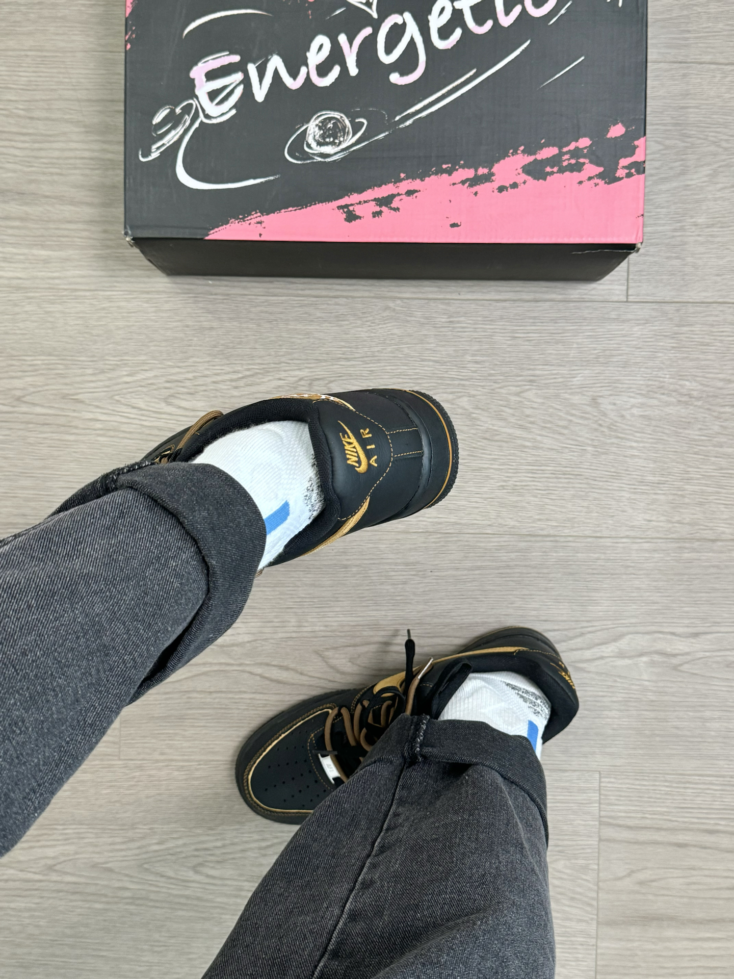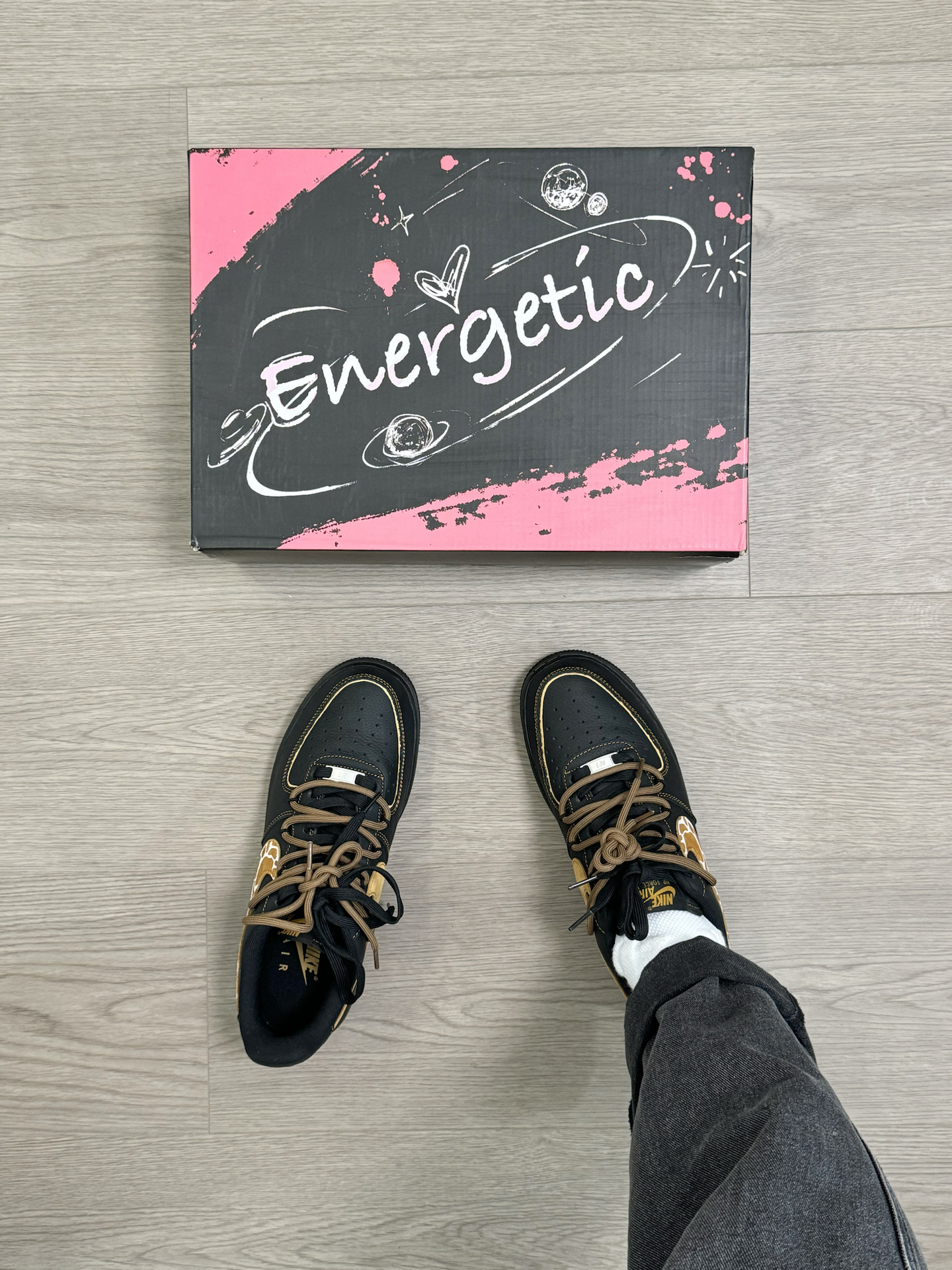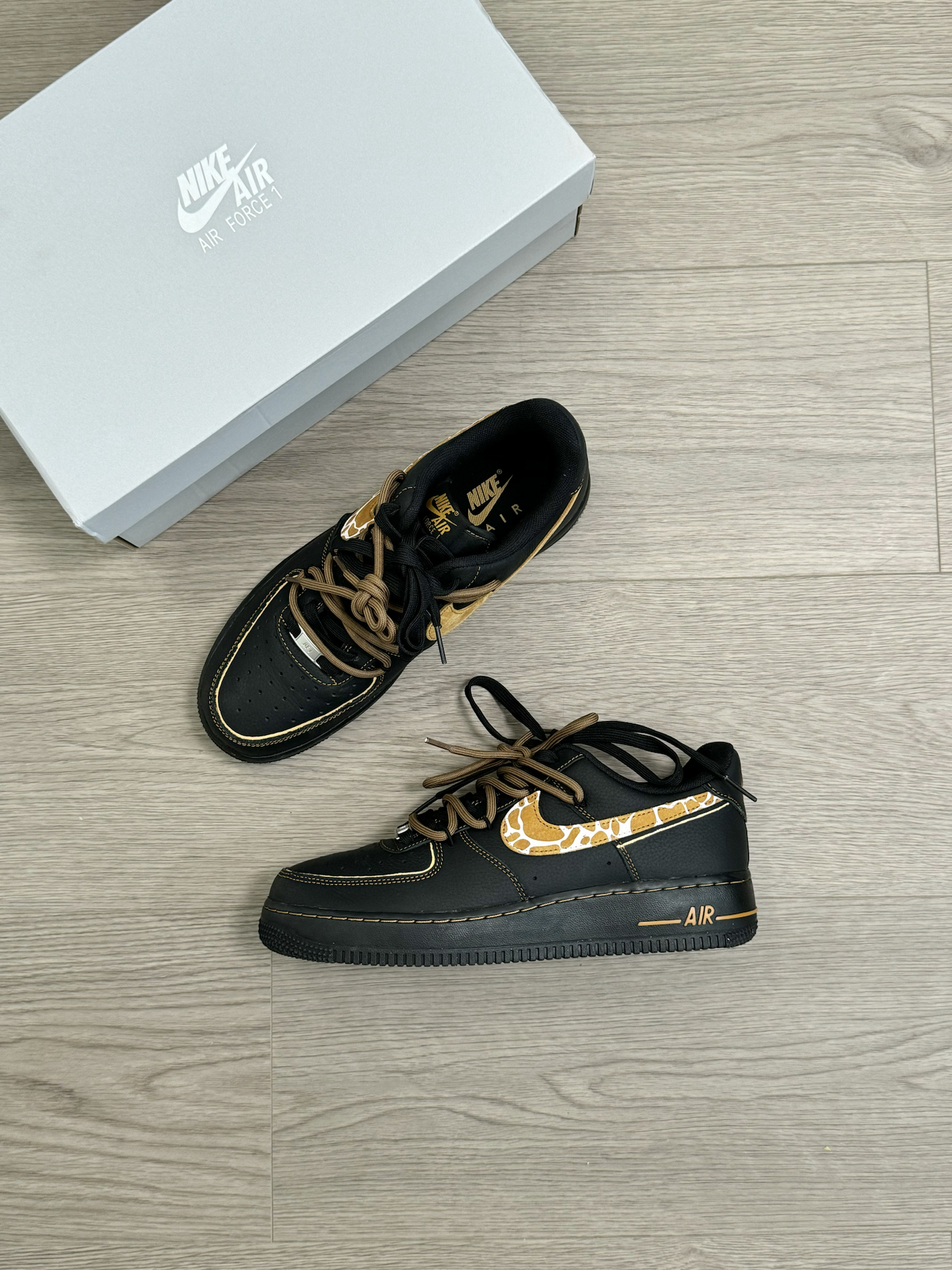 喜欢AF1的鞋型 又不想千篇一律!?给你们分享一双好看好搭 同时又很有个性的AF1板鞋~ 黑橙的配色 加上一点豹纹点缀 搭配双鞋带的设计 帅是真蛮帅的 上脚我很喜欢搭配一些牛仔裤 不怎么不挑风格 就是尺码方面 脚特别瘦的 建议适当选小半码… #可以定制的好礼物 #拿捏复古松弛感 #给度假计划配双鞋 #长期主义鞋子 #开箱心动好鞋