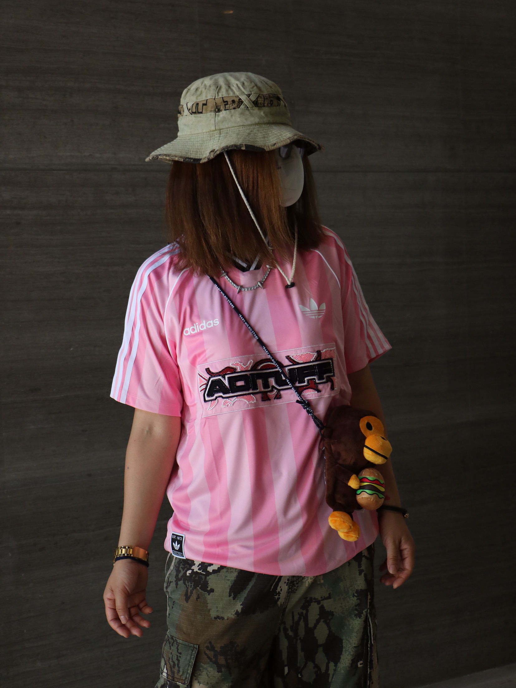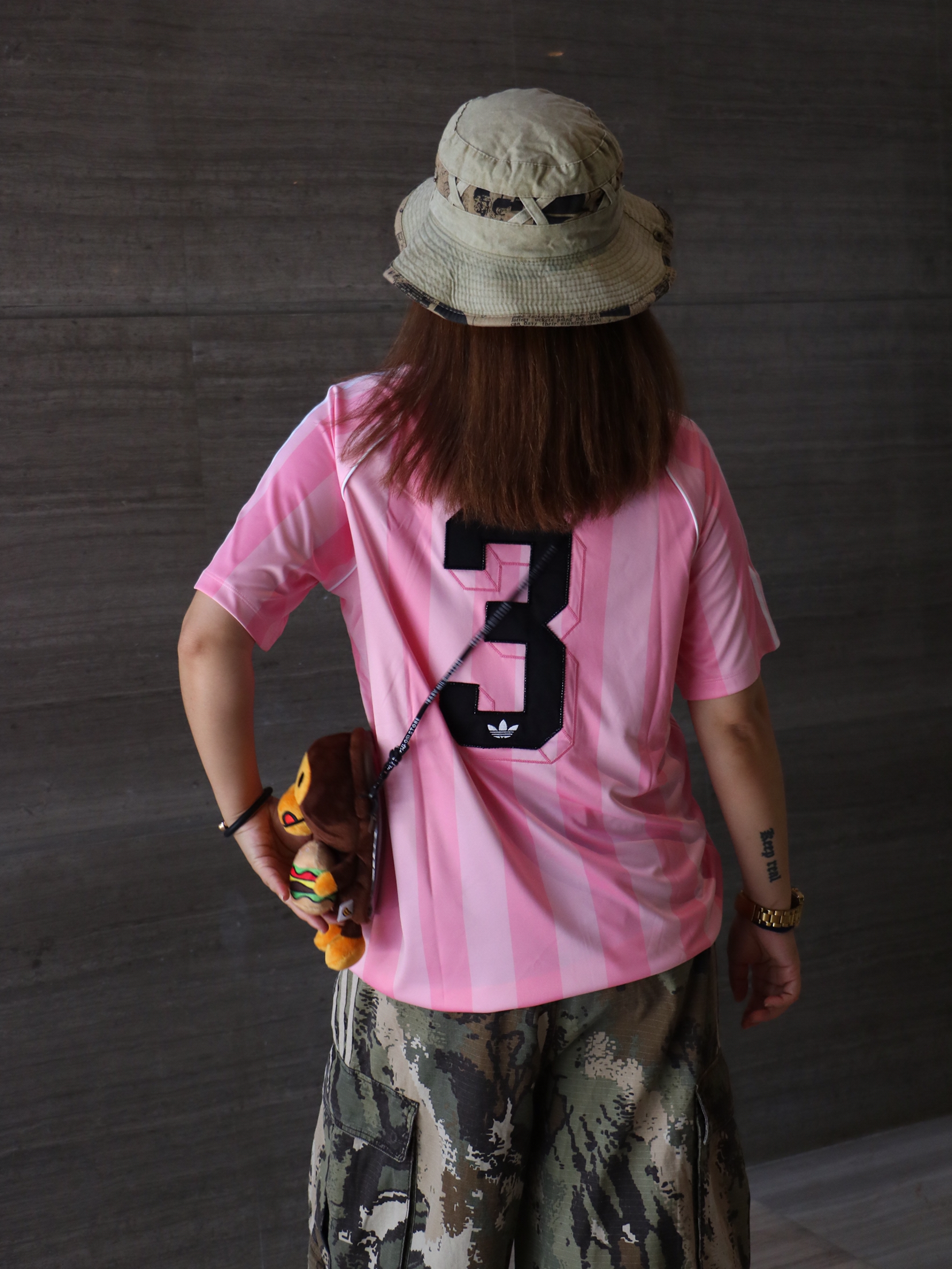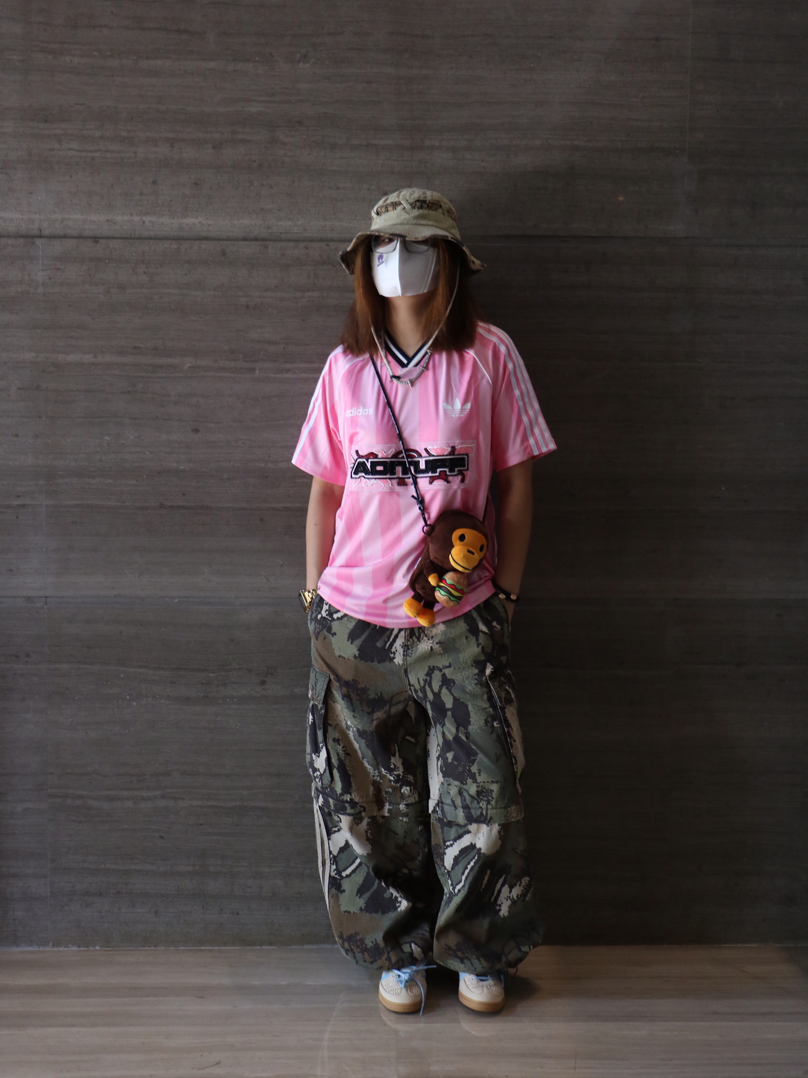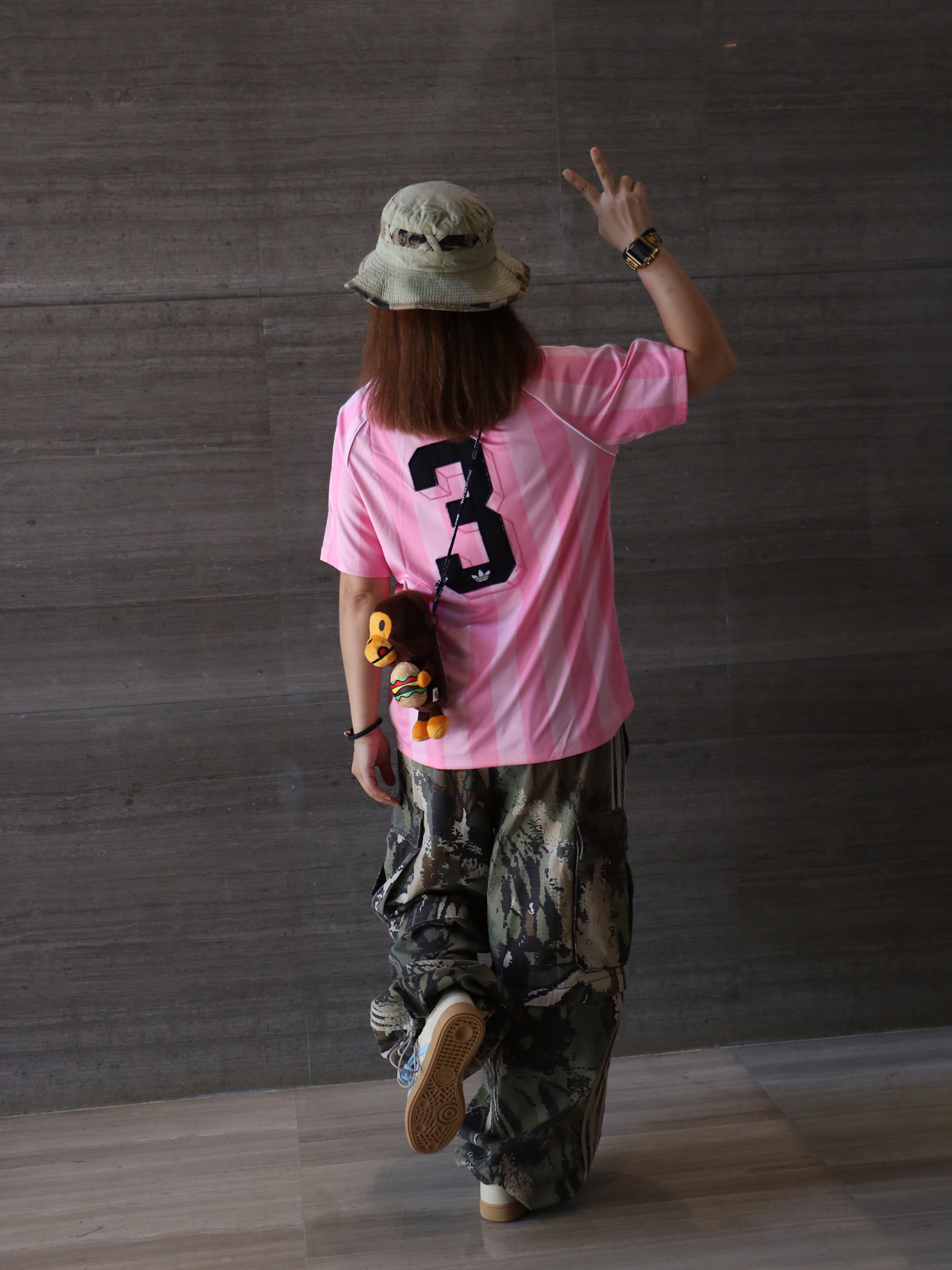夏日休闲出游穿搭分享 上衣: 阿迪达斯 字母 印花logo长袖T恤 下装:迷彩直筒多口袋休闲裤 鞋子:阿迪达斯 薄底鞋