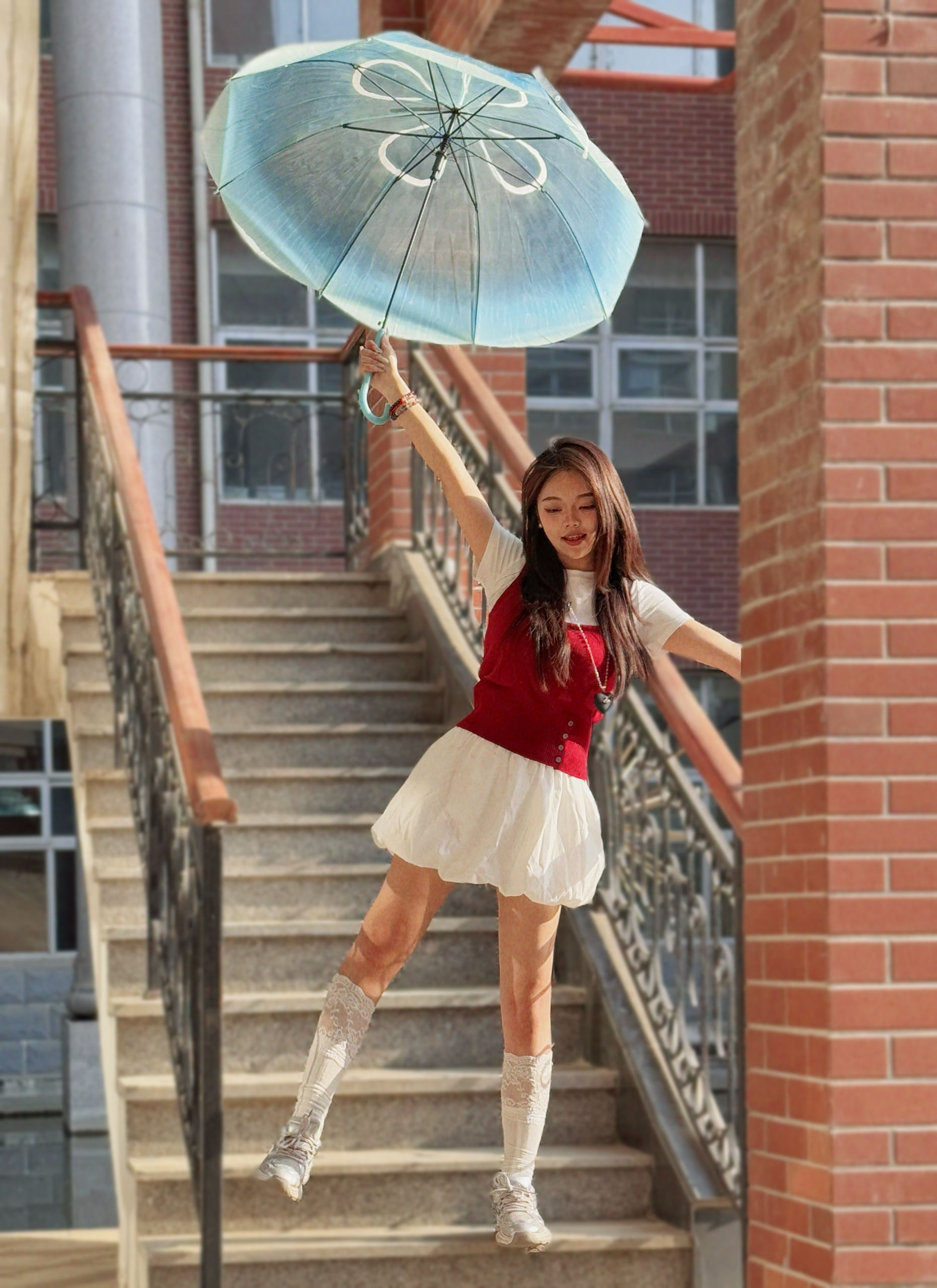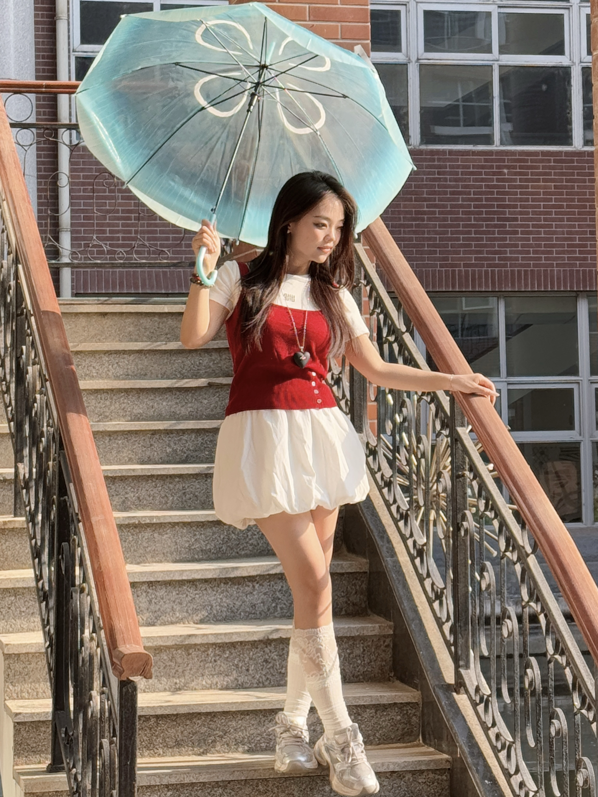 假两件上衣➕花苞短裙 巨有生命力的一套! 花苞裙长度刚刚好 下摆有松紧 很好穿! 而且上衣的面料不是那种容易皱的 而且整体很有设计感 版型也不是那种松垮的 虽然是假两件但是一点都不会热 长度刚刚好小个子姐妹可冲!
