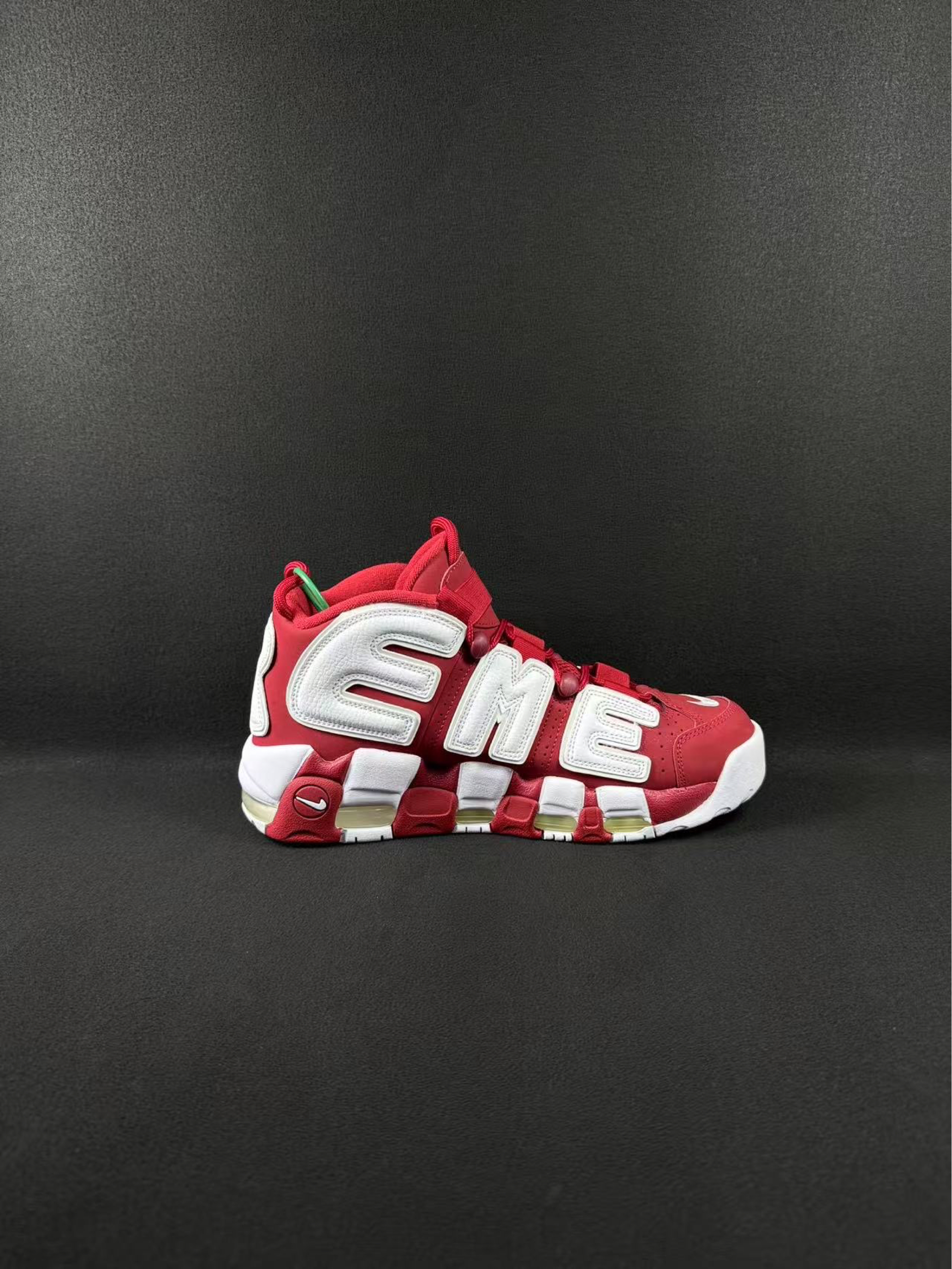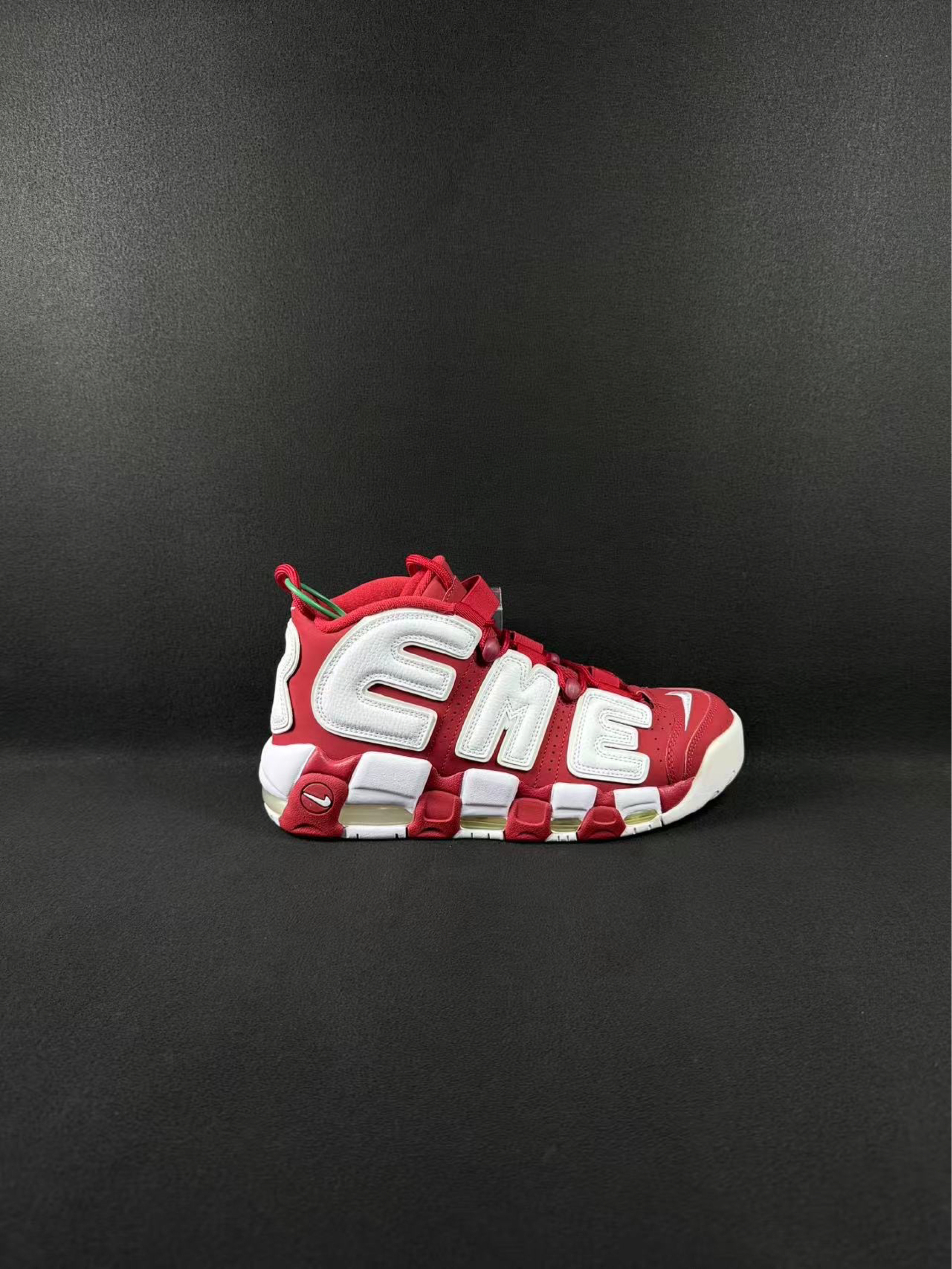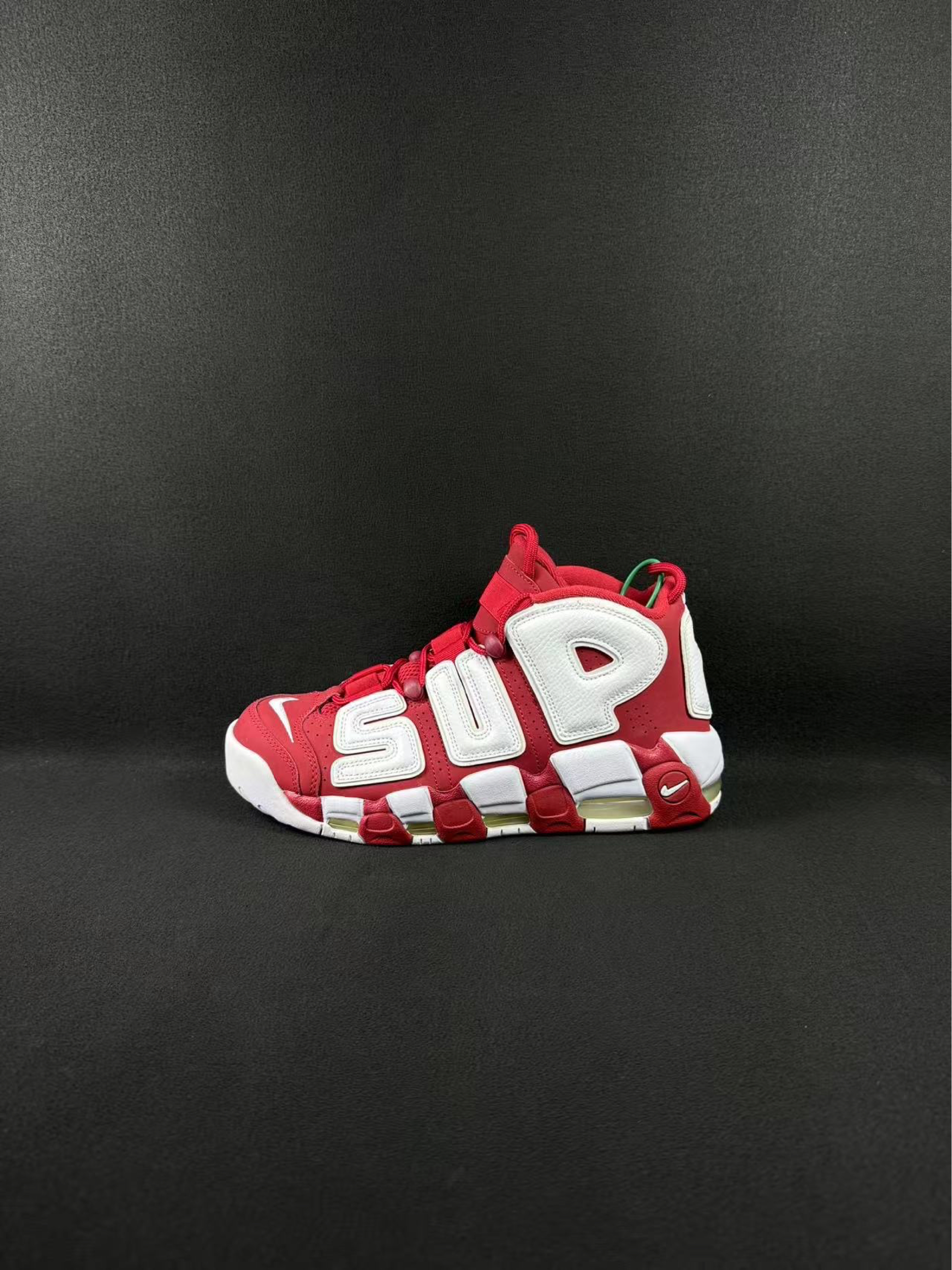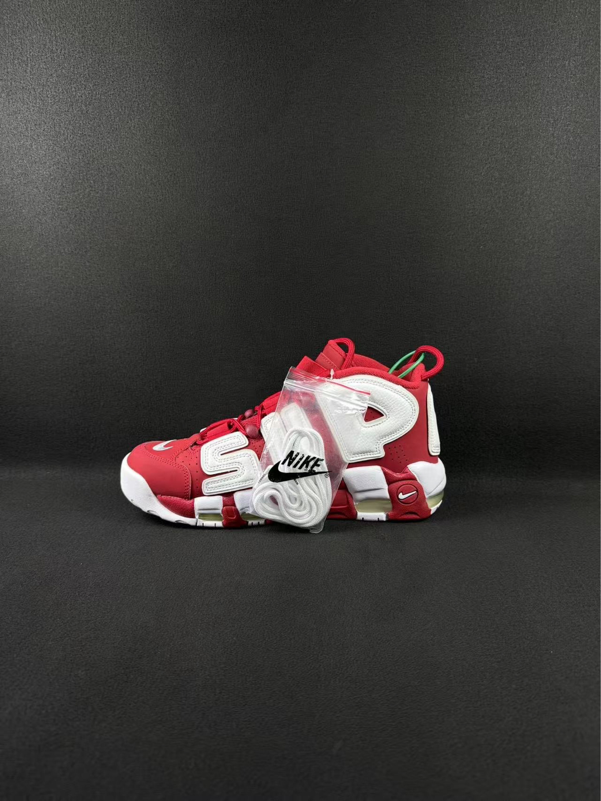 Supreme x Nike Air More Uptempo Red 联名红白皮蓬,Nike 与 Supreme 曾共同打造出许多经典的联名鞋款。今天这双鞋是我认为在双方的联名作品中经典代表作之一,就是这双 Supreme 和 Nike Air More Uptempo 也就是我们俗称的大AIR的联名,红色经典,怎能不爱!