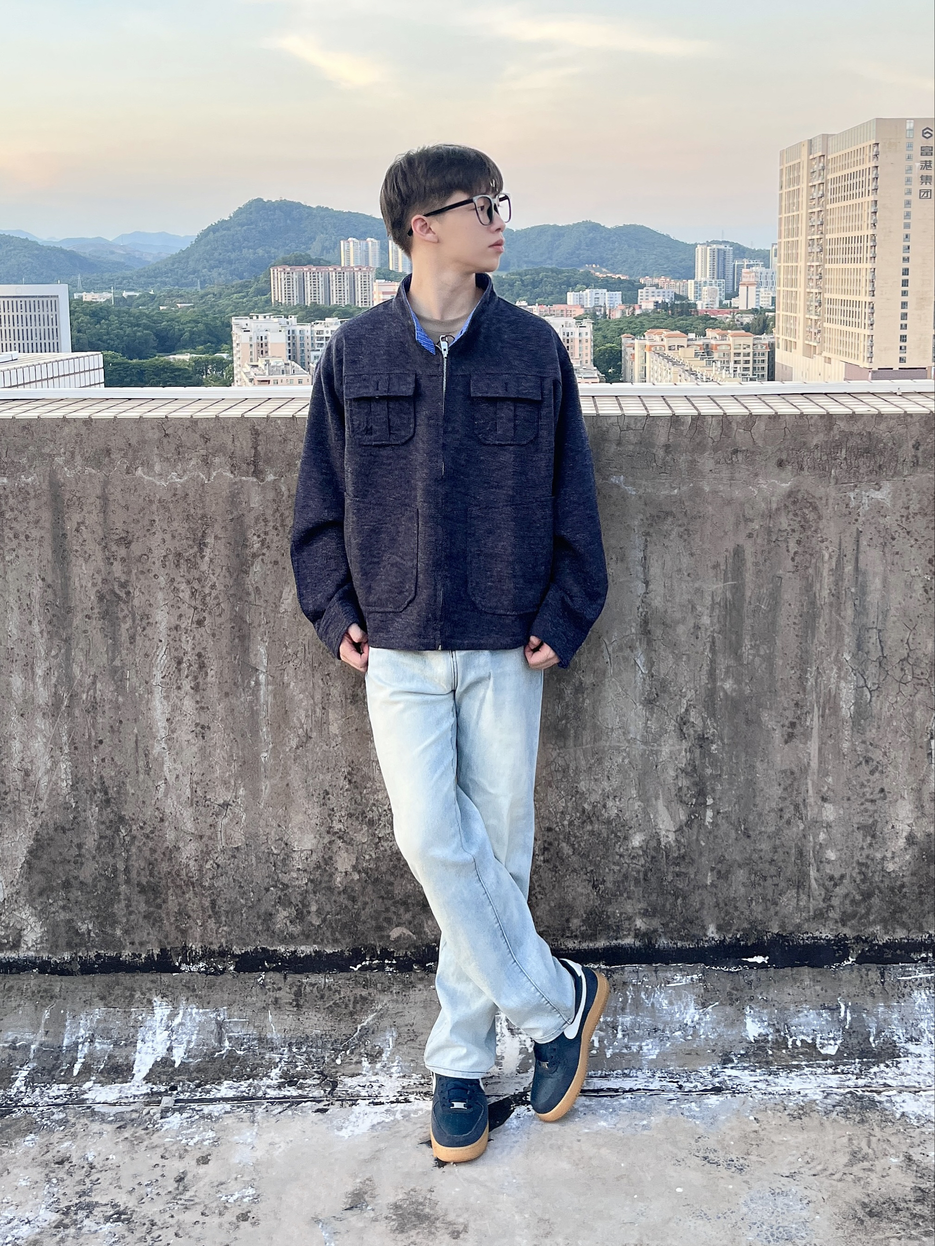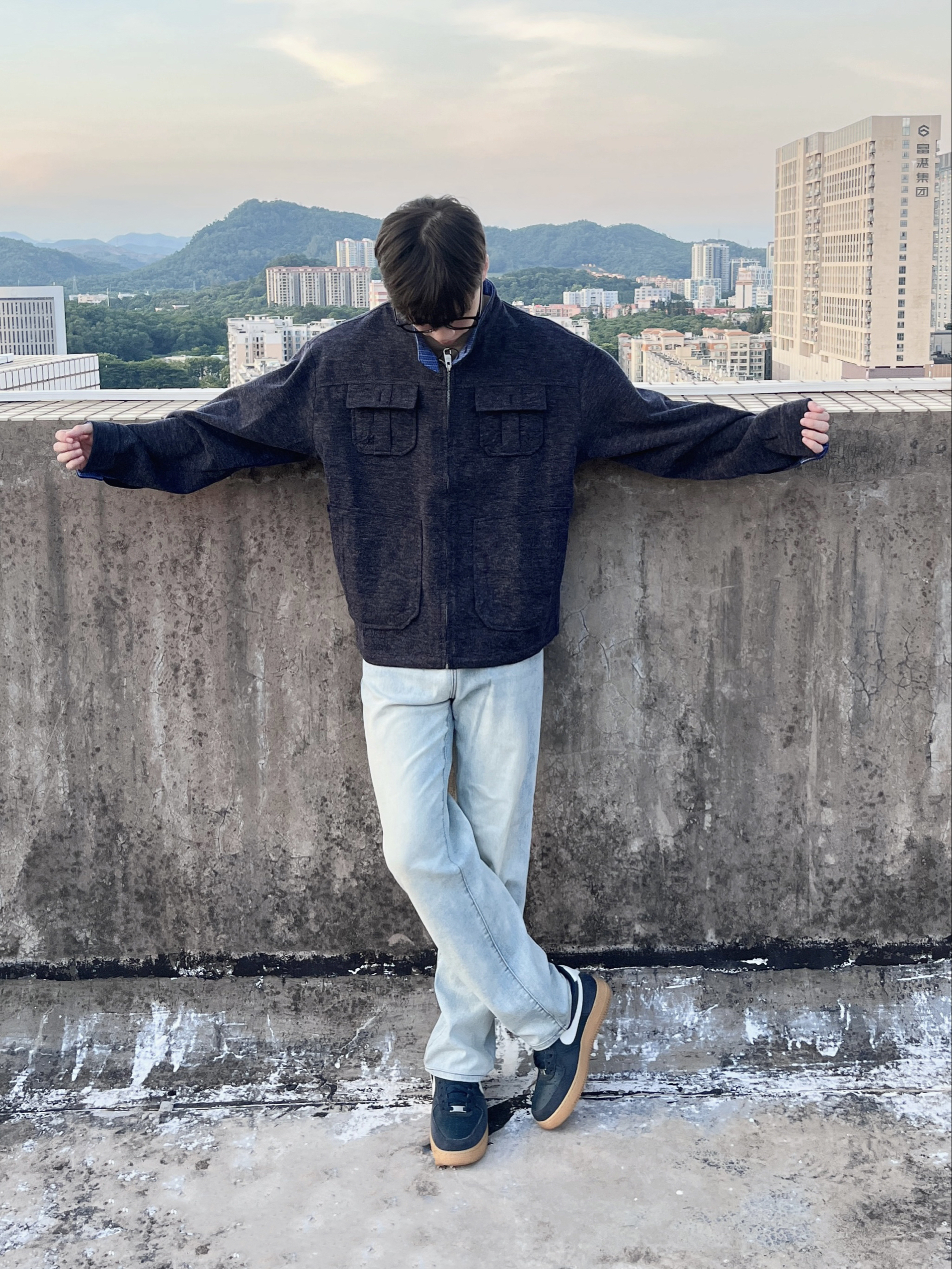 暗夜蓝老钱风外套👔搭配黄泥色牛仔裤👖 也太有感觉了吧 整体百搭舒适🔥