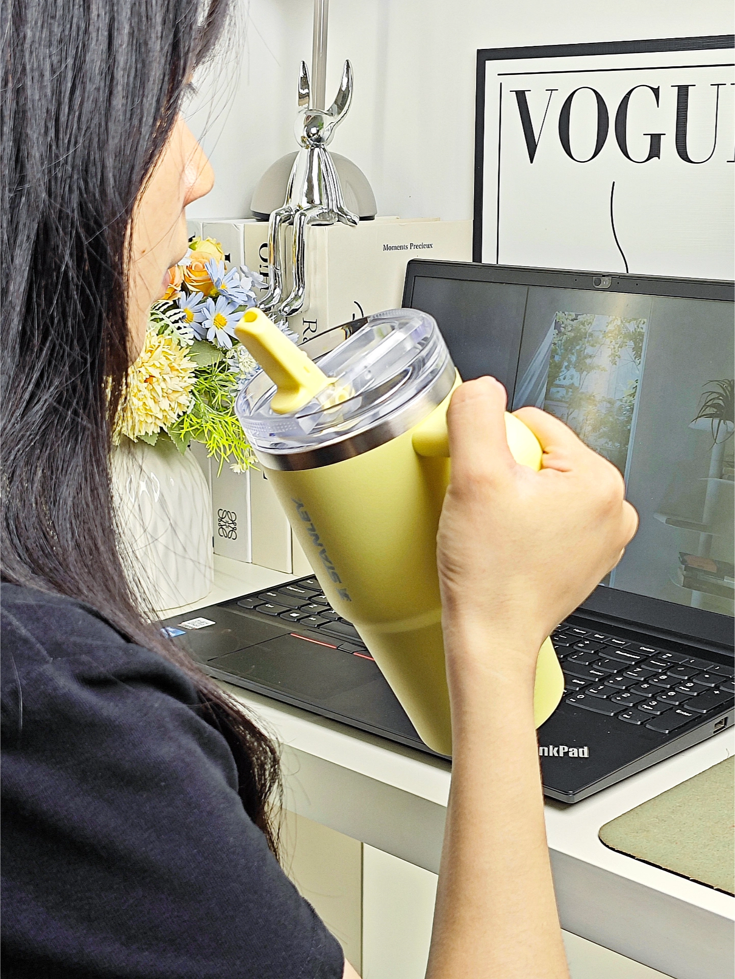 介个柠檬黄的杯子真的hin戳我💛 造型很简洁,591ml容量刚刚好 一杯能喝大半天,放入冰块保冷半天不会化🧊 折叠吸管口的设计好贴心,折起来可以防漏,外出放包包里刚刚好~ 夏天用它喝点冰饮啥的,也太幸福啦!