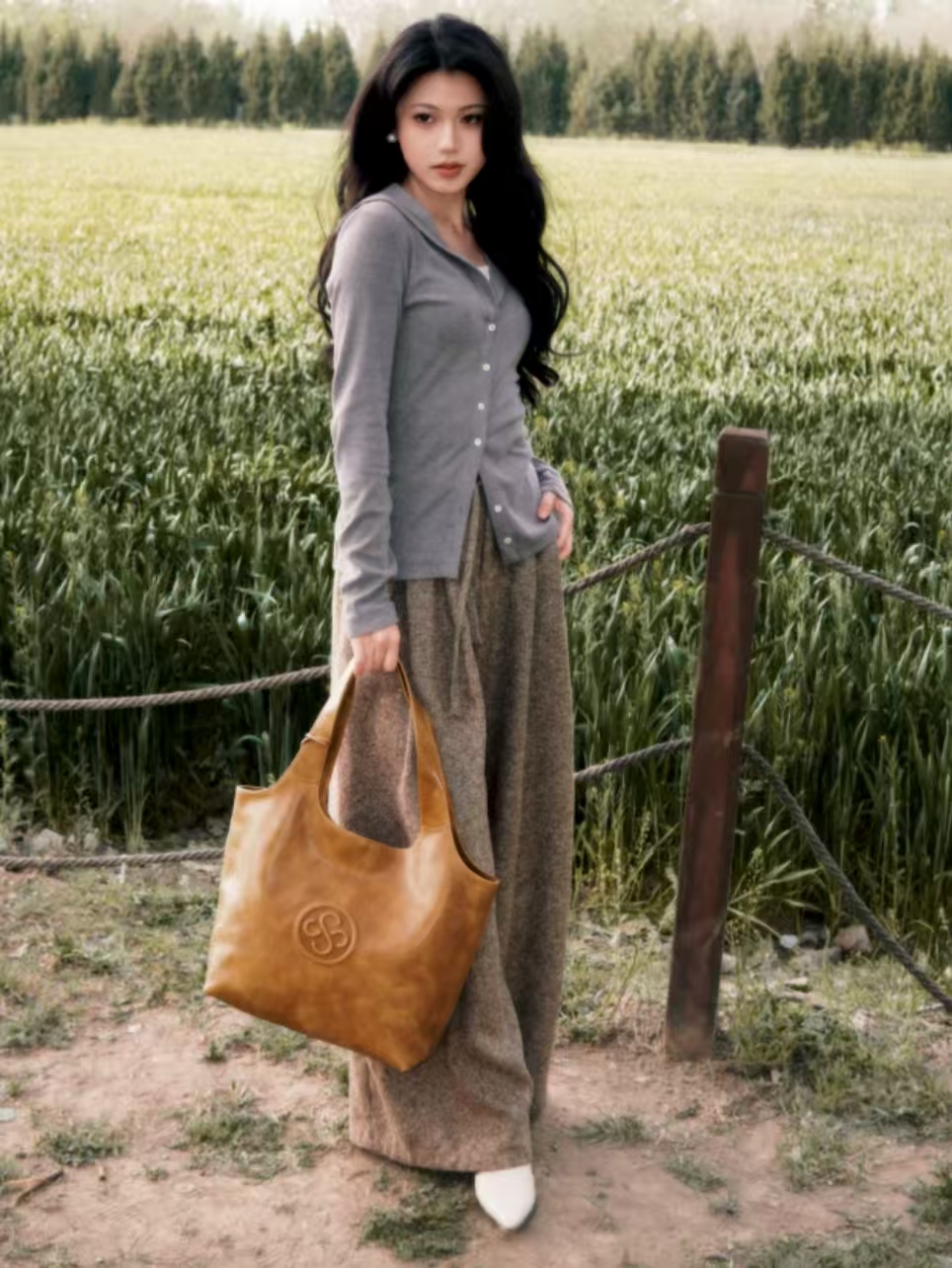找到一个心仪的包包 植鞣牛皮材质 散发经典细腻的质感 让时髦看上去更松弛 散发出自然洒脱的美感 经典简洁的包身设计 随性复古