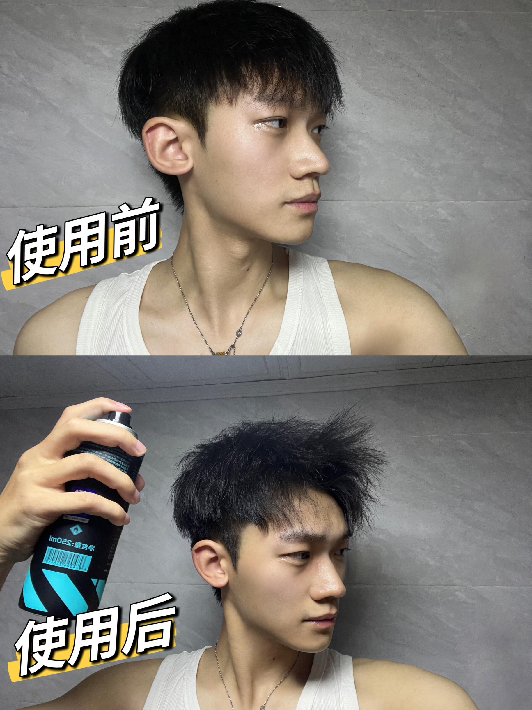 相信很多男生的头发和我一样都是细软塌,不收拾的时候看起来贴头皮没精神,我一直在用这个海洋至尊的定型发泥和定型喷雾,每次用完对象都说我像换了一个人! 发泥是自然哑光,不会有油腻感也没有白屑,很清爽,质地柔软,而且是我超喜欢的木质香,还能做到蓬松控油! 捏到有层次感就用同款的定型喷雾喷一圈再局部喷刺就行了,喷完基本是速干,持久定型,从早到晚都不回塌,简单易上手! 快叫你的对象也一起学起来~