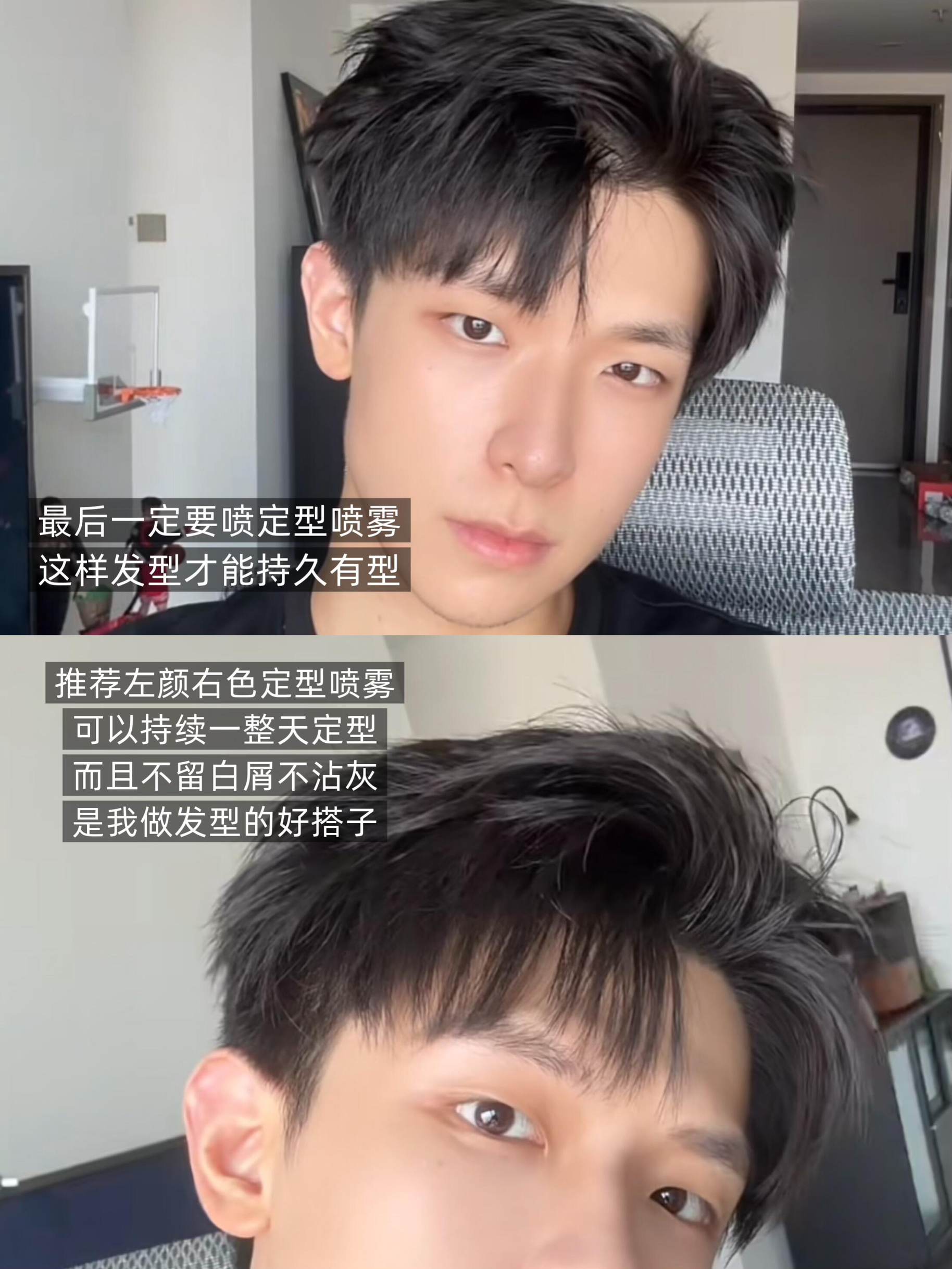 知道的是做发型 不知道的还以为前面那个被你。。。 这款中分锅盖还挺好抓的 不到五分钟就能搞定了 但是最后一定要记得喷定型喷雾 细软塌懂得都懂 左颜右色这款定型喷雾的定型效果不错 可以坚持大半天 而且很自然,不会留白屑什么的 男人做好发型能把颜值提升几个档次了 全都学起来