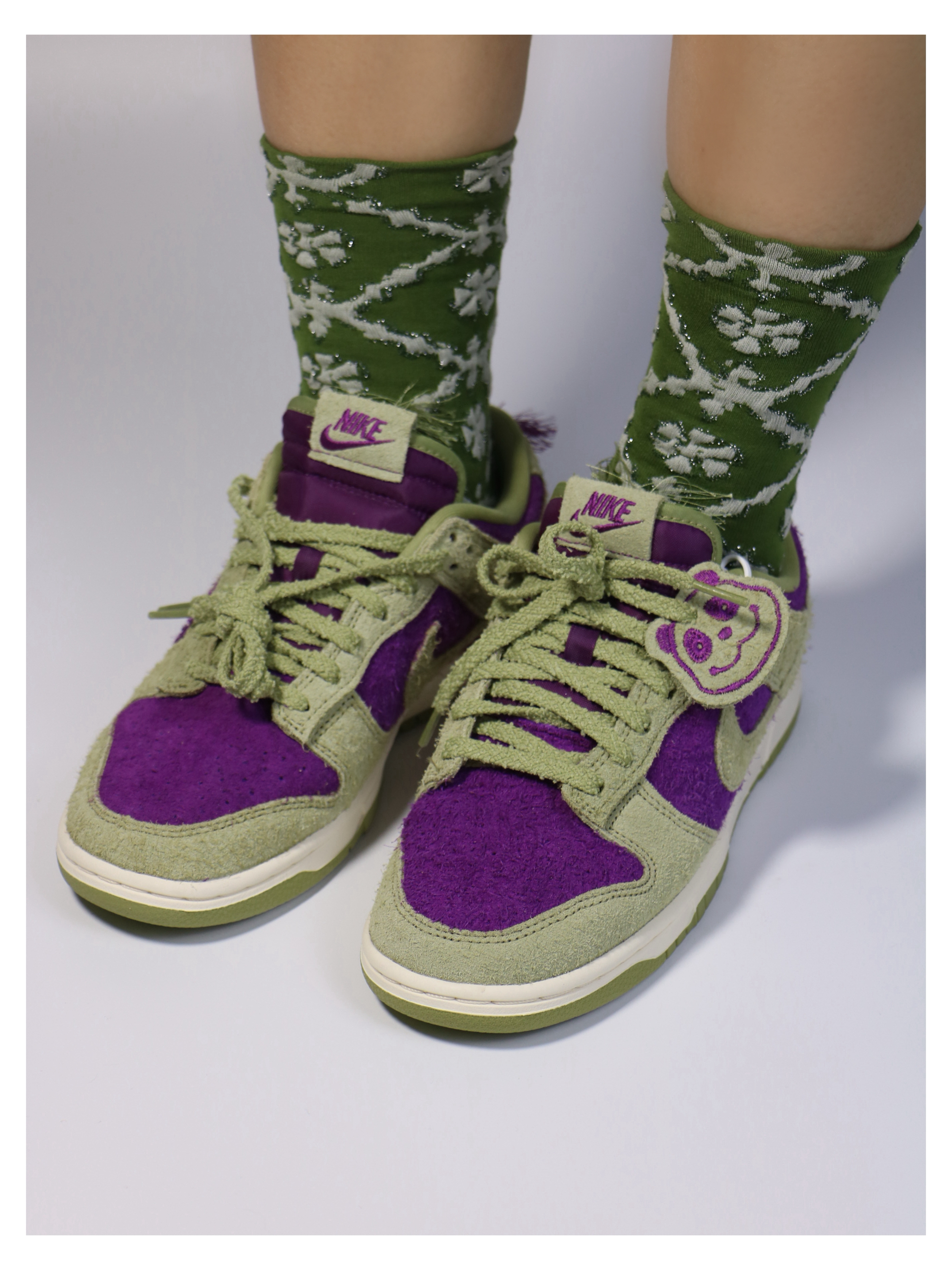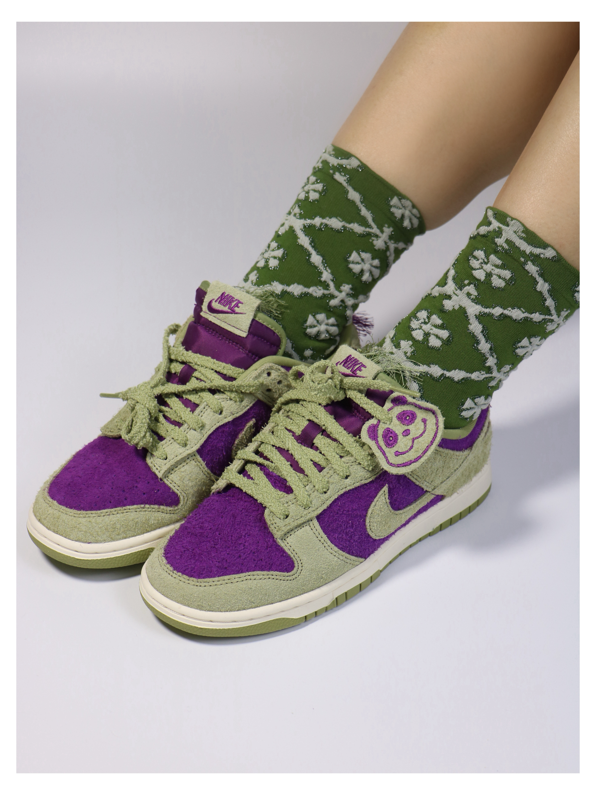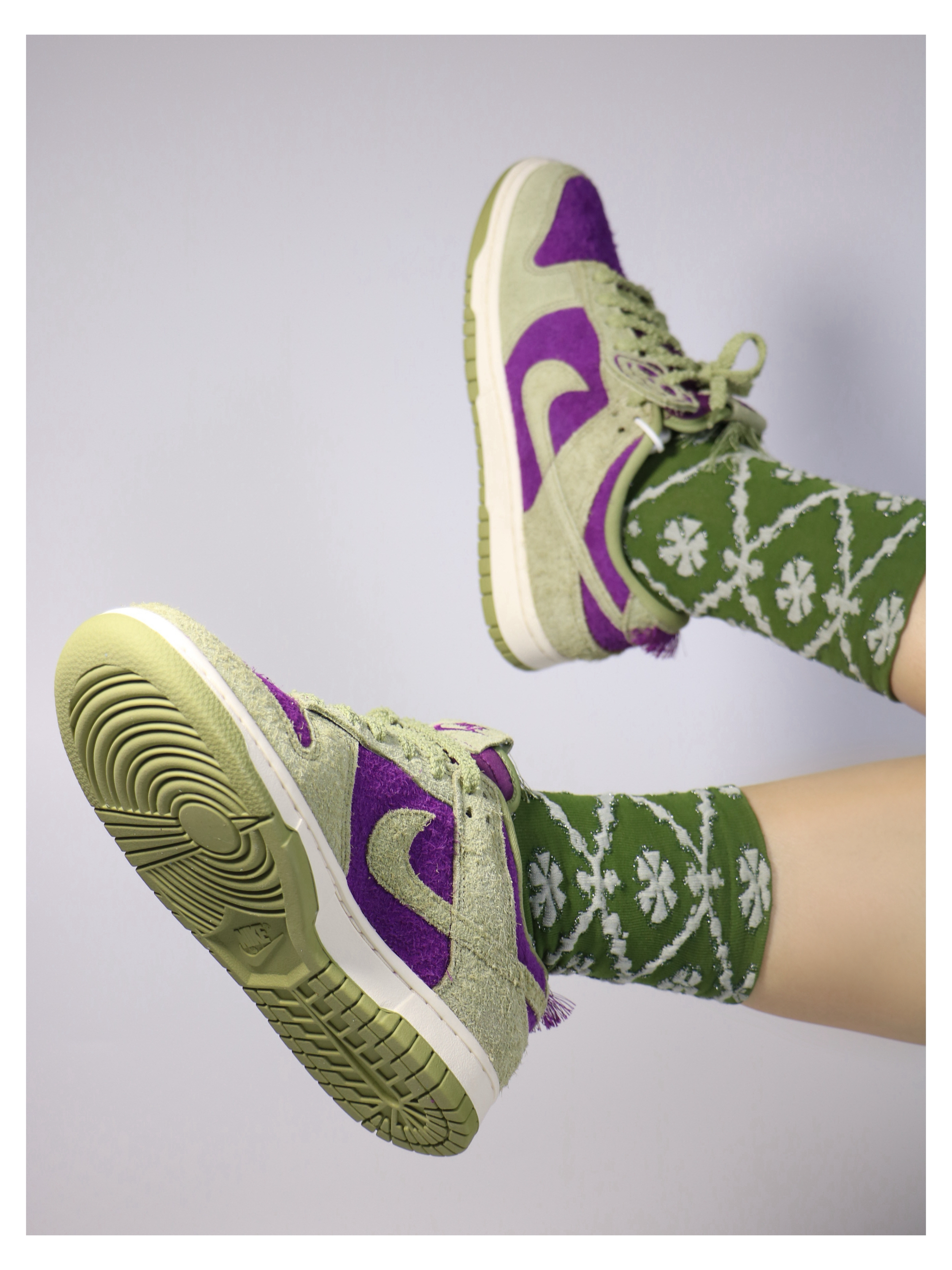 通勤百搭时髦感满满低帮休闲板鞋分享 经典复古 dunk low 紫 绿 色系翻毛皮包裹 橡胶底面 耐磨防滑 尺码正常 出街百搭舒适