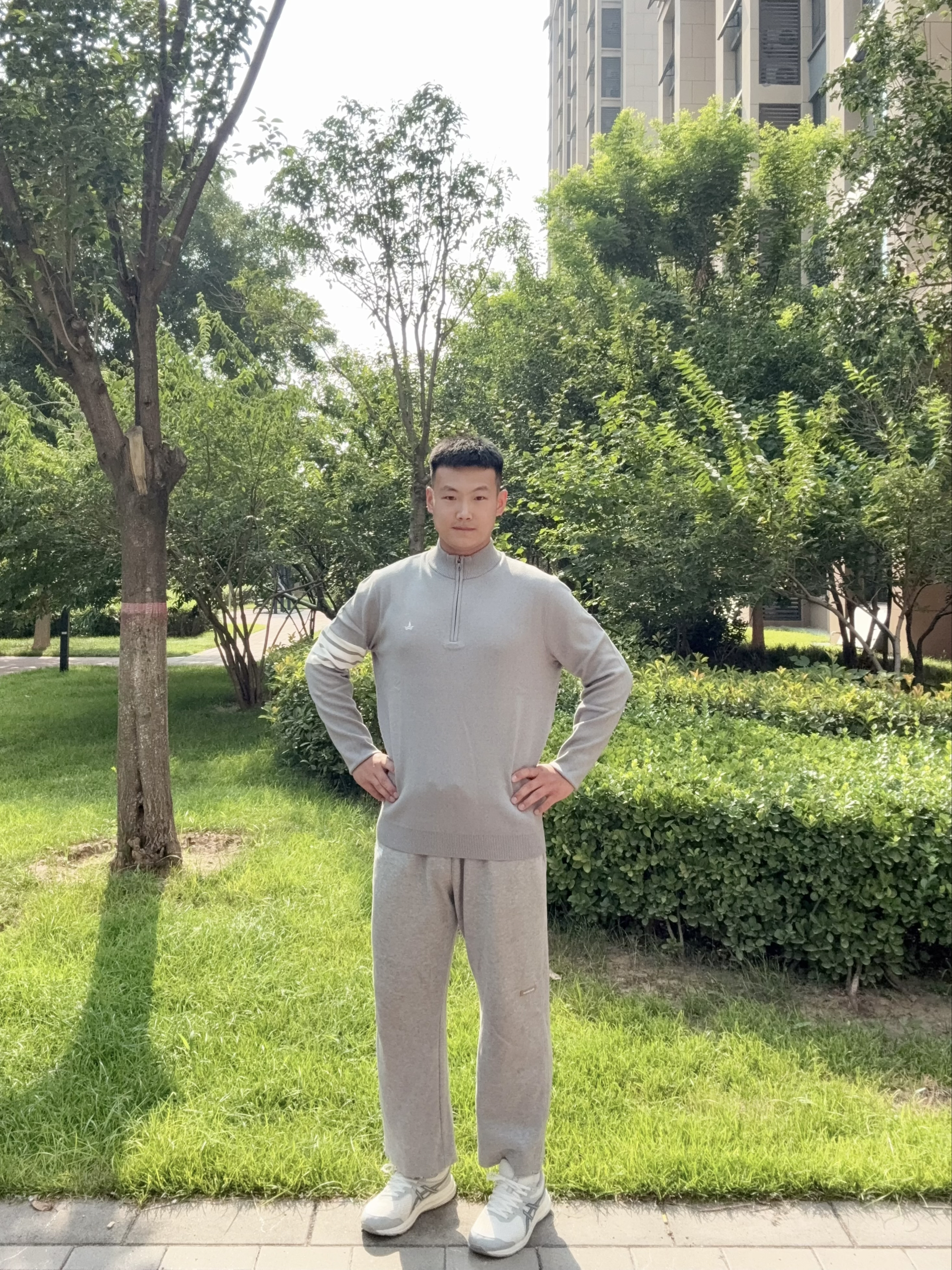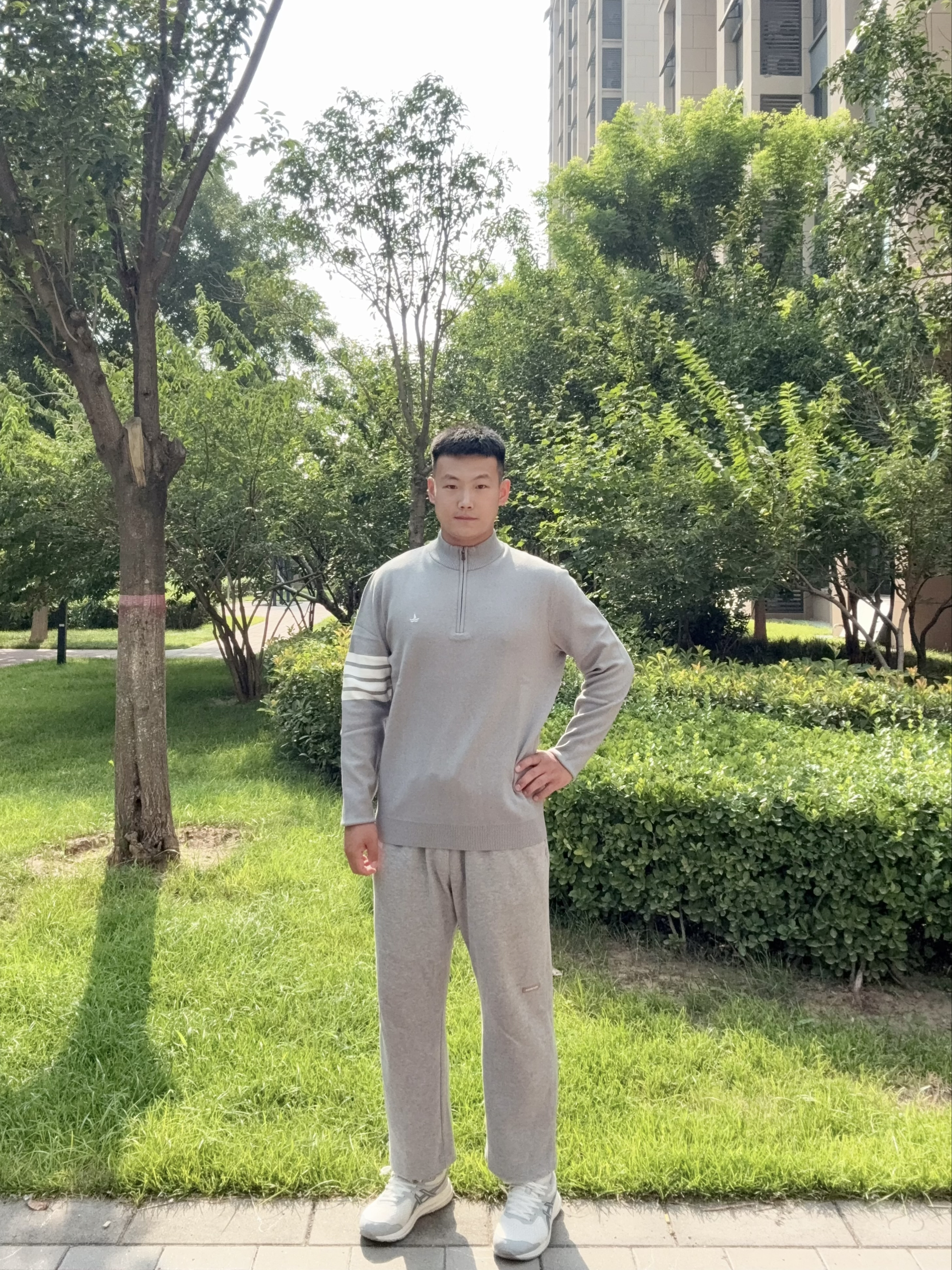 浅灰色调超高级,半拉链设计随性又带点小酷,搭配同色系休闲裤 ,一套韩里韩气,松弛感拉满~ 面料软糯亲肤,日常出街、散步都很适配,轻松拿捏慵懒氛围,谁穿谁好看系列✔️