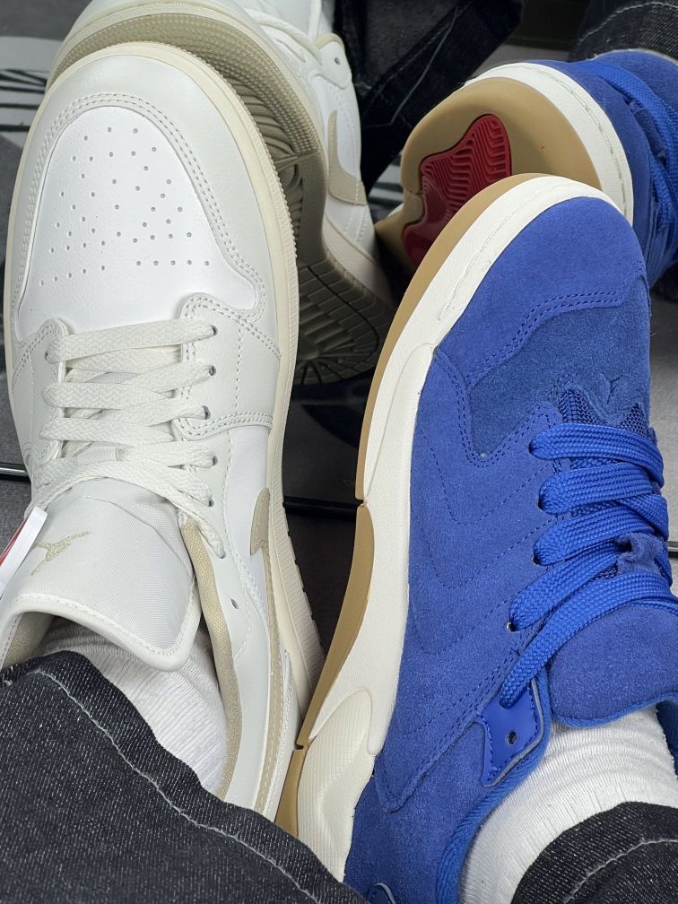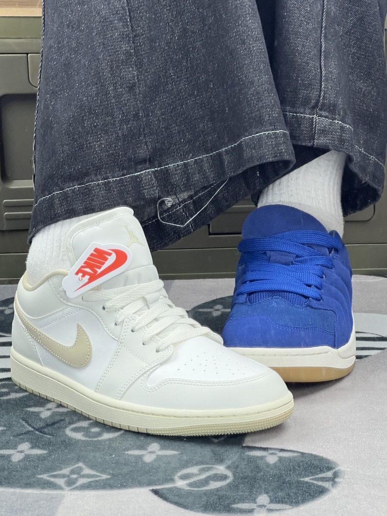 分享下我脚上这双Air Jordan 1 Low 奶油米和另一双蓝色Jordan板鞋的真实体验😁😁 先说白鞋,配色清爽好搭,米白勾子和鞋身很和谐,鞋舌标签增添小细节😁😁脚感嘛,算中规中矩,走路久了前掌会有点闷。缺点是太容易脏,稍微碰下就有痕迹,打理得勤。😁😁 再看蓝鞋,颜色很亮眼,麂皮材质有质感,上脚挺酷🥴🥴但麂皮也麻烦,沾灰后不太好清洁,而且鞋型偏瘦,脚宽的朋友穿久了会挤。 两双鞋都有自己...
