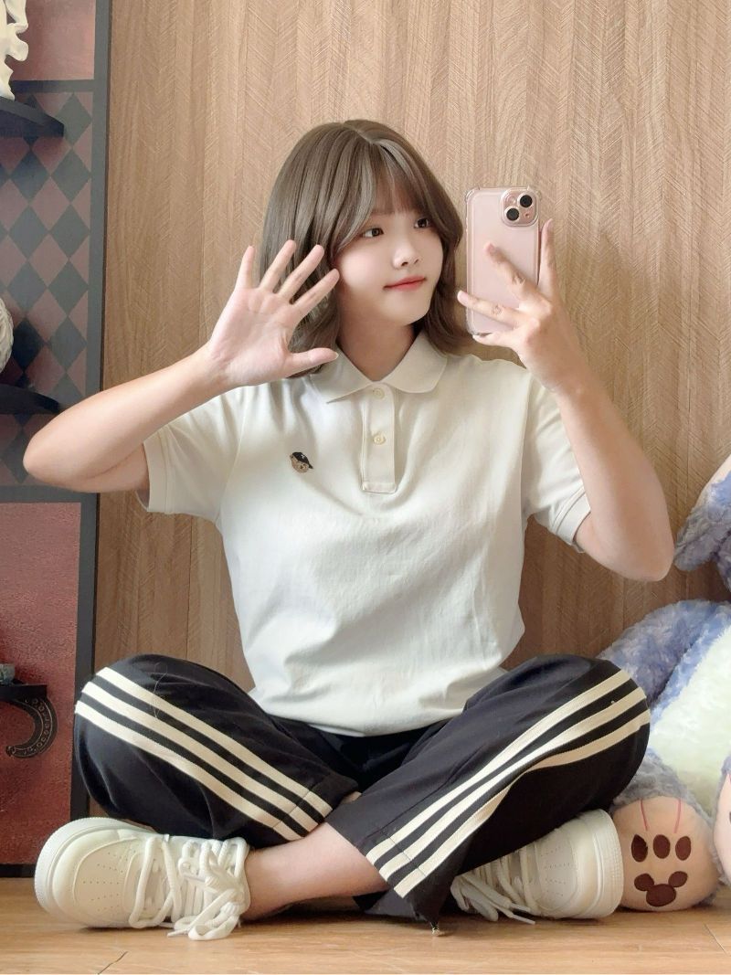 Polo衫上身就是乖乖女的感觉🥳 版型很正 穿起来感觉很青春耶✌🏻