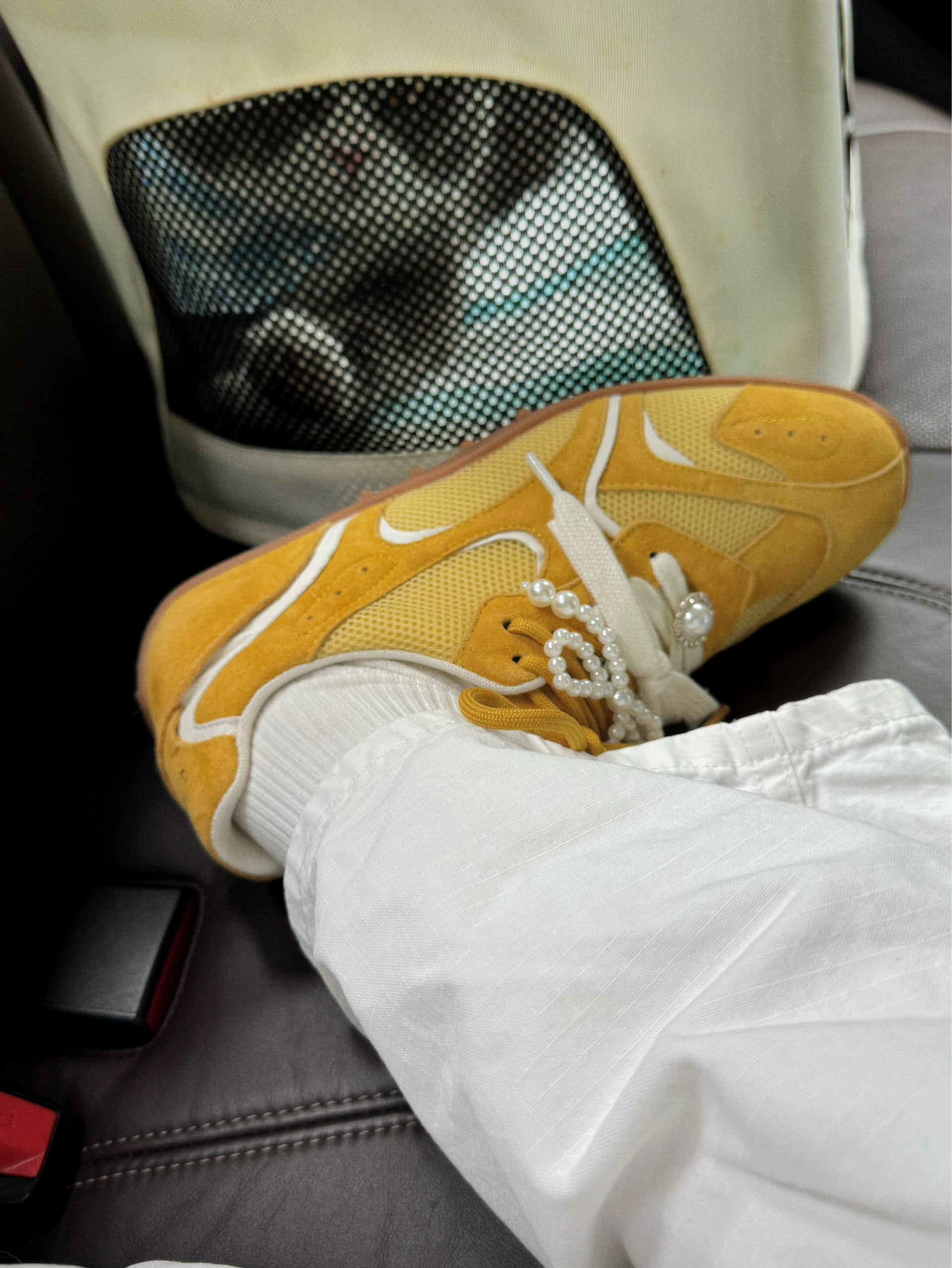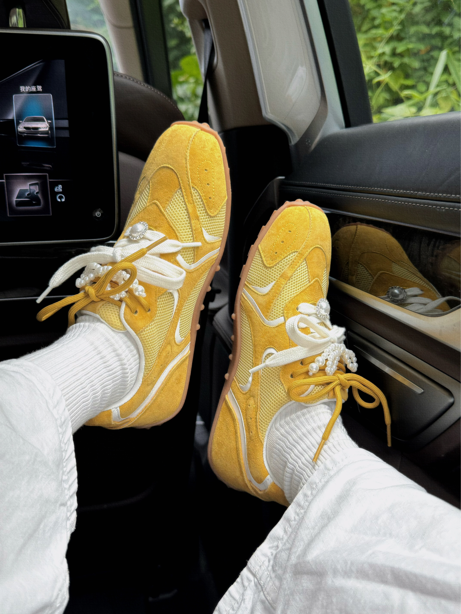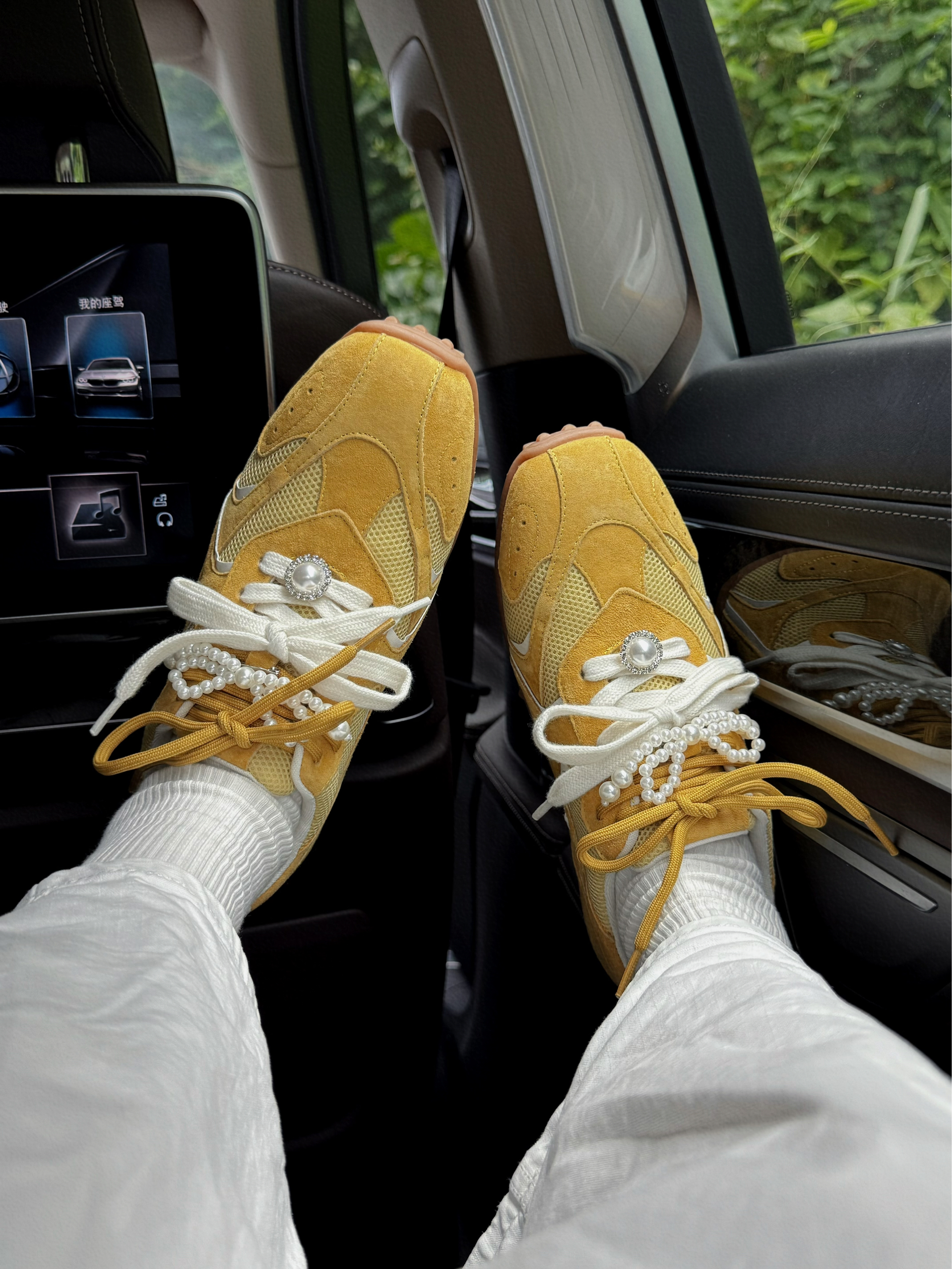 出门时忍不住拍拍我的新鞋 千百度这款德训真的越穿越爱 之前入手银色和白色才没多久 这双奶油黄配色既复古又温柔 搭配白裤子清爽显高/鞋型还特别修饰脚型 重点是踩着超级软/逛街暴走通勤都不累 自带隐形增高/小个子姐妹可以闭眼冲…
