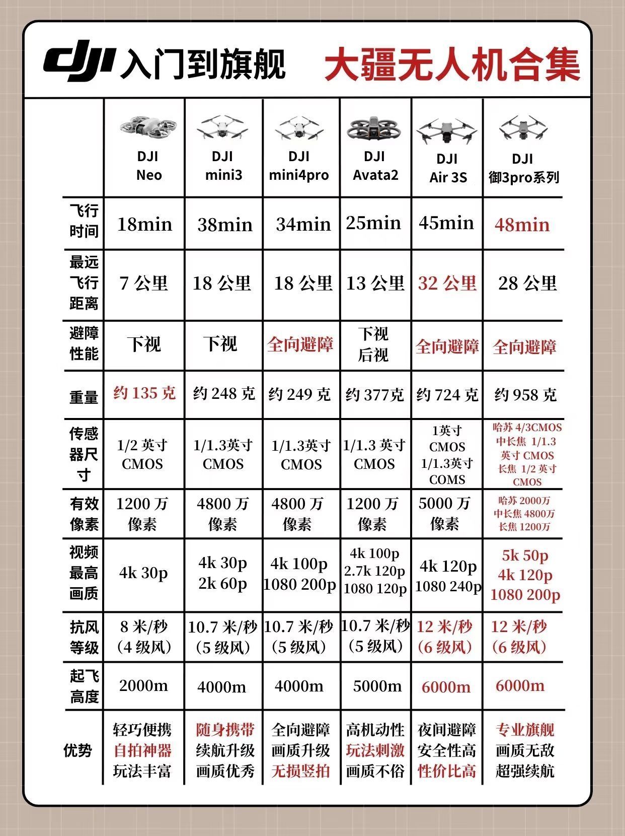 🤔作为曾经的无人机小白,面对各种参数简直头大!今天就来帮大家捋捋,轻松选到心仪的无人机🥳 📌【搞清预算很关键】 大疆无人机分四个等级哦:娱乐级(Neo)、入门级(mini 系列)、轻旗舰级(air 系列)、旗舰级(御系列)。咱得先明确预算,才能精准下手呀!💰 📌【明确用途是重点】#你有无人机么 👉如果你只是想记录旅行🧳和日常,大疆 mini 系列超合适!4k 画质杠杠的,三十几分钟续航,让你拍个...